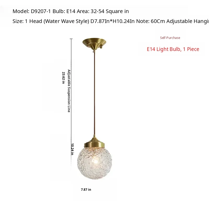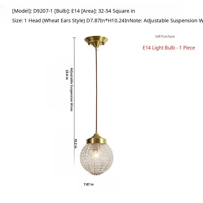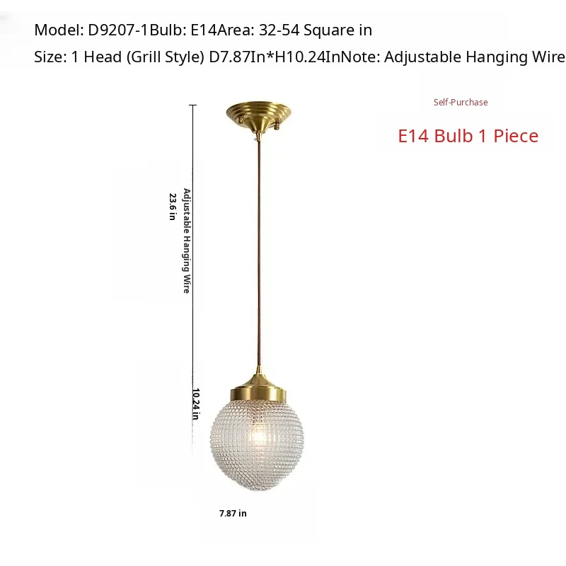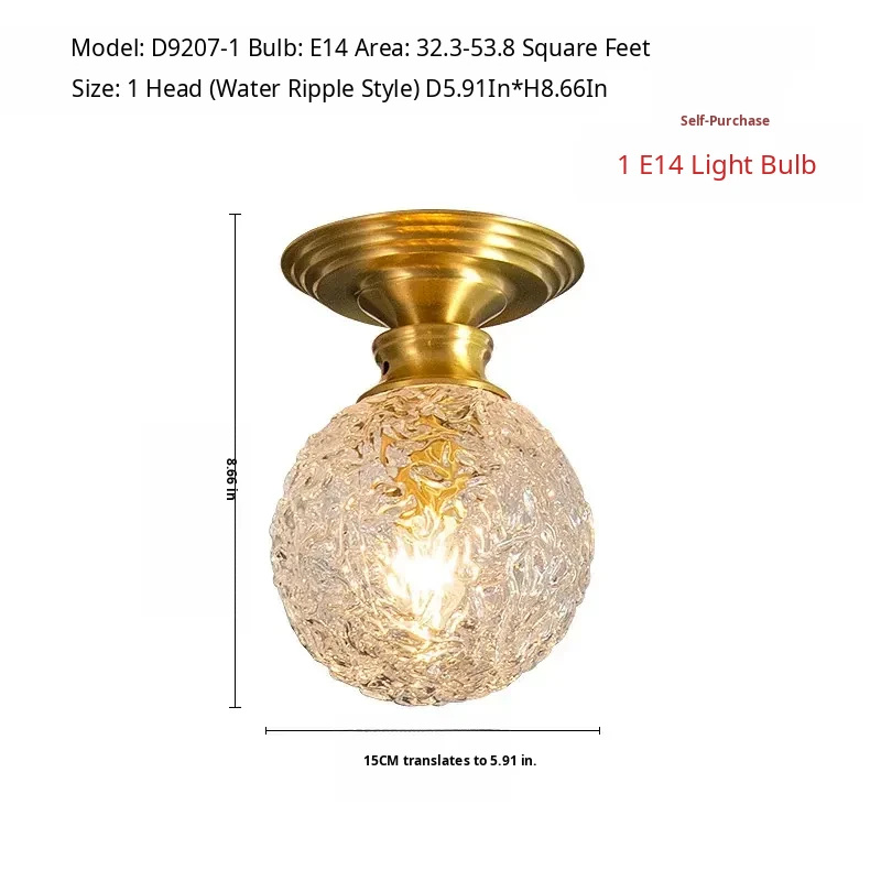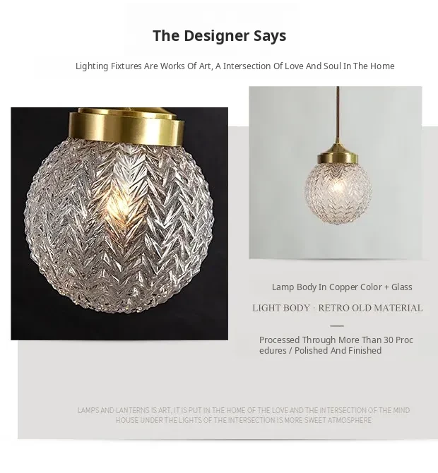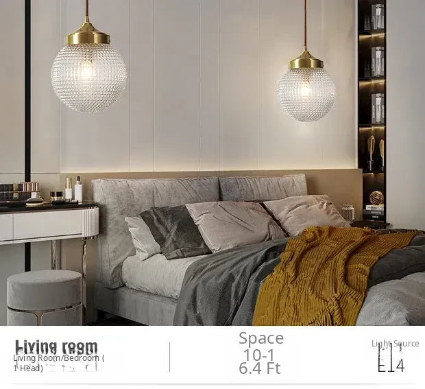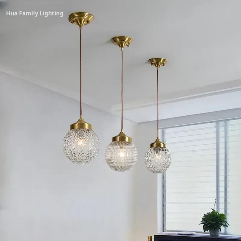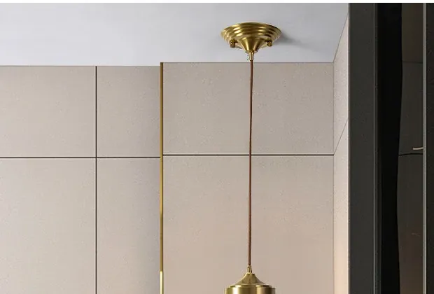 All-Copper Bedroom Pendant Light - American Light Luxury Modern Minimalist Creative Small Hanging Lamp for Hallway, Corridor, and Bar Area