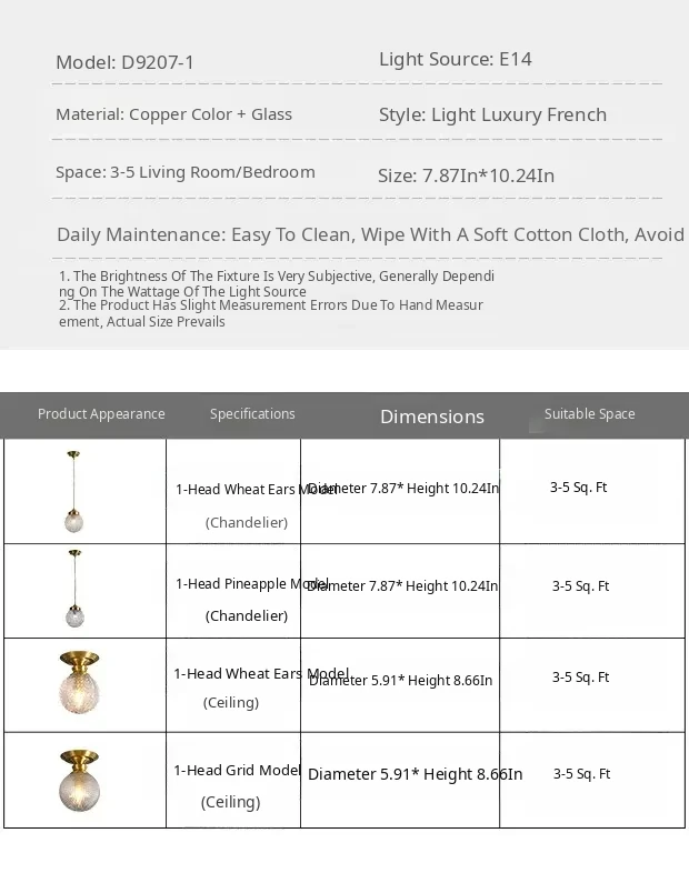 D15*H22Cm1 Head Wheat Ear Model(Ceiling Copper Style)