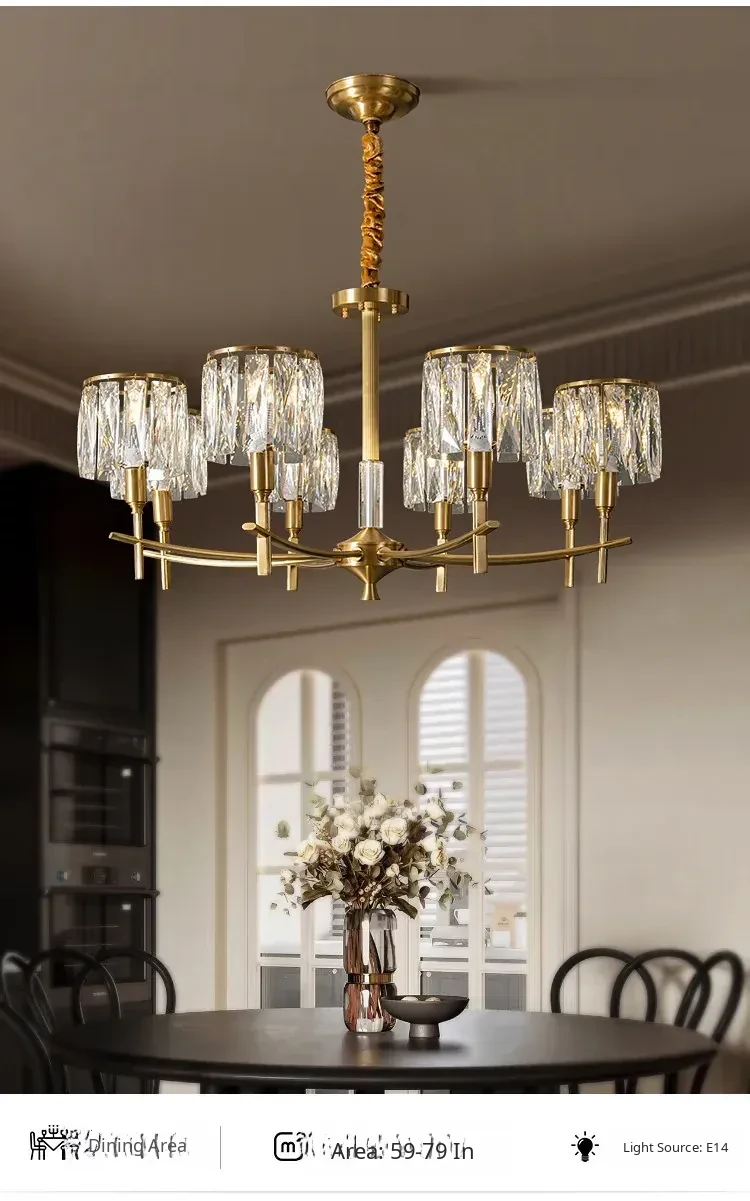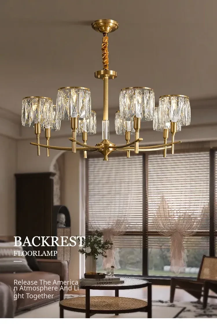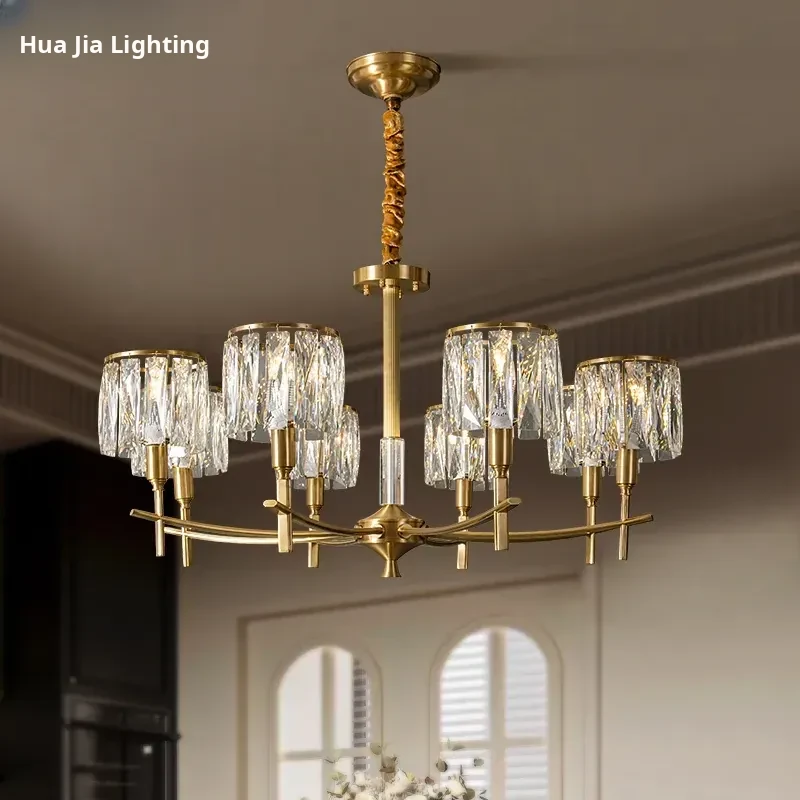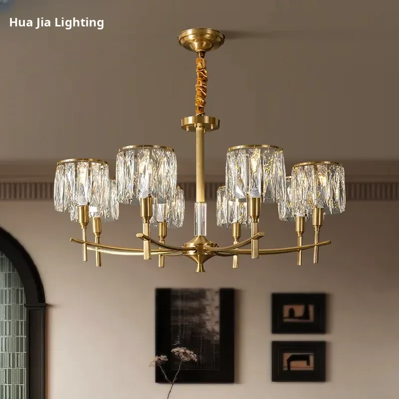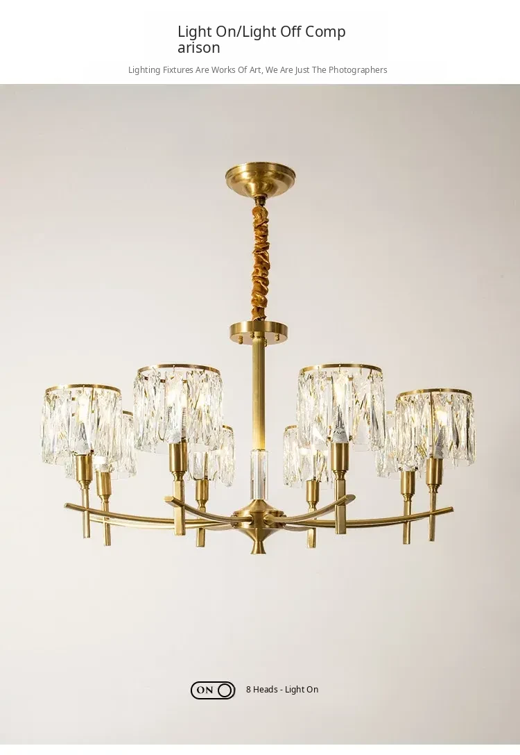 All-Copper Crystal Chandelier - Elegant American and French Style Lighting for Living Room, Villa, Bedroom, and Dining Room - New Collection 2024
