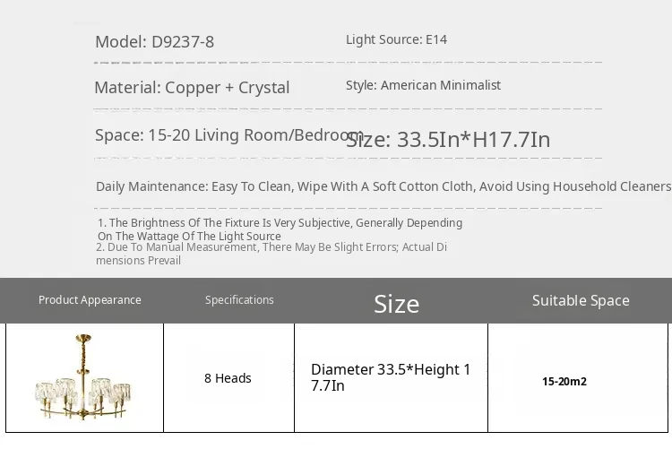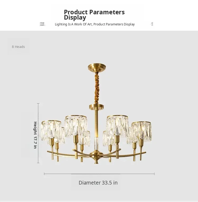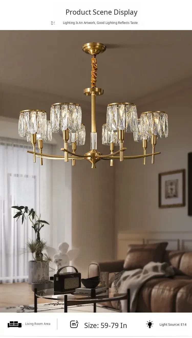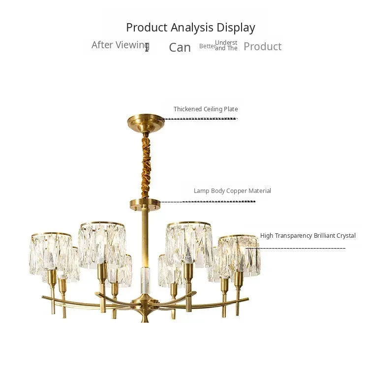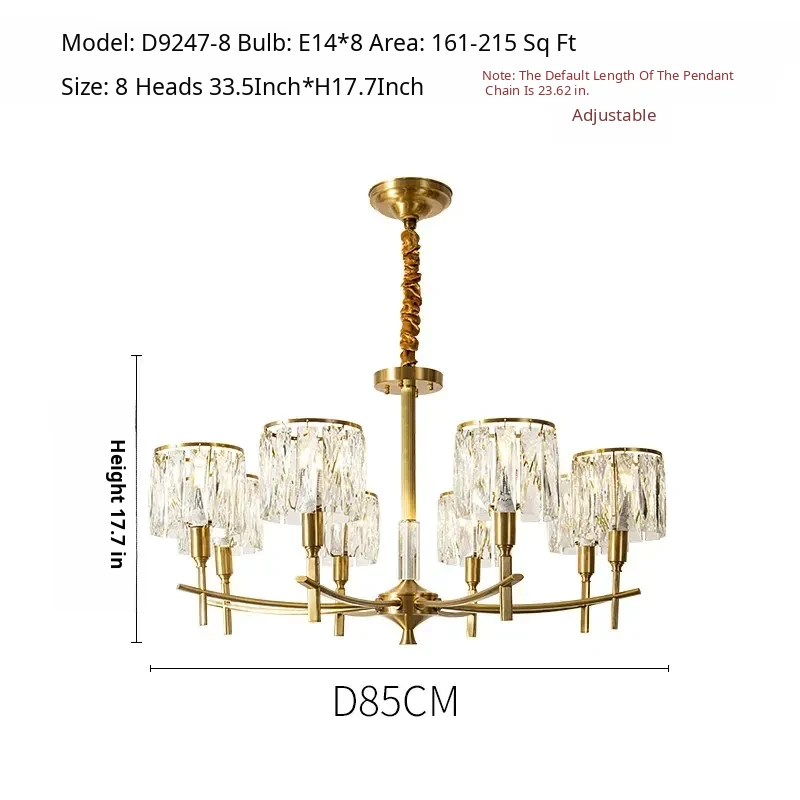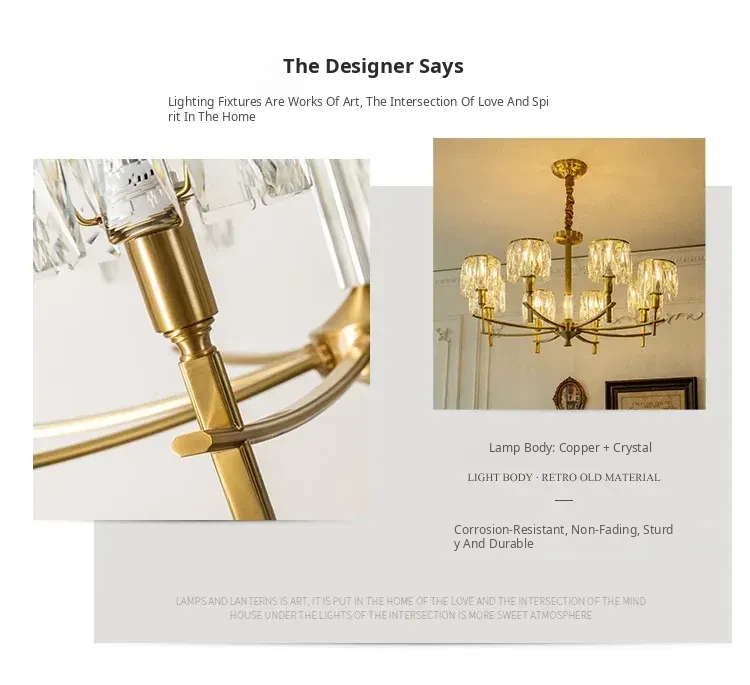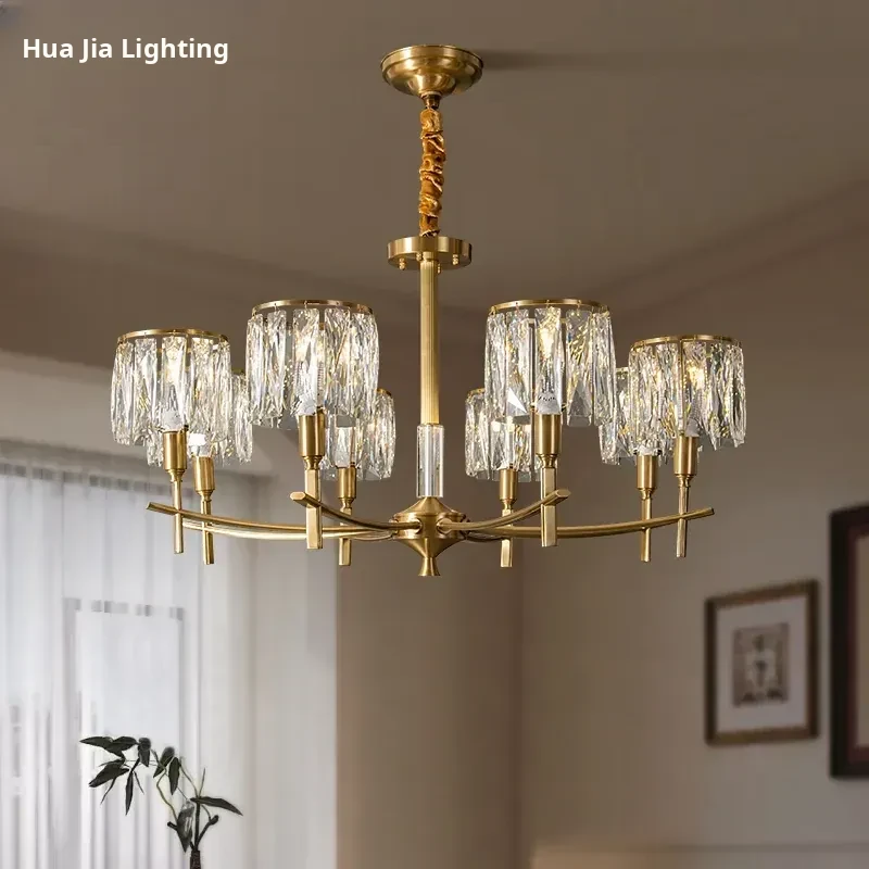 All-Copper Crystal Chandelier - Elegant American and French Style Lighting for Living Room, Villa, Bedroom, and Dining Room - New Collection 2024