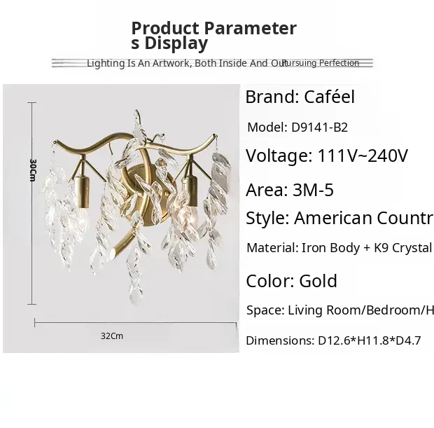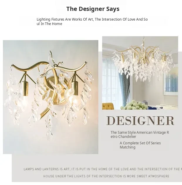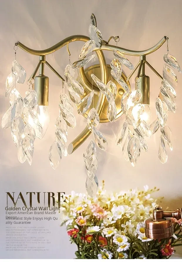 American Country Style Wall Sconce - Creative Double-Head Crystal Wall Lamp for Living Room, Bedroom, and Hallway - Unique Design for a Charming Home Décor