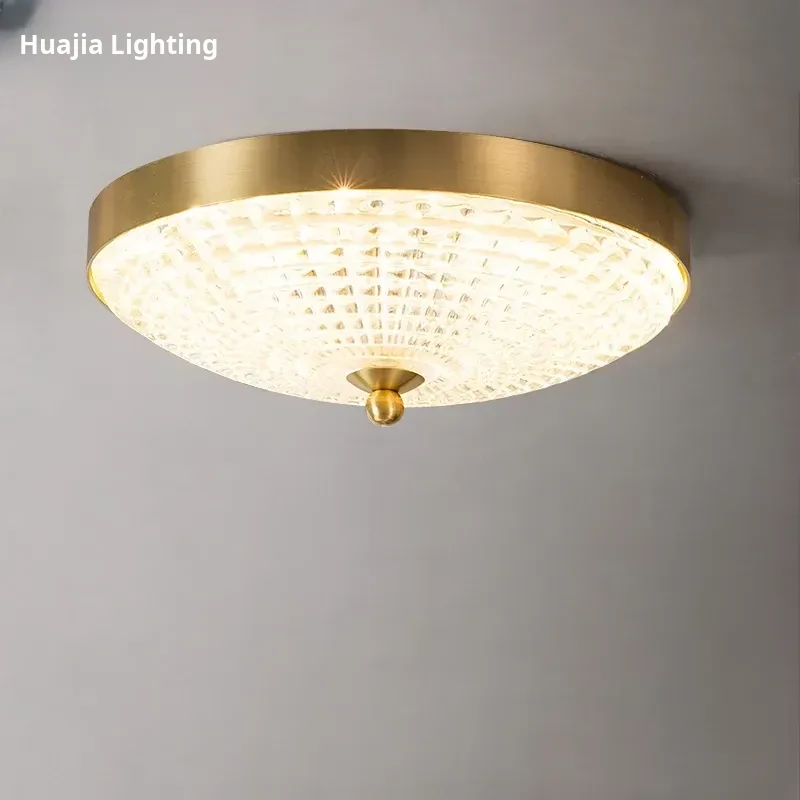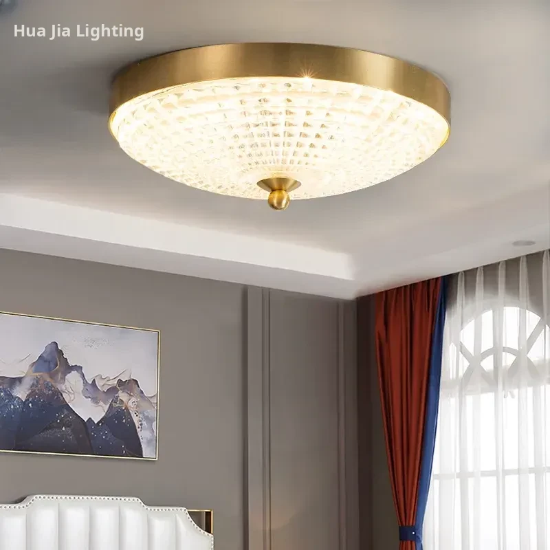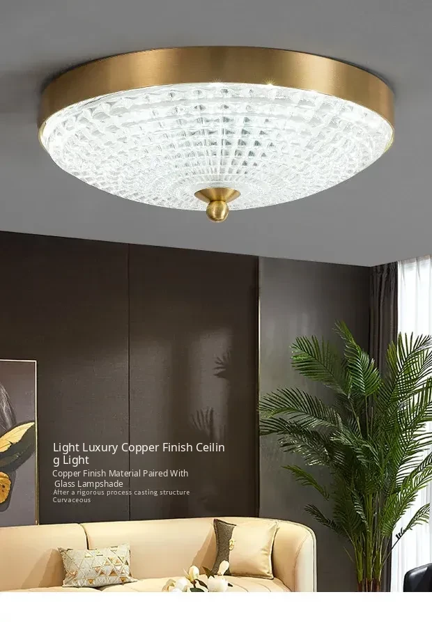 American Style All-Copper LED Ceiling Light - Minimalist Modern Luxury Fixture for Balcony, Hallway, Cloakroom, and Entryway
