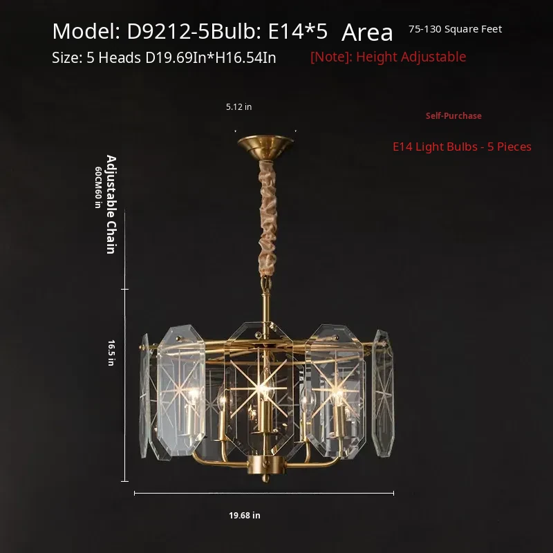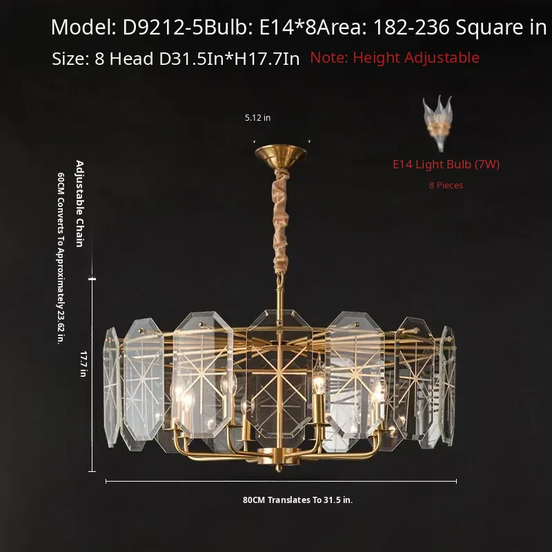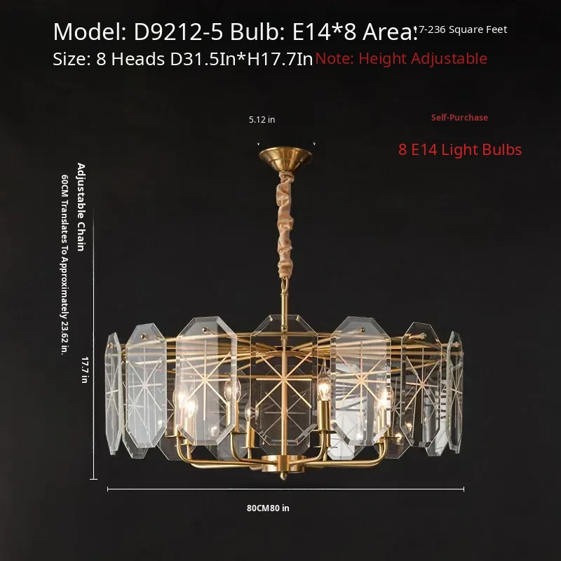 D80*H45Cm 8-Head Copper Finish Chandelier with 7W Warm Light Bulbs