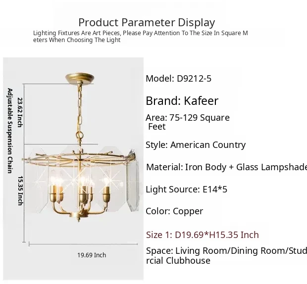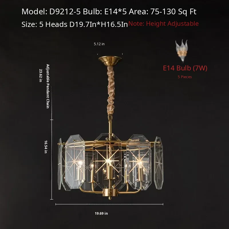 D50*H39Cm 5-Head Copper Finish with 7W Warm Light