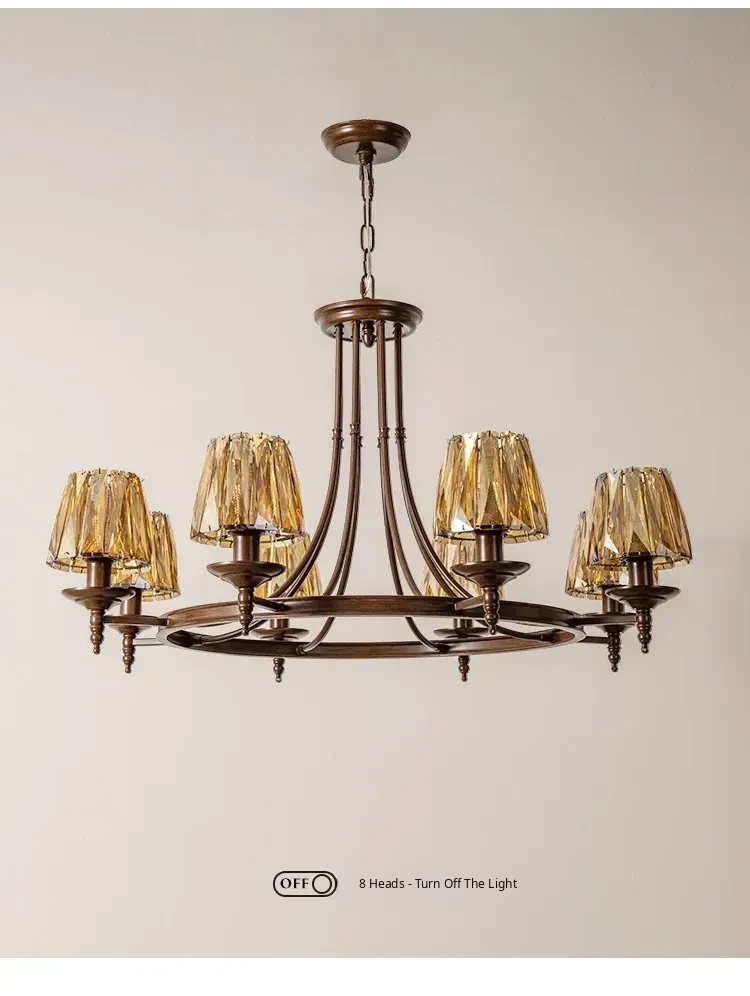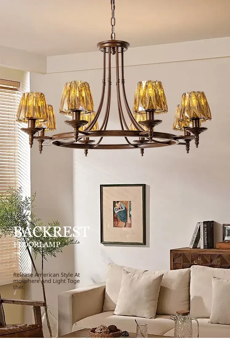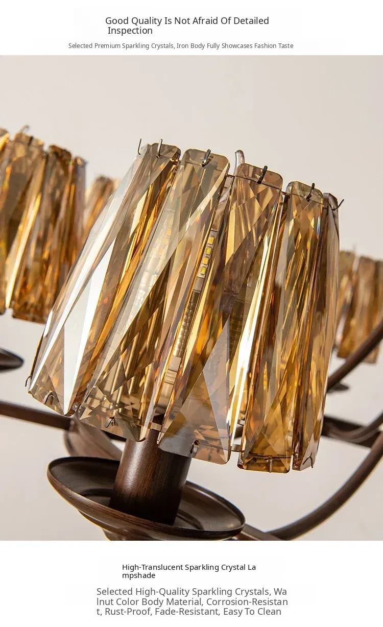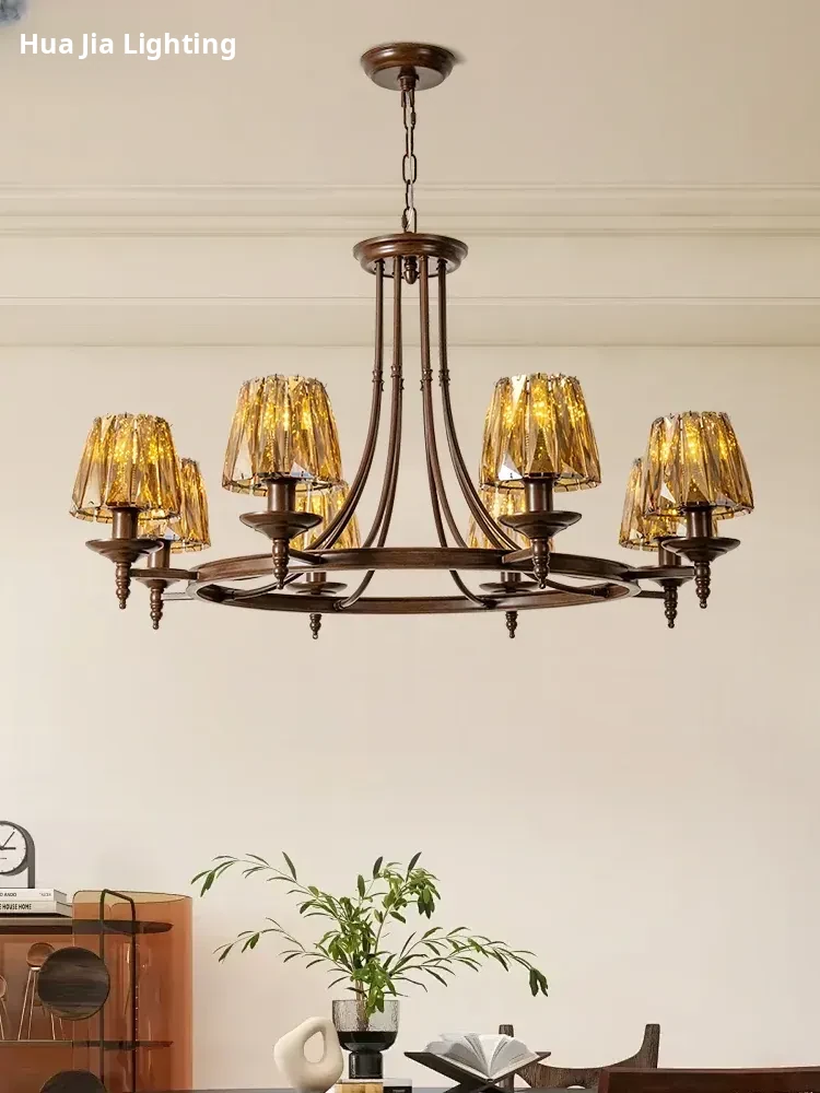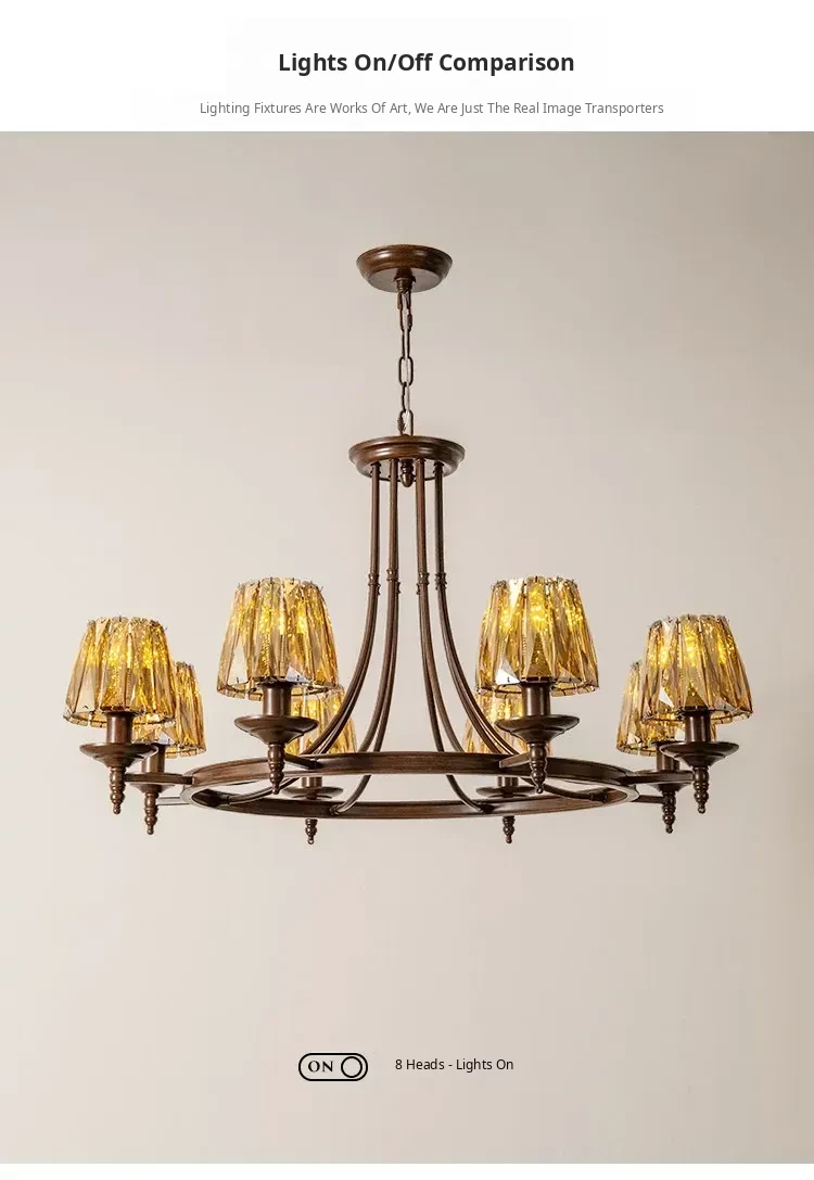 American Style Chandelier - Luxurious Vintage Walnut Crystal Pendant Light for Living Room, Dining Room, Villa, and Bedroom - Elevate Your Space with Creative Elegance