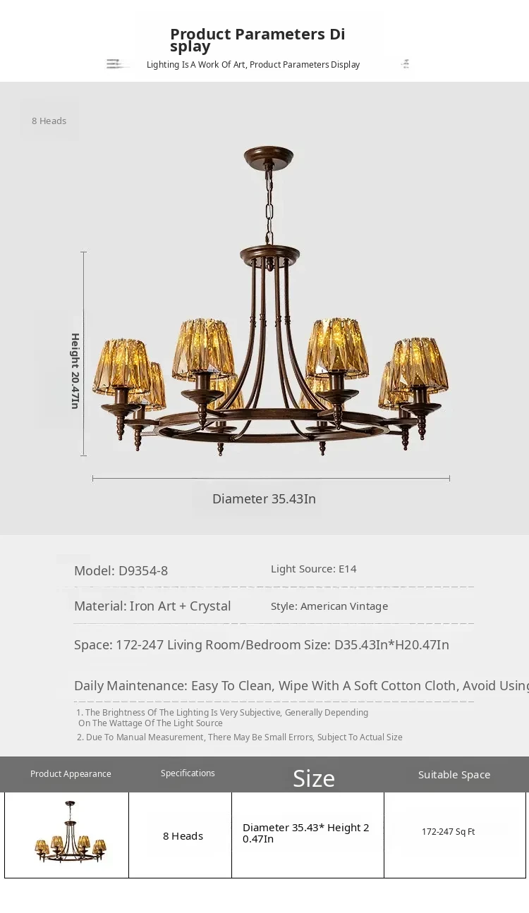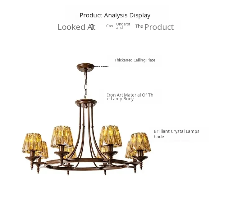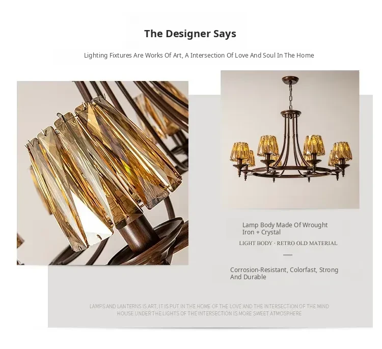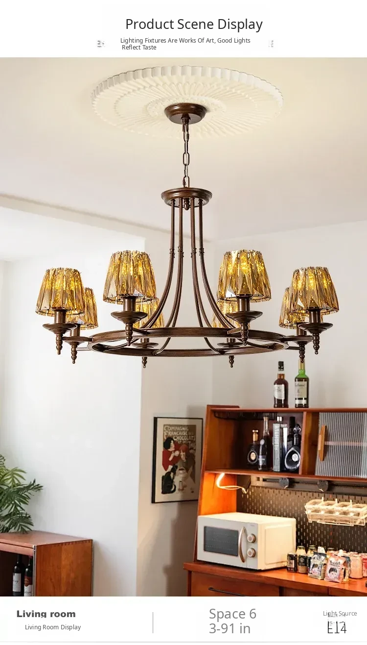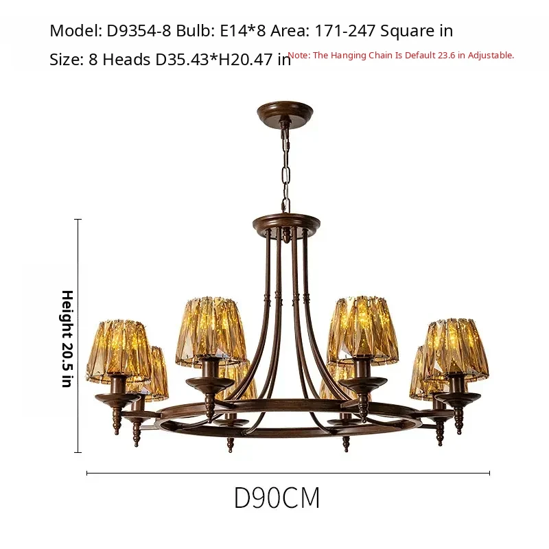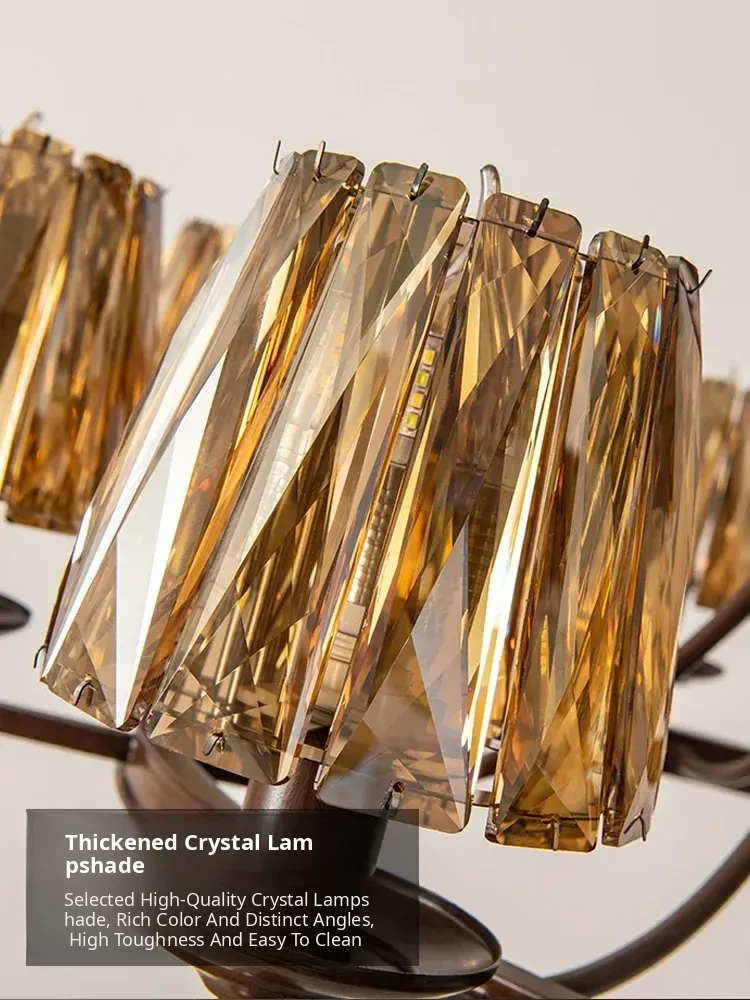 American Style Chandelier - Luxurious Vintage Walnut Crystal Pendant Light for Living Room, Dining Room, Villa, and Bedroom - Elevate Your Space with Creative Elegance