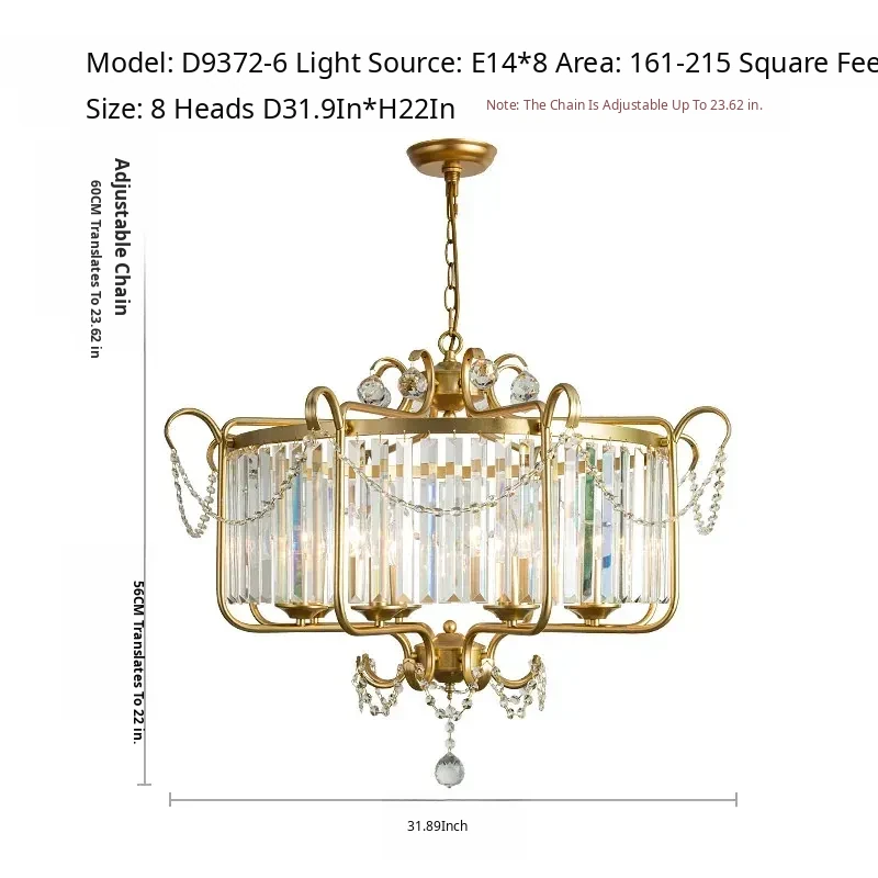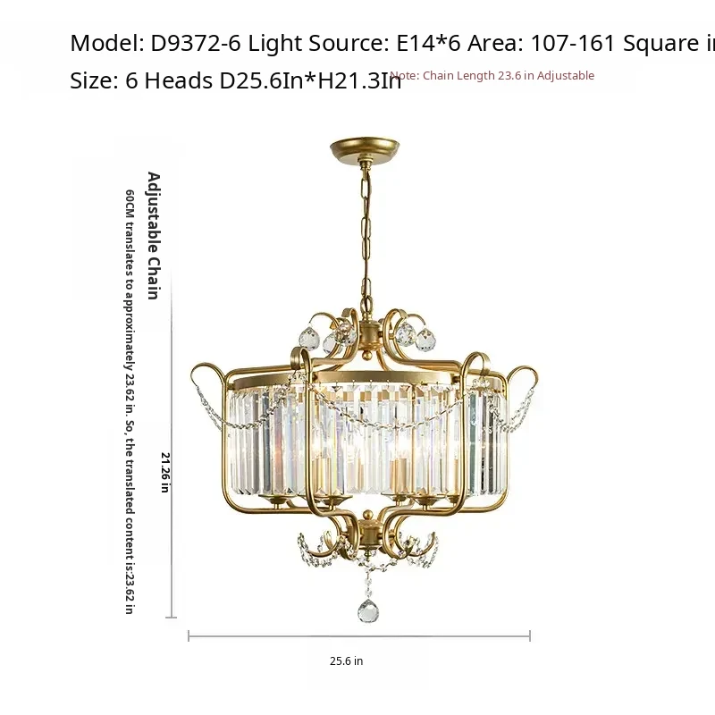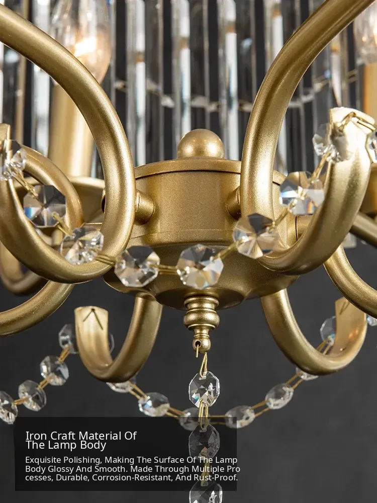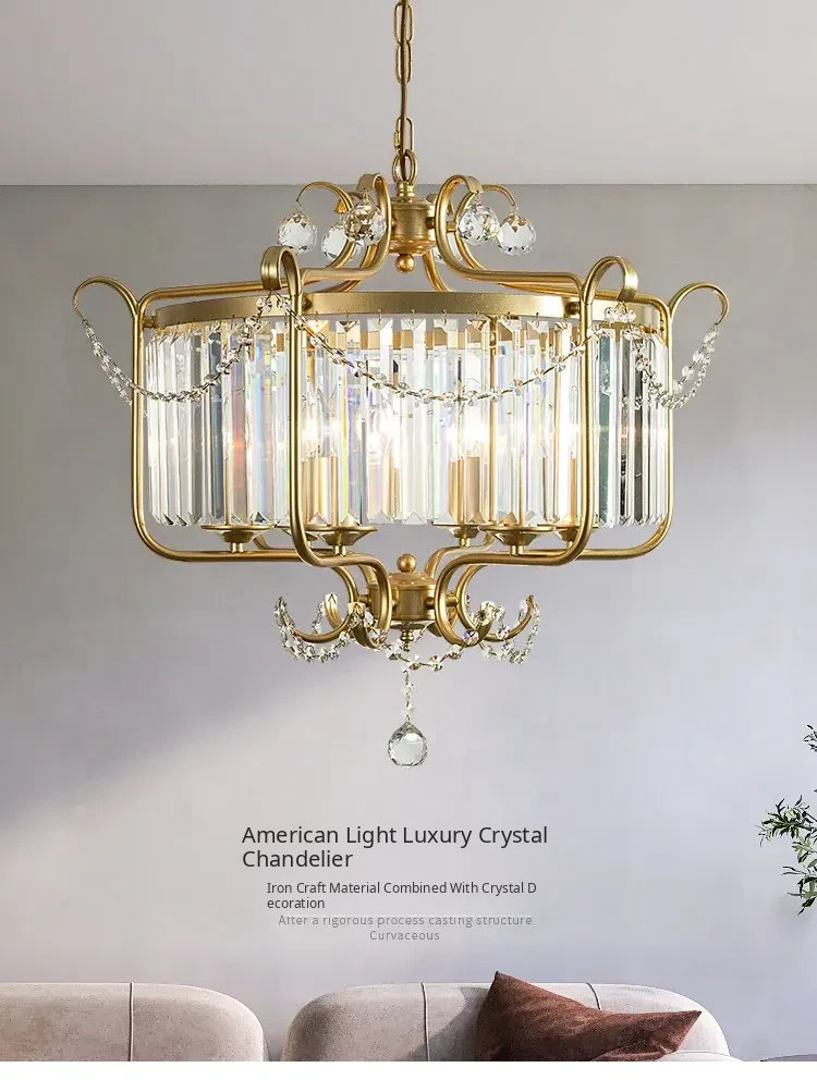 American Style Crystal Chandelier - Elegant Lighting for Living Room, Dining Room, and Study. Minimalist and High-End Decorative Fixture for Bedroom Ambiance. Perfect Blend of Luxury and Simplicity.