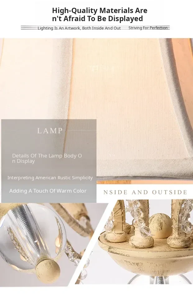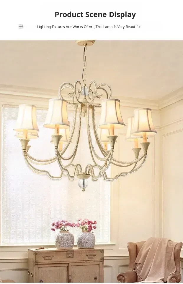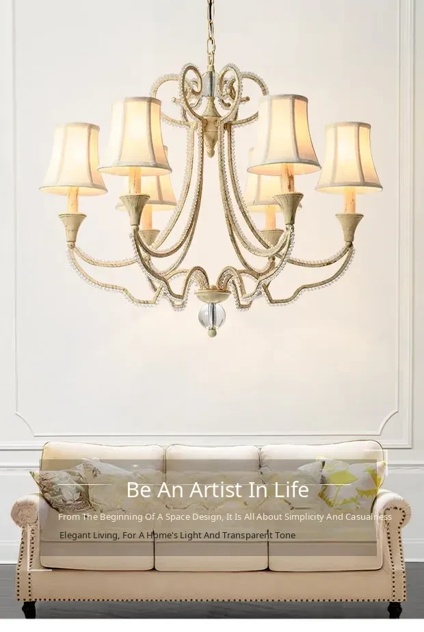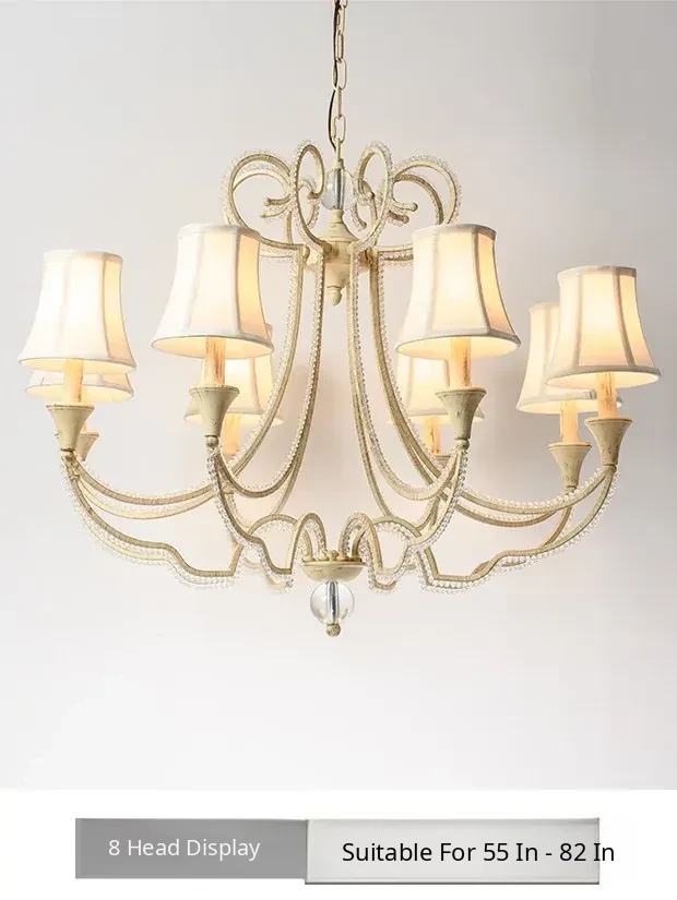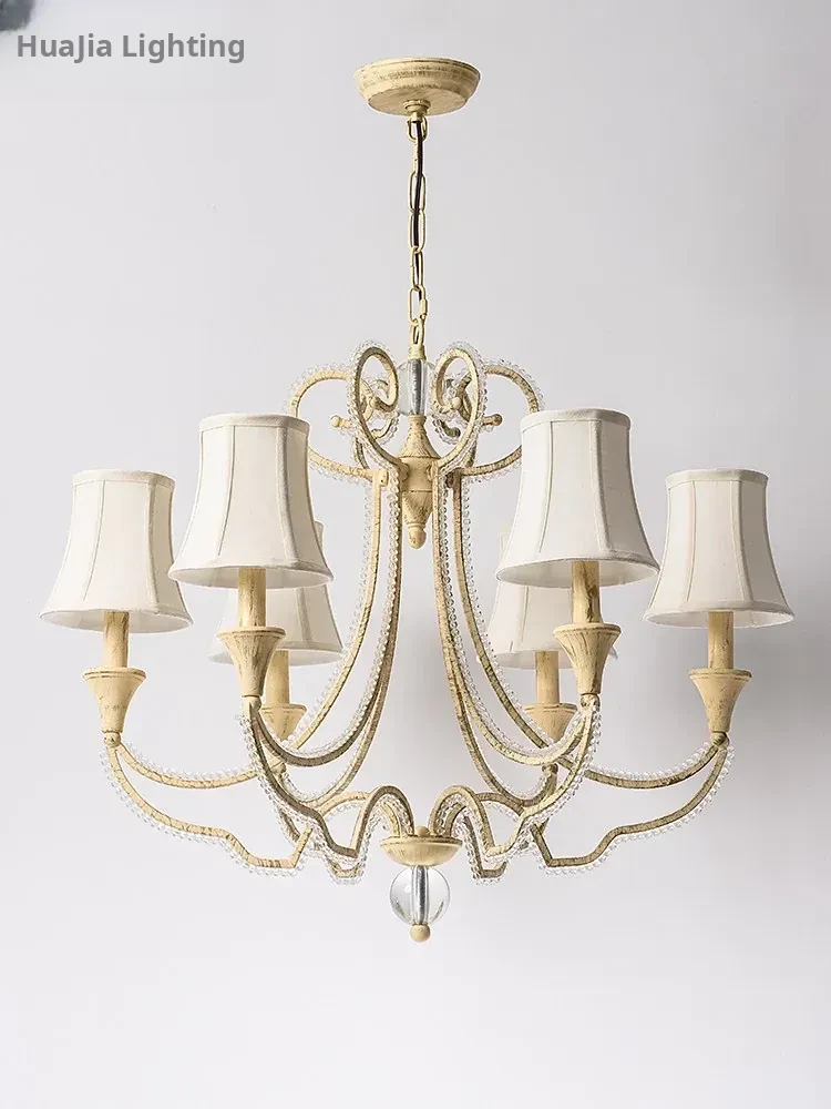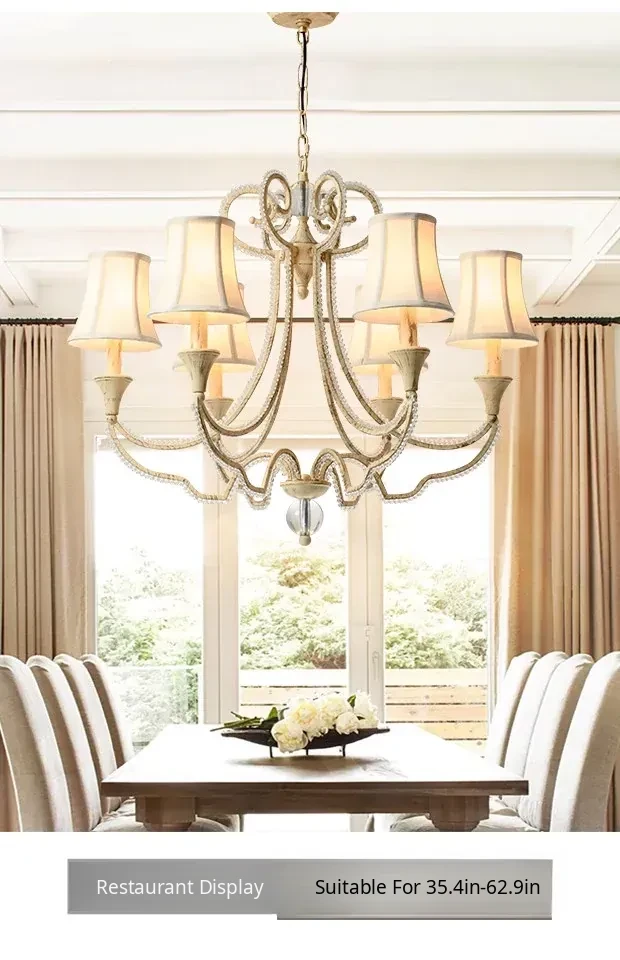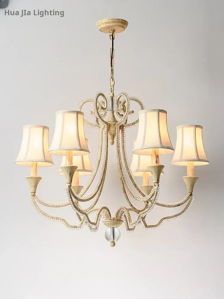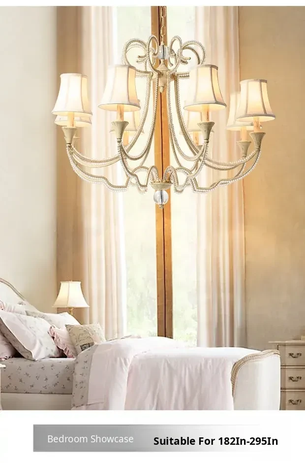 American Style Crystal Chandelier for Living and Dining Rooms - French Country Minimalist Warm Romantic Fabric Shade Lighting for Bedrooms and Main Rooms