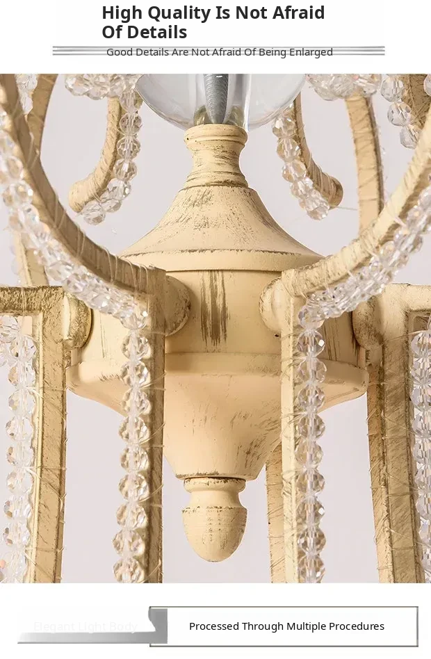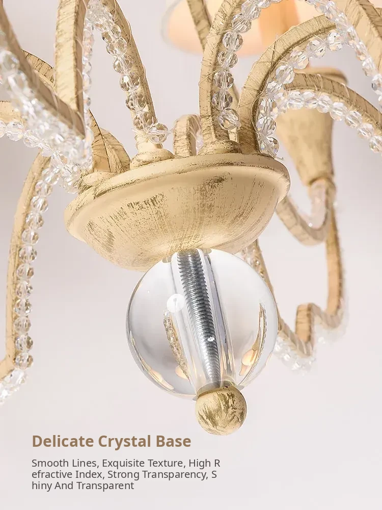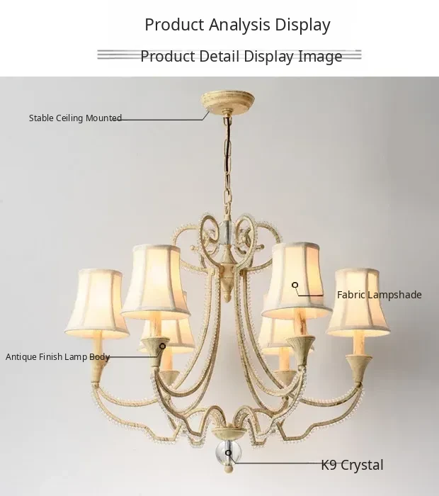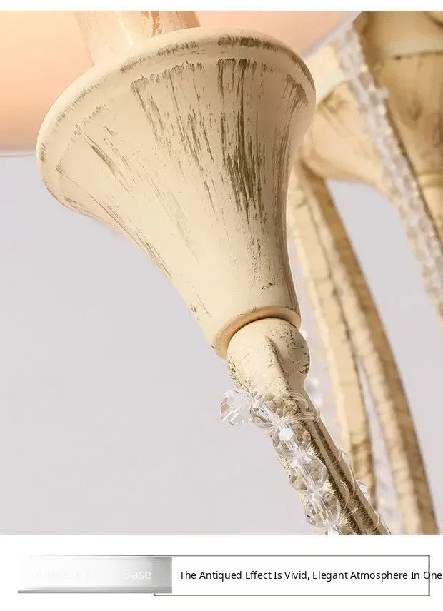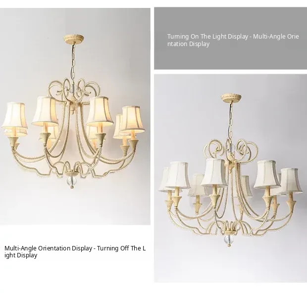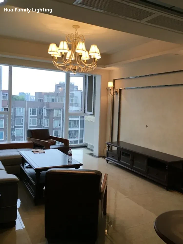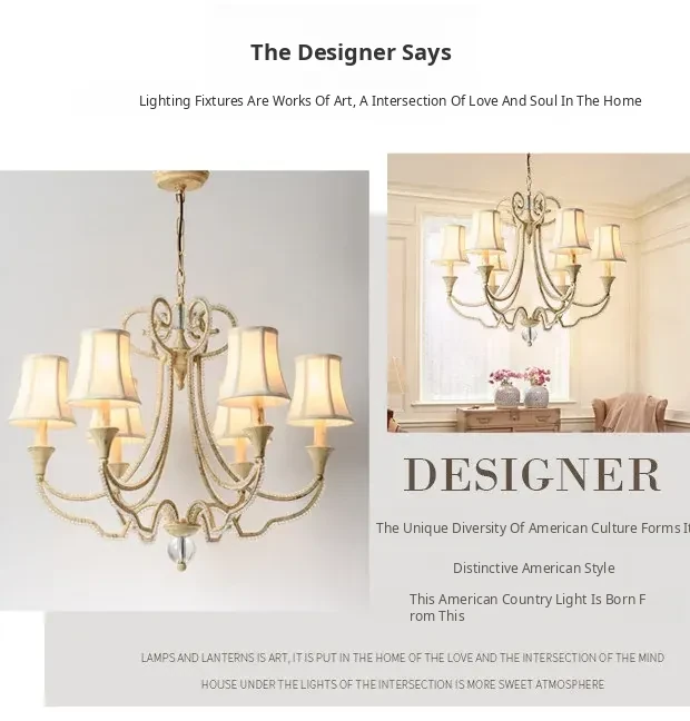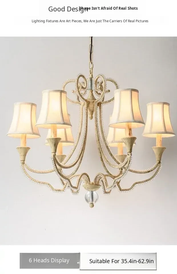 American Style Crystal Chandelier for Living and Dining Rooms - French Country Minimalist Warm Romantic Fabric Shade Lighting for Bedrooms and Main Rooms