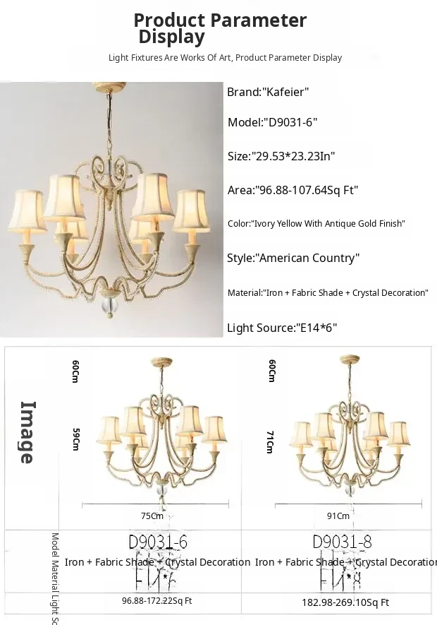 Diameter 75 * Height 23.23in 6-Head Lampshade Model