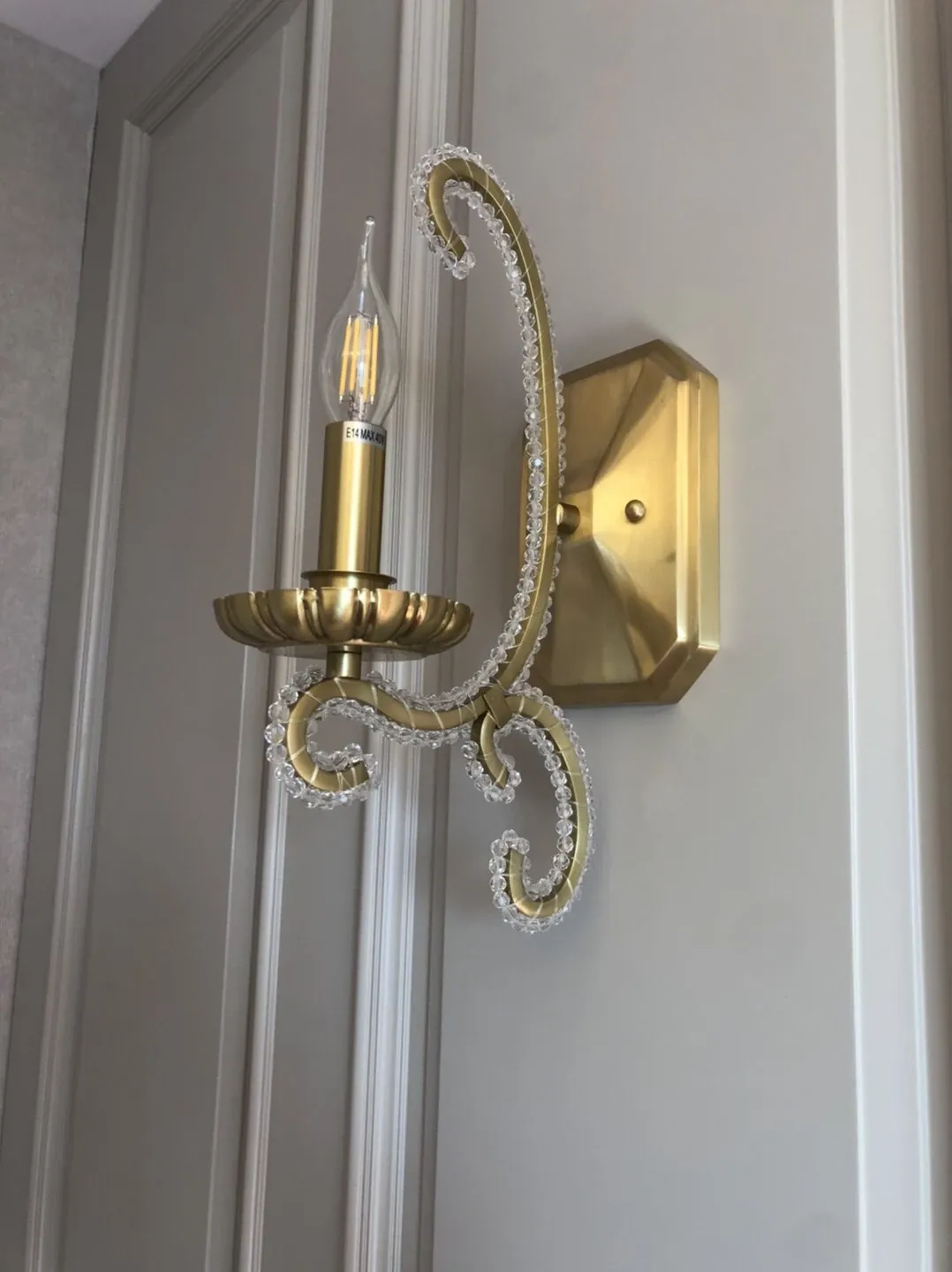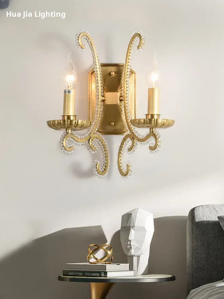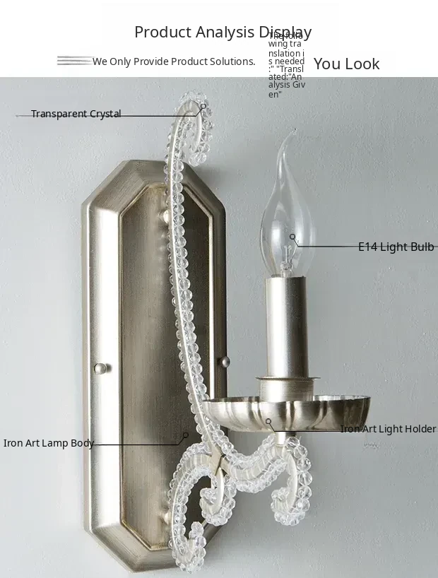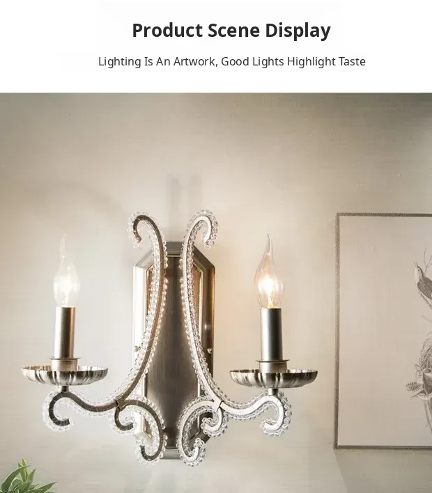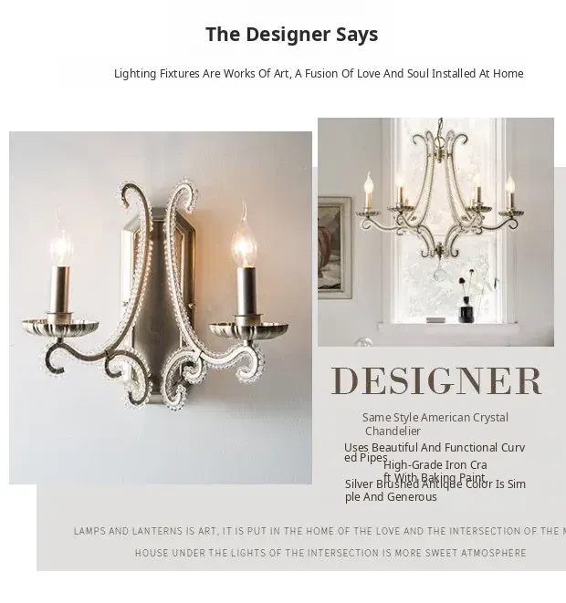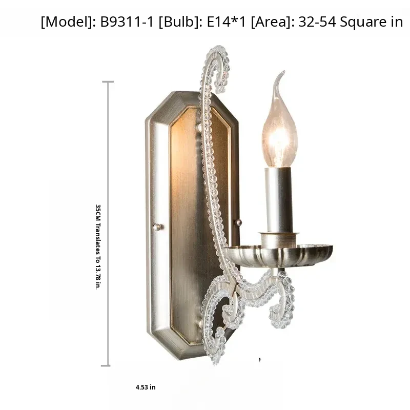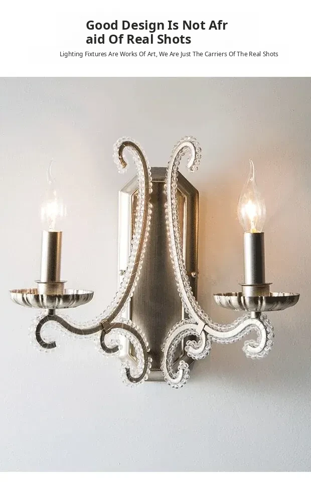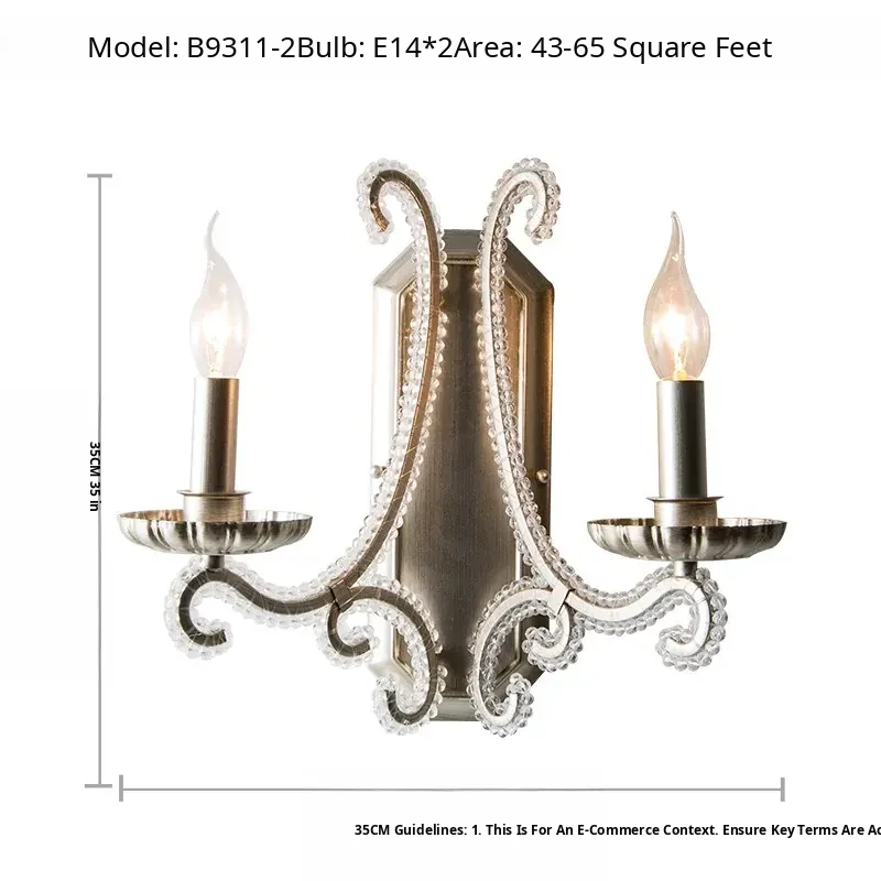 American Style Living Room Wall Lamp - Rustic Iron Bedside Light, Vintage Silver Hallway Creative French Crystal Wall Sconce