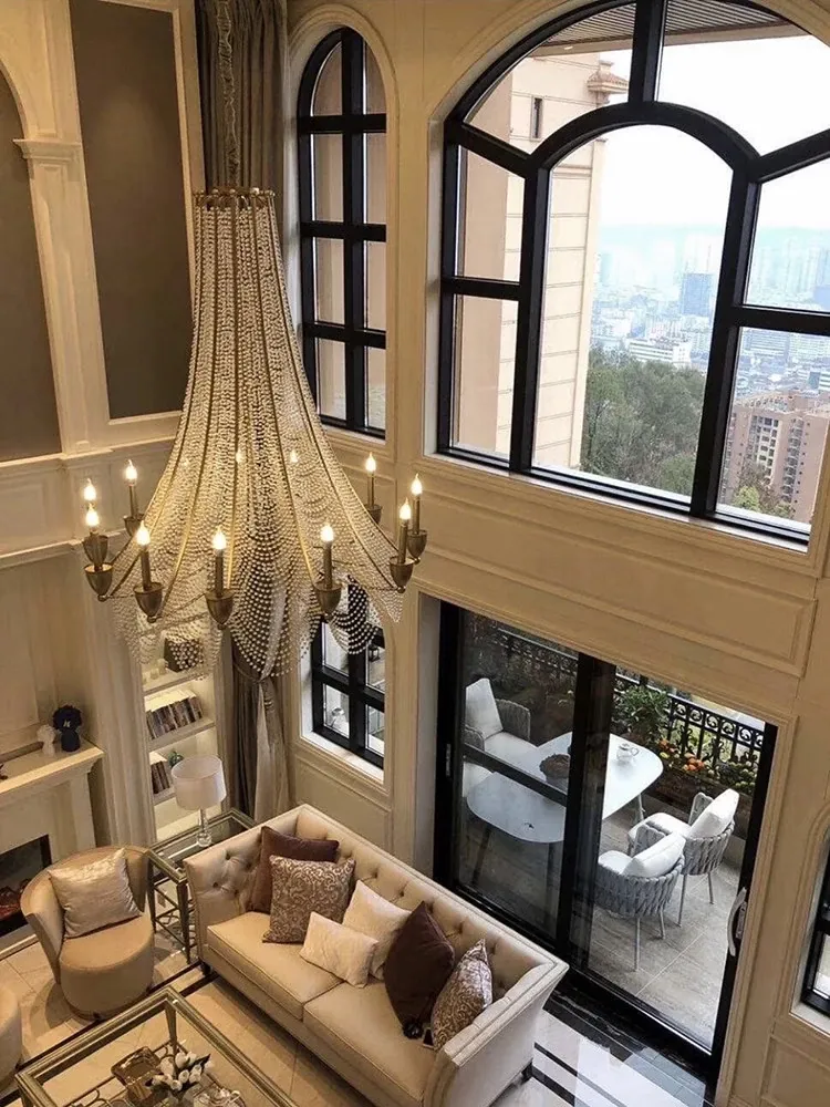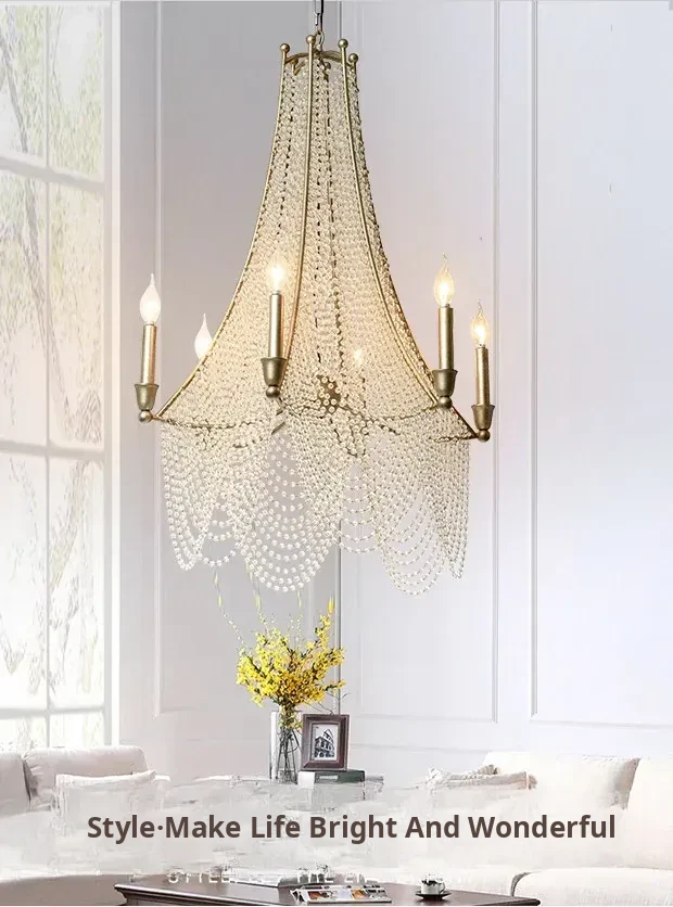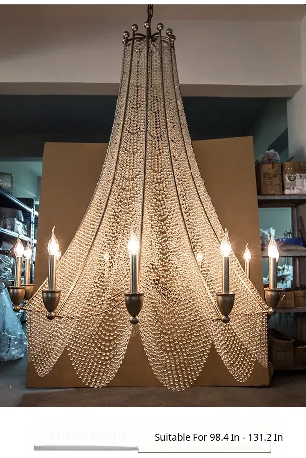 American-Style Long Chandelier for Duplex Villas and Loft Apartments - Stunning Crystal Lighting for Grand Living Rooms and Elegant Dining Areas, Perfect for French Staircases.
