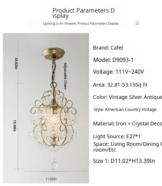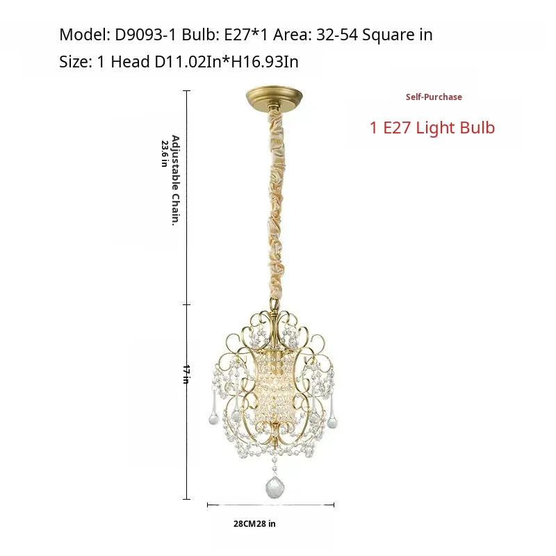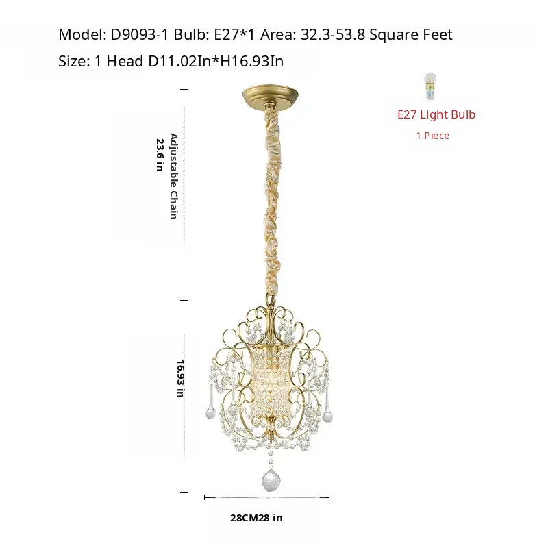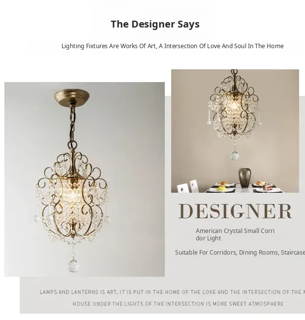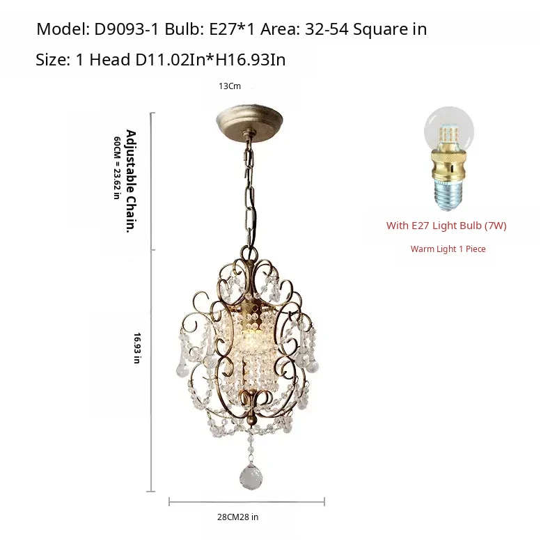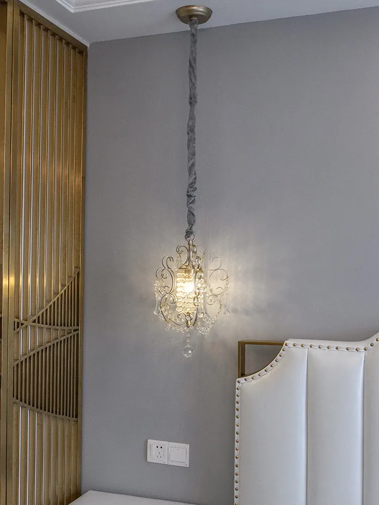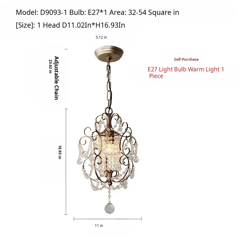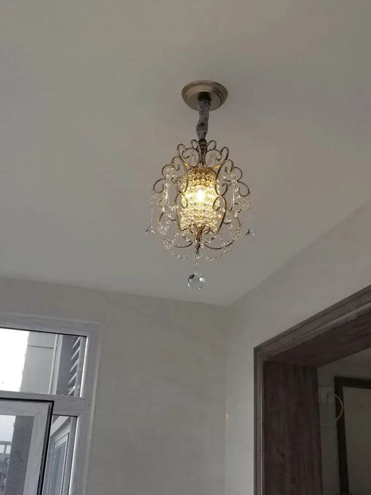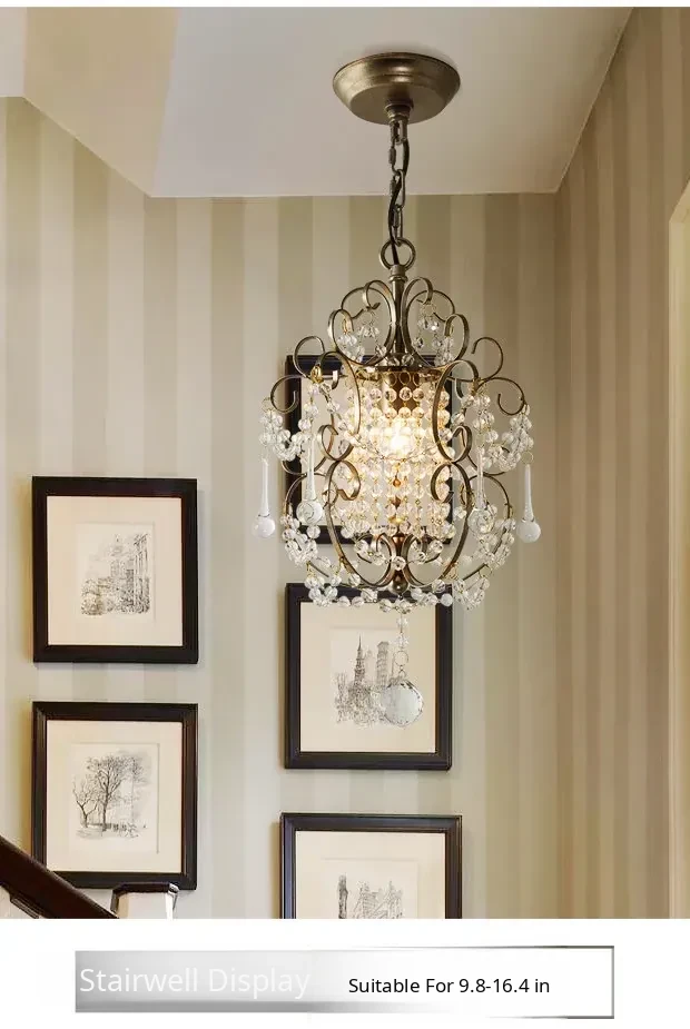 Charming American Country Style Chandelier - Elegant Single-Head French Crystal Light for Dining Room, Bedroom, Hallway, and Closet
