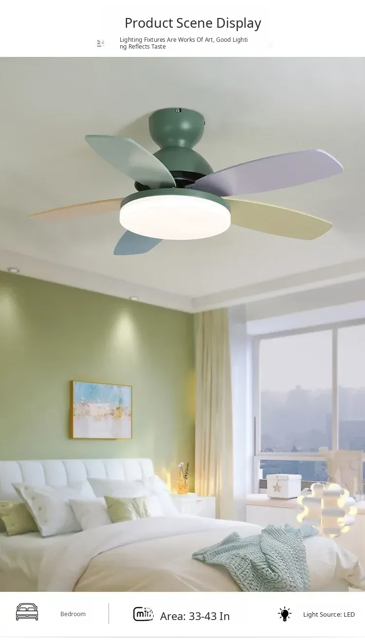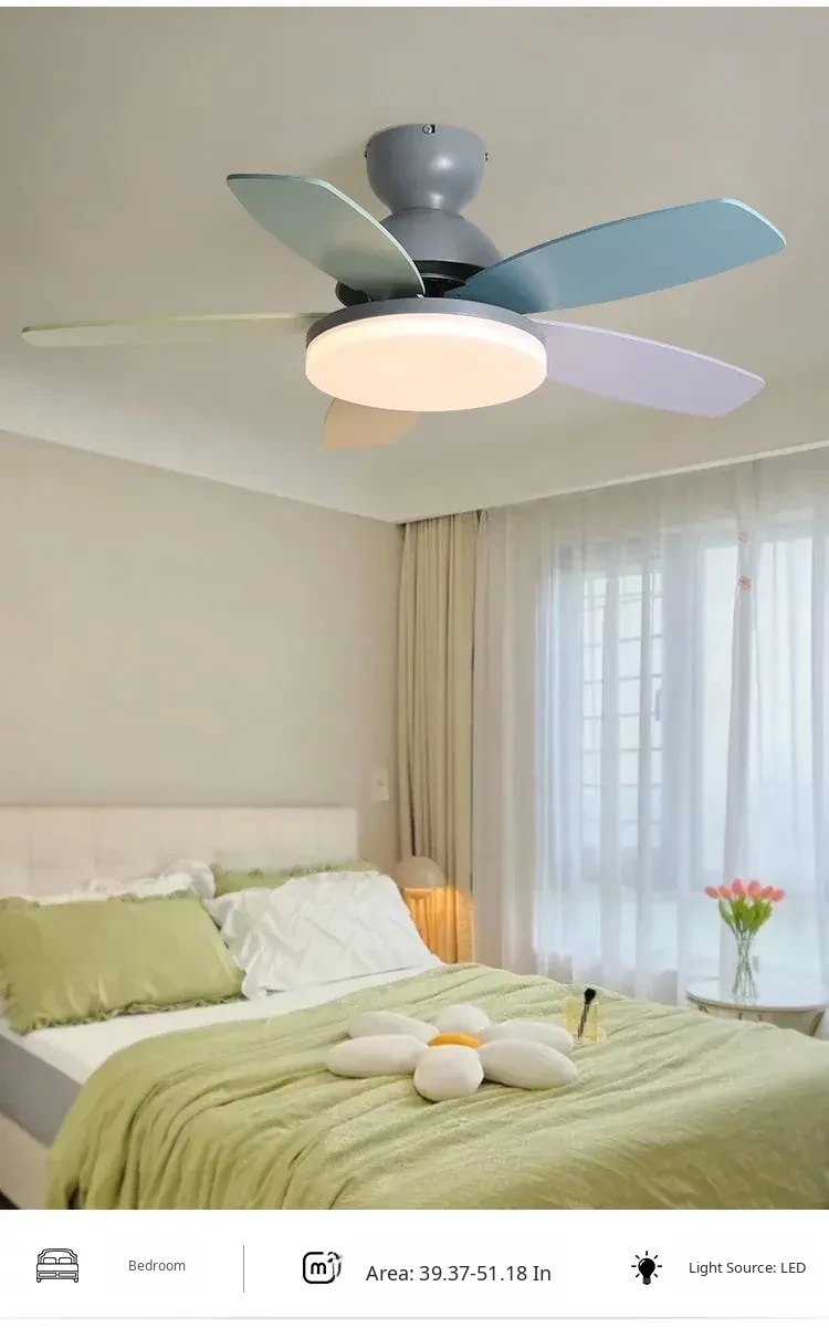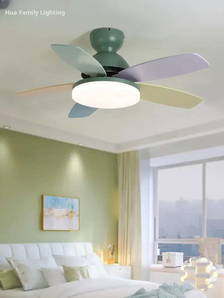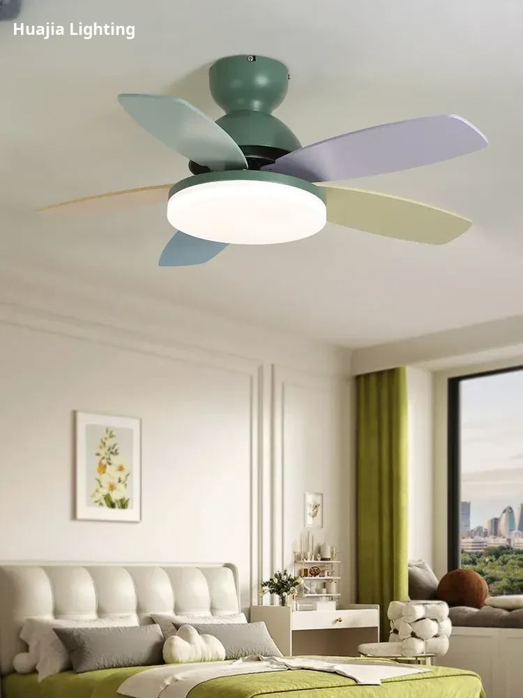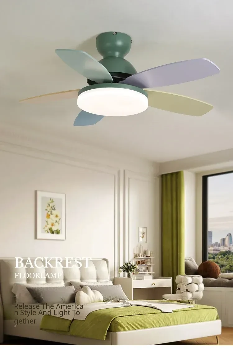 Colorful Ceiling Fan Light for Kids' Rooms - American & French Style Warm Cartoon Design, Perfect for Bedrooms and Dining Areas, Combining Fun and Functionality!