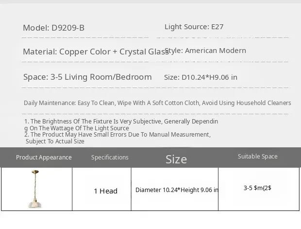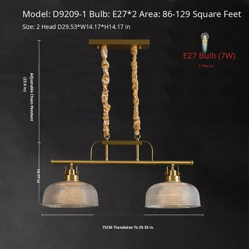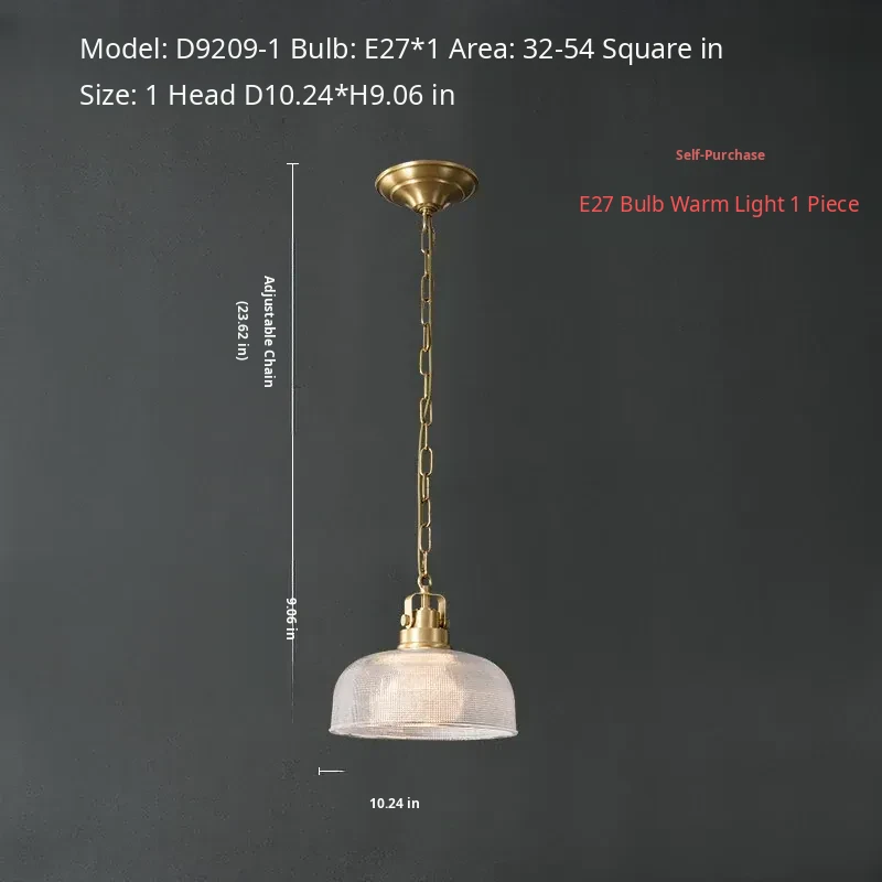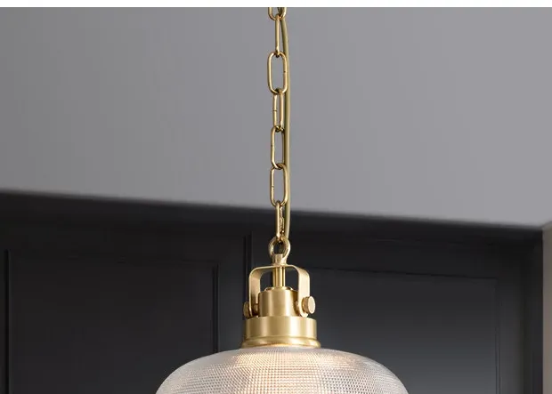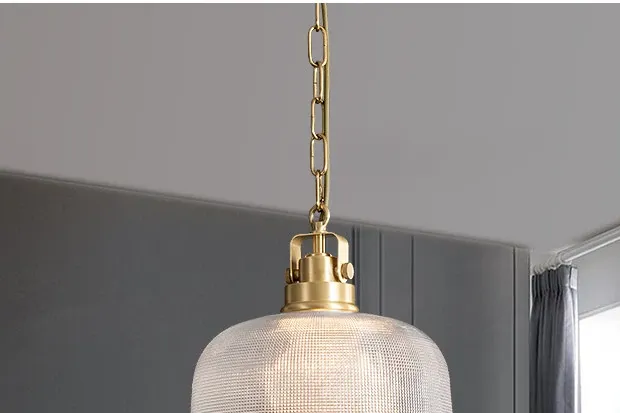 "Elegant All-Copper American Style Single-Head Pendant Light - Creative Glass Lamp for Dining Room, Bedroom, Bedside, Bar Counter, Hallway, and Entrance"