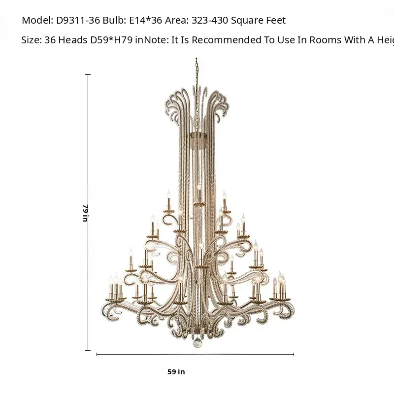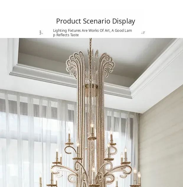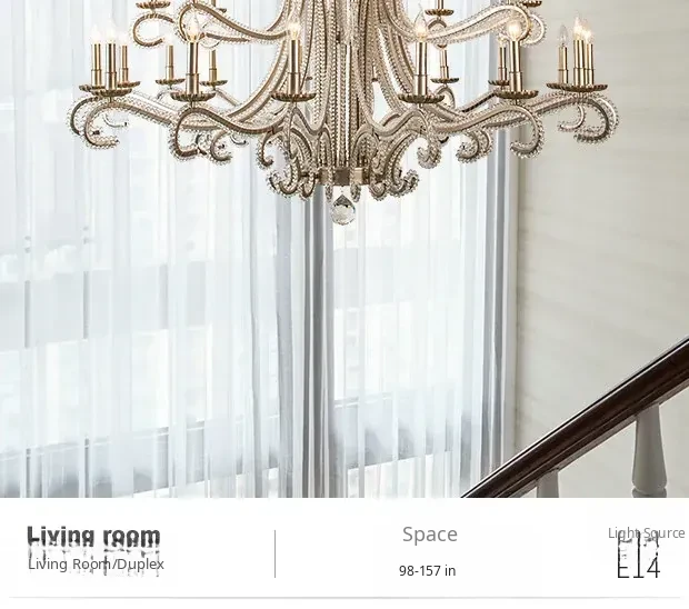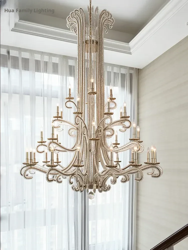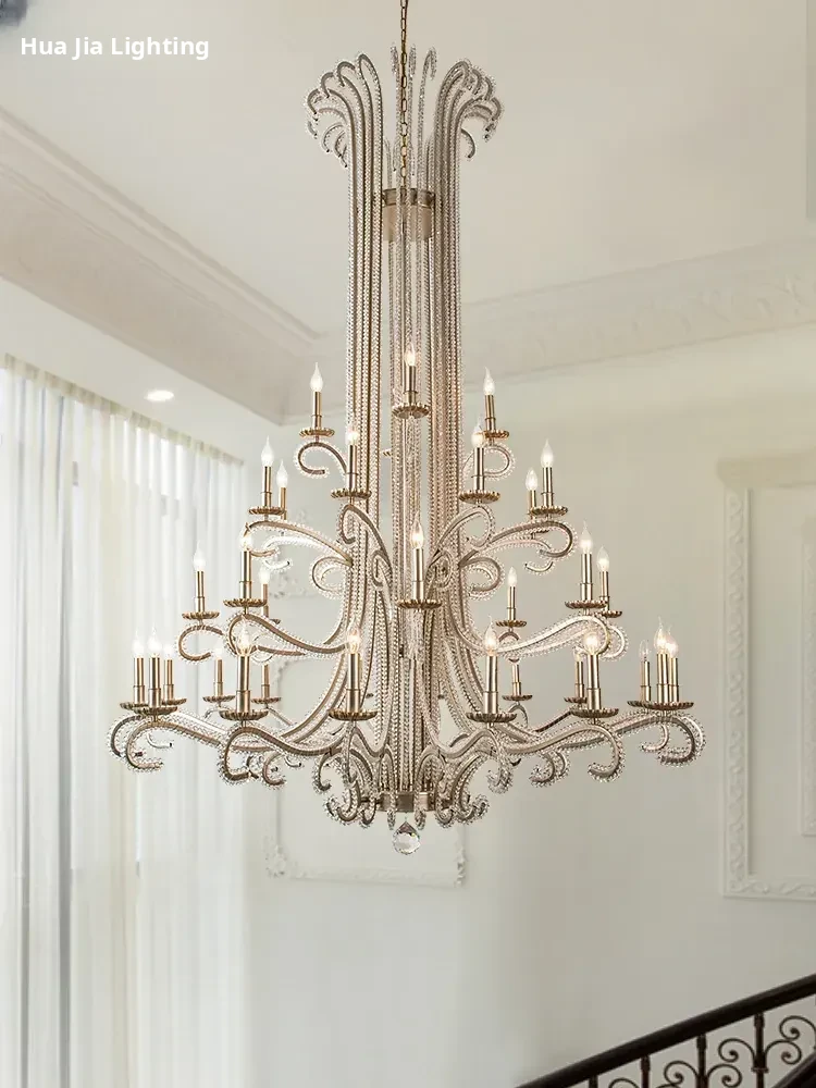 Elegant American Style Chandelier for Loft Apartments - Stunning French Design Lighting for Double-Height Living Rooms and Grand Staircases, Perfect for Villas and Modern Homes!