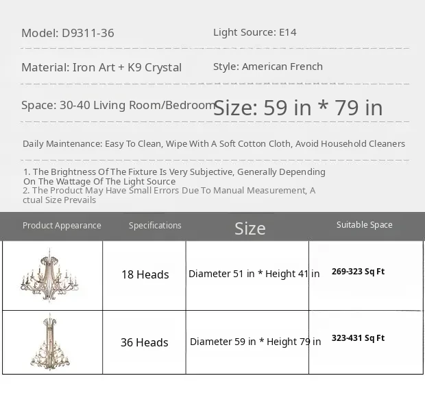 D130*H105Cm 18 Heads(Recoinended for Rooms with a Ceiling Height of [Ne1] or Higher)