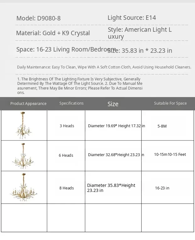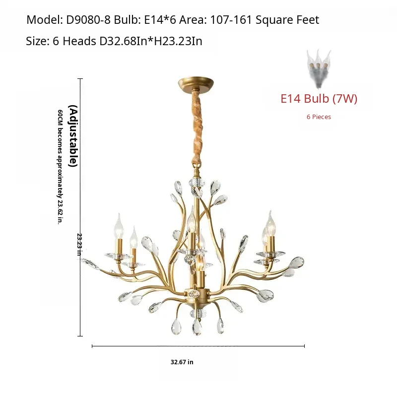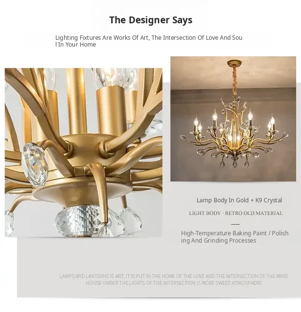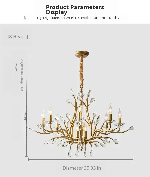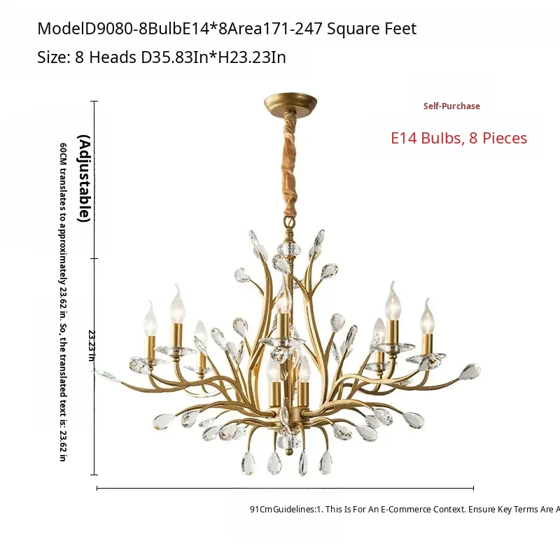 Elegant American Style Crystal Chandelier - Modern Minimalist Decorative Lighting for Living Room, Dining Room, and Bedroom - Chic and Artistic Design for a Touch of Luxury