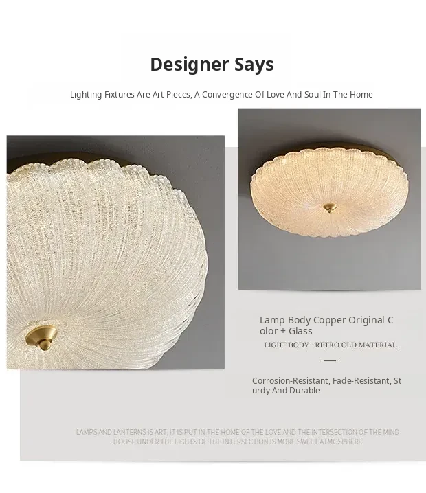 Elegant American-Style Ceiling Light for Bedroom - Minimalist Creamy Design, Cozy Atmosphere, Perfect for Balcony and Study - Premium Full-Spectrum Lighting Solution
