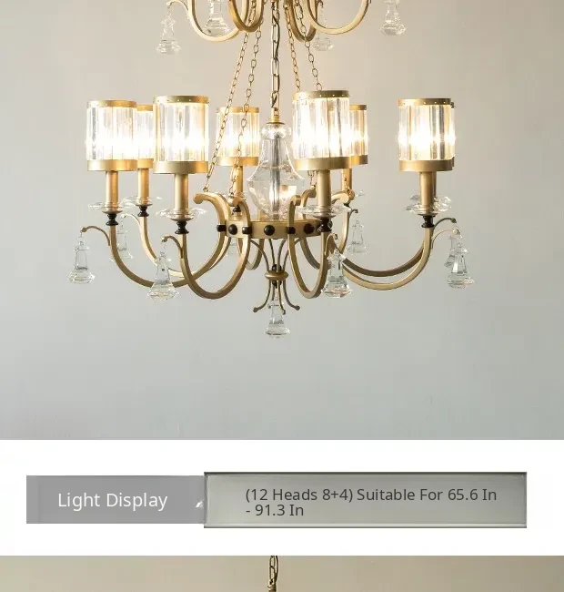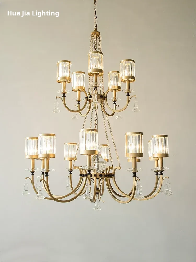 Elegant Crystal Chandelier for Villa - Stunning Double-Layer Staircase Light Fixture, Ideal for American and European Style Living Rooms and Dining Areas. Perfect for Luxurious Multi-Level Homes!