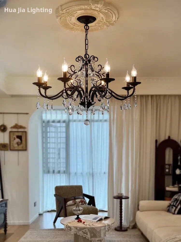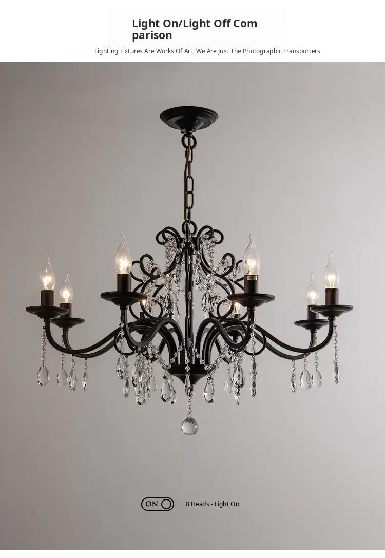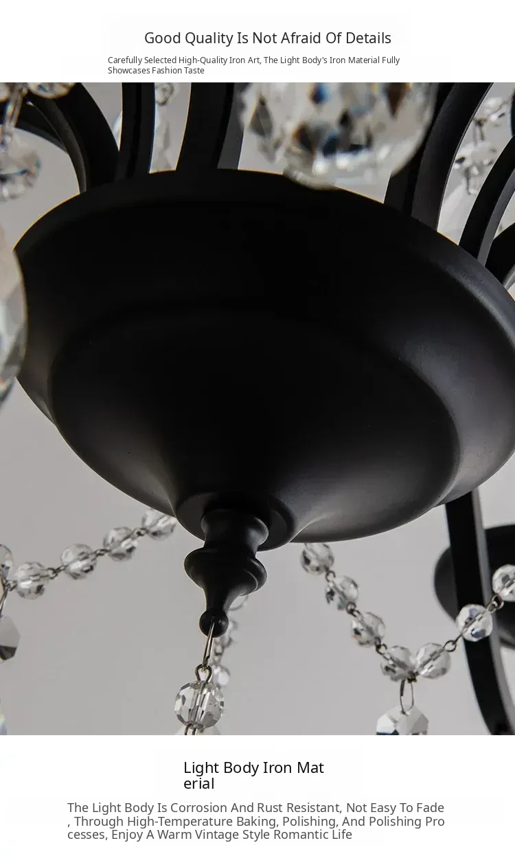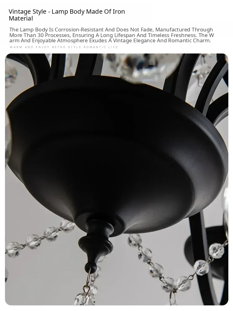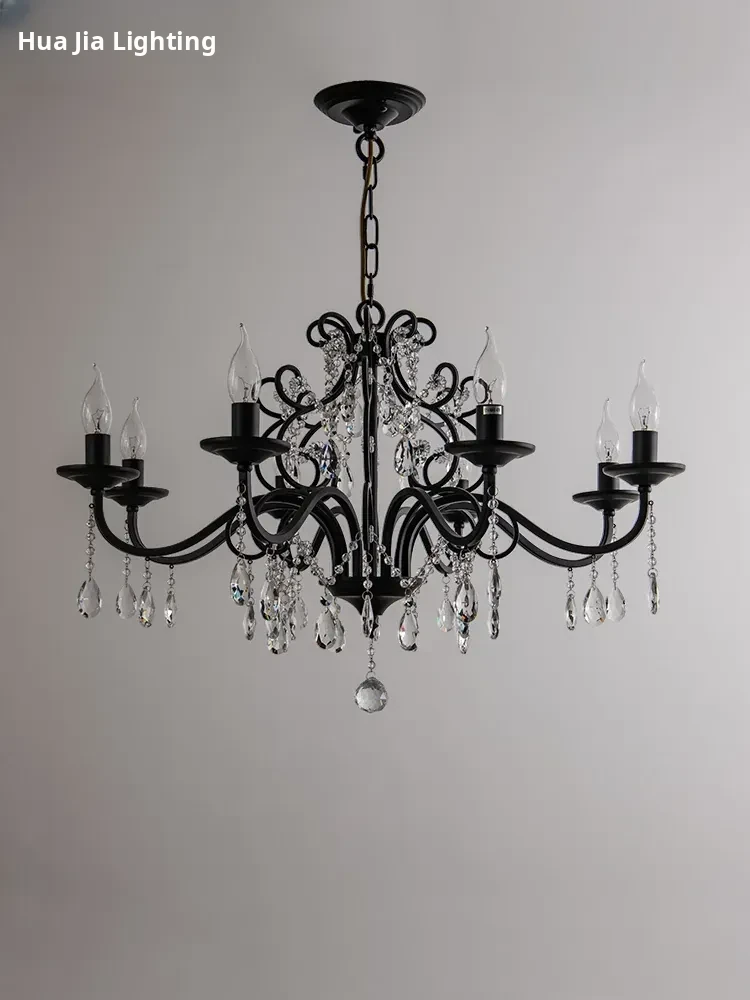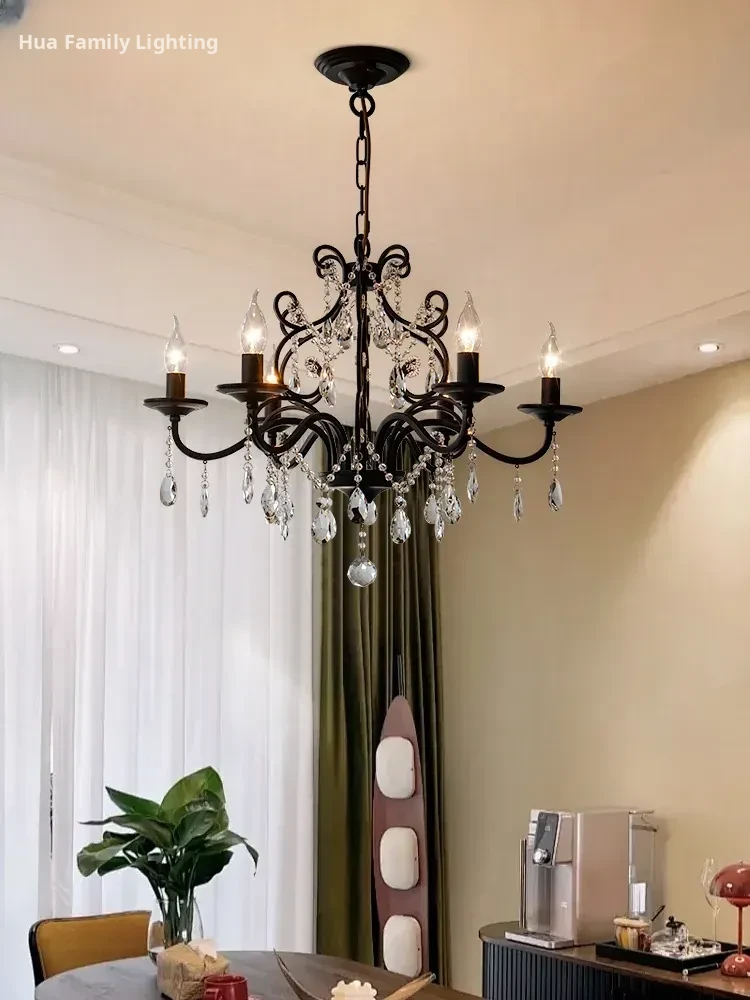 Elegant French Crystal Chandelier - Black American Candle Decor for Living Room & Dining Room, New Luxury Lighting for Villa & Bedroom