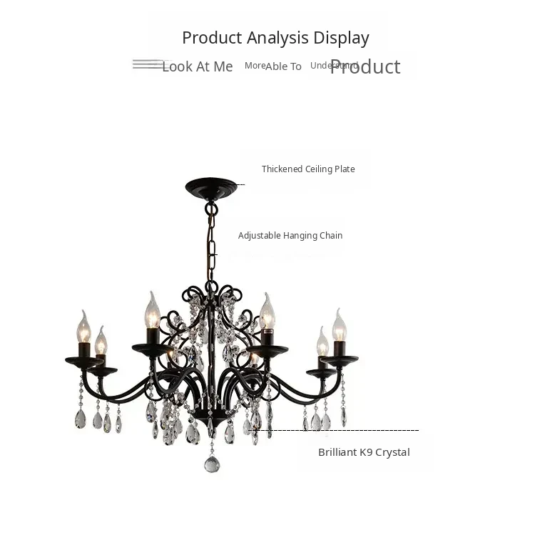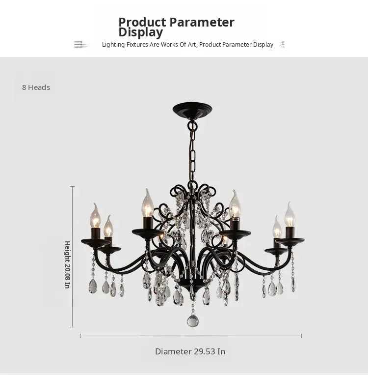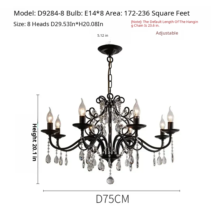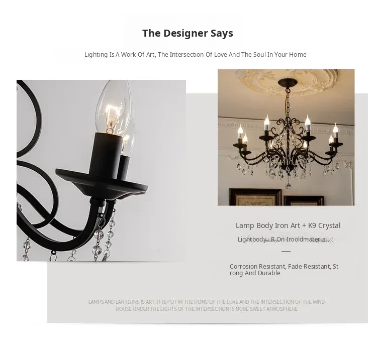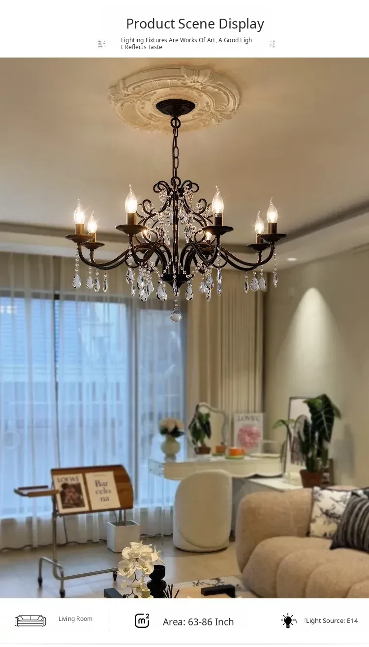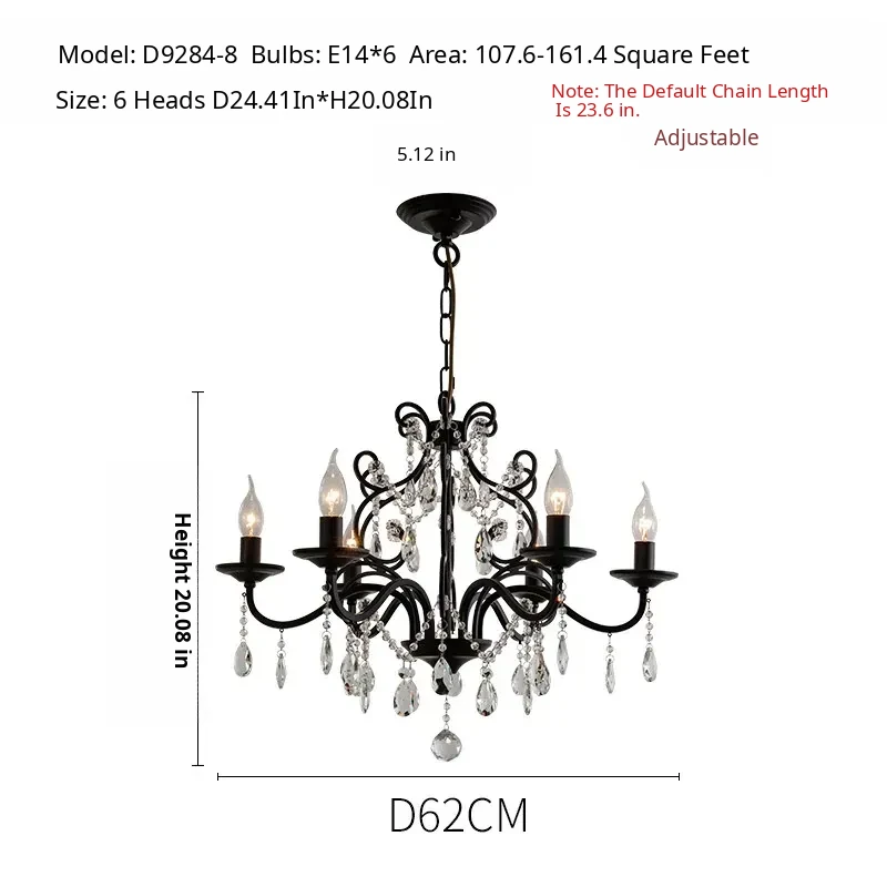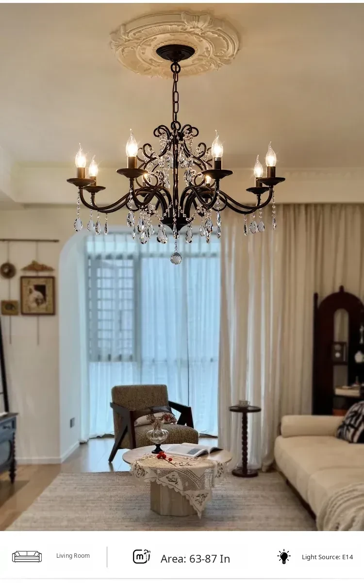 Elegant French Crystal Chandelier - Black American Candle Decor for Living Room & Dining Room, New Luxury Lighting for Villa & Bedroom