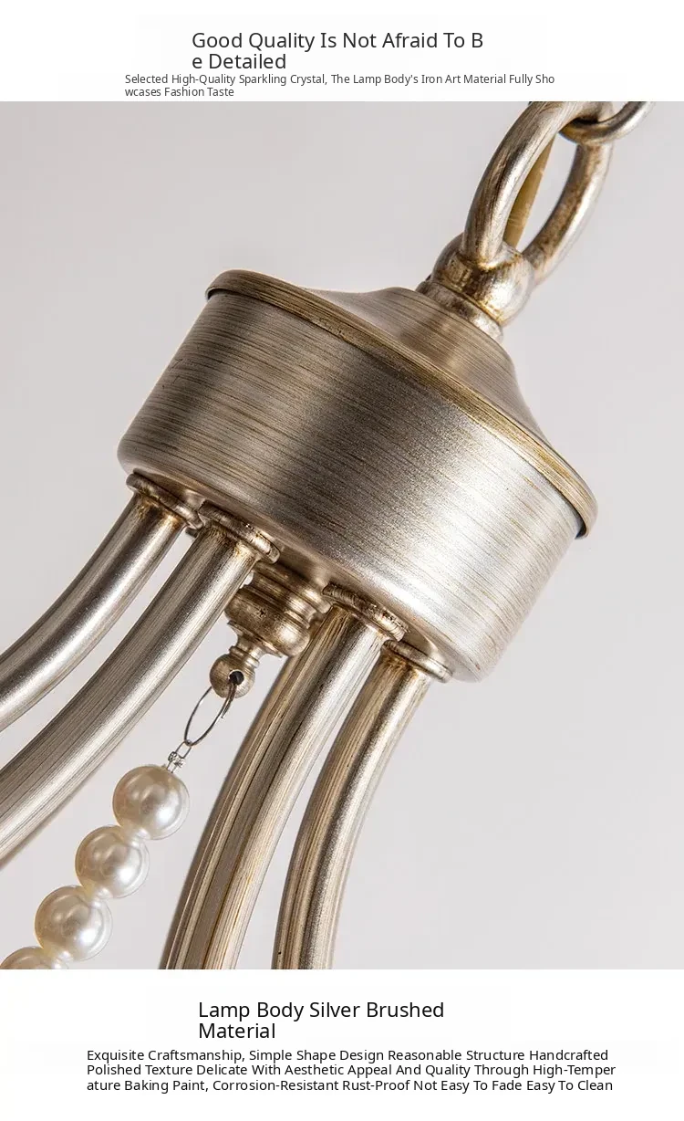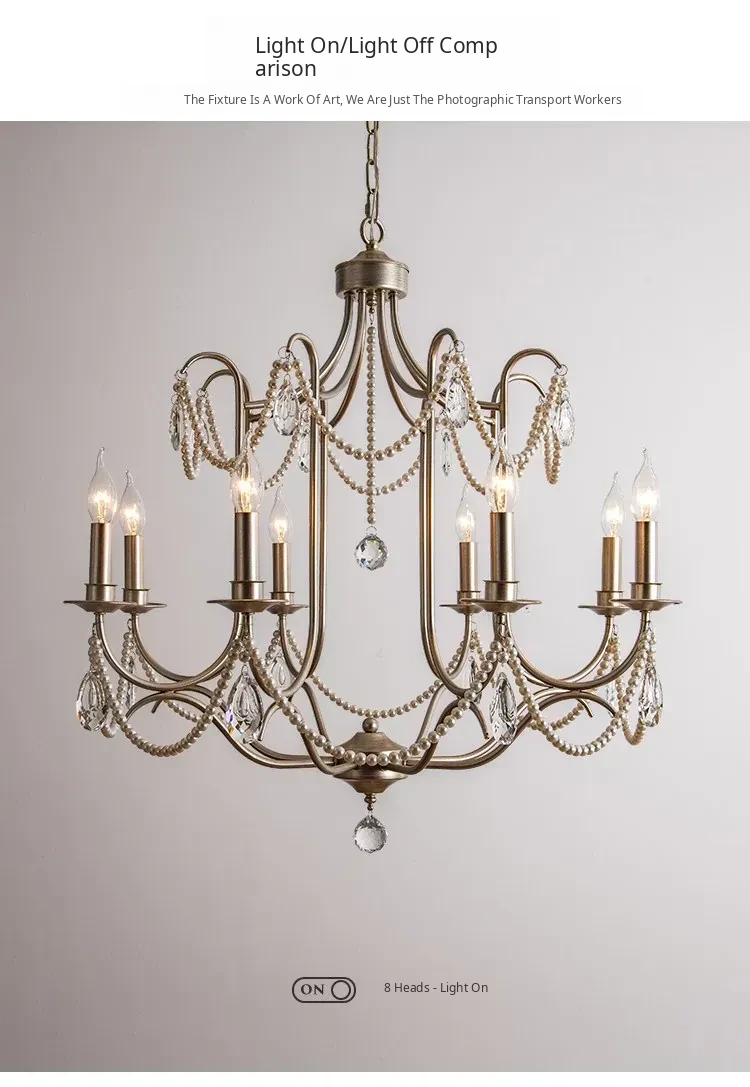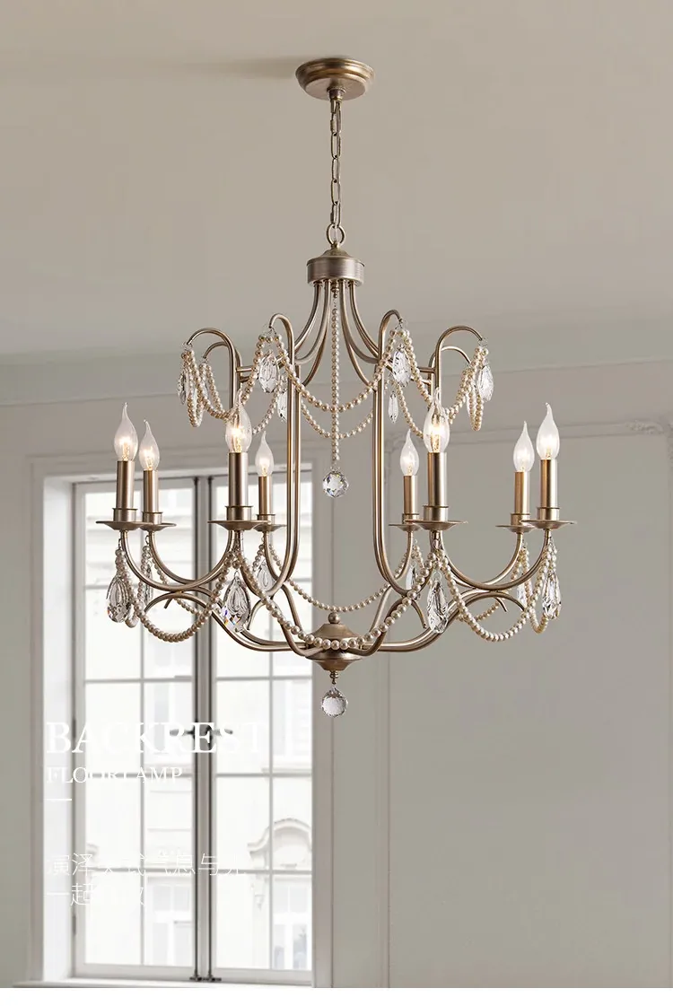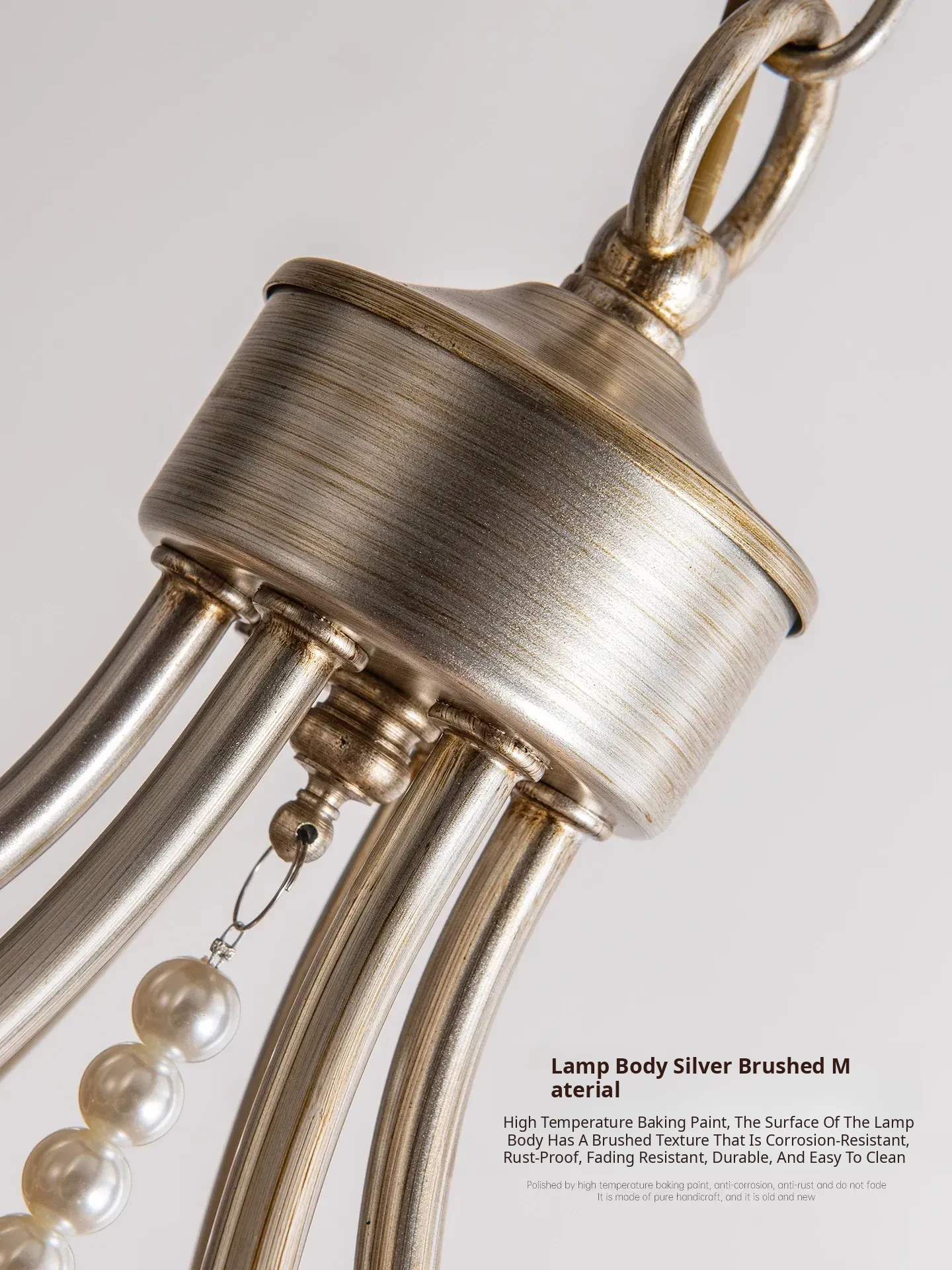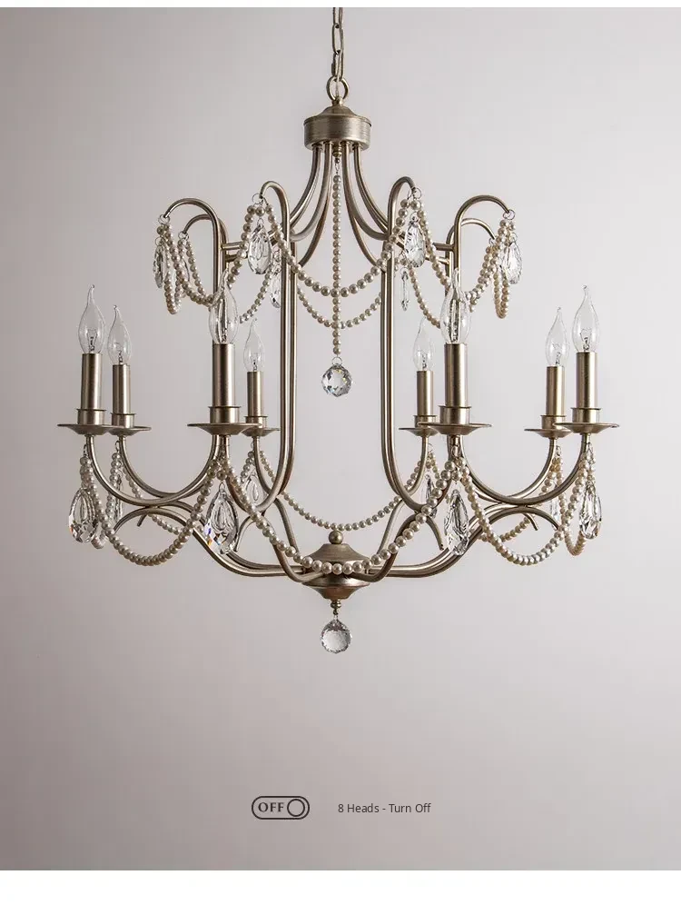 Elegant French Crystal Chandelier - Vintage American Style Silver Pendant Light for Luxurious Villas, Bedrooms, and Dining Rooms - Exquisite Pearl Crystal Illumination