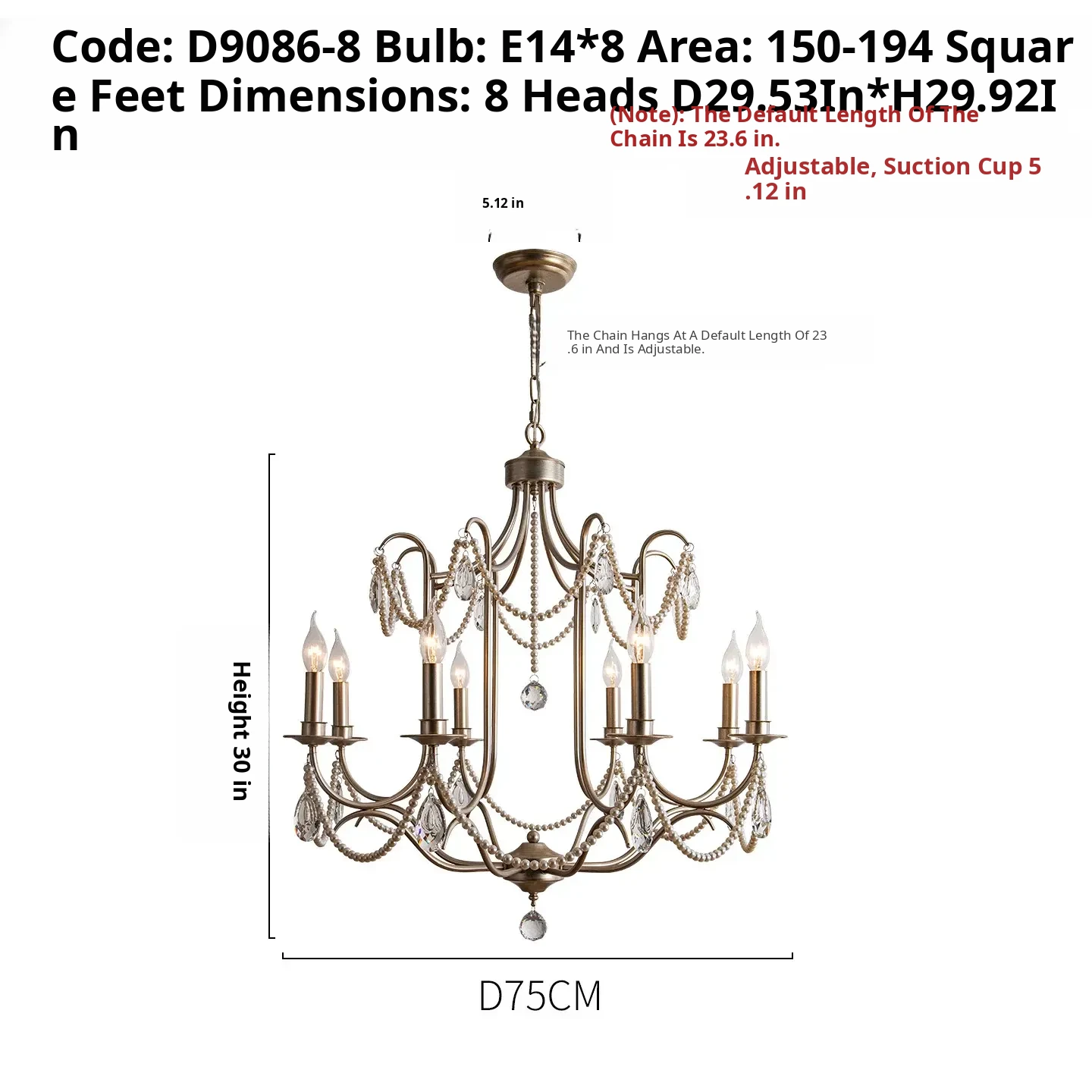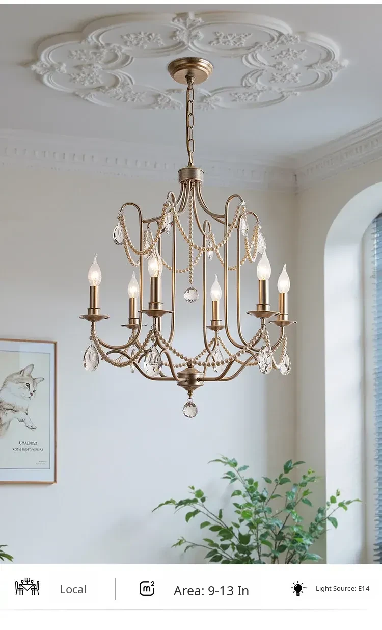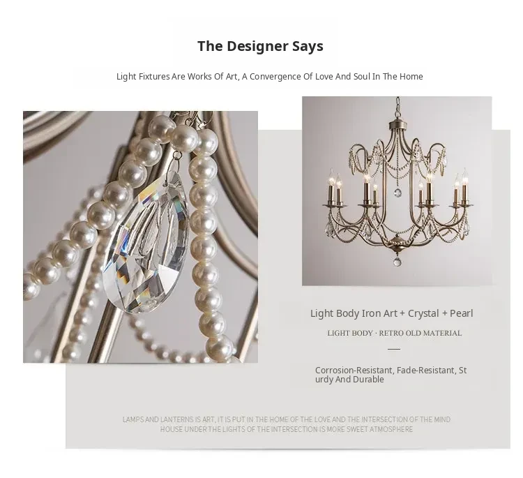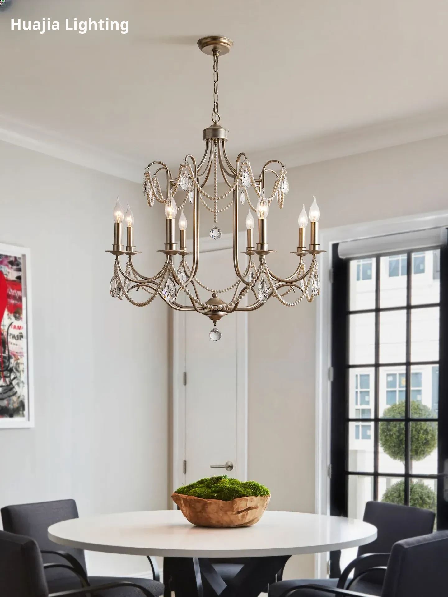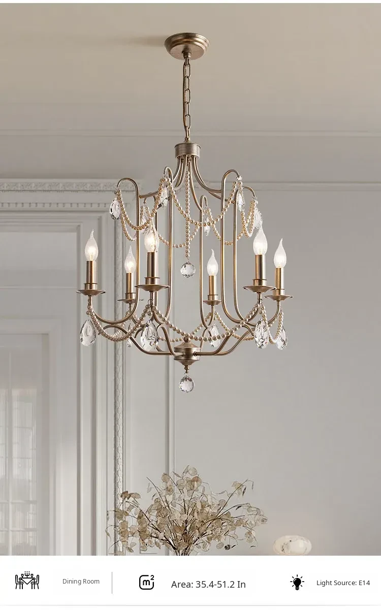 Elegant French Crystal Chandelier - Vintage American Style Silver Pendant Light for Luxurious Villas, Bedrooms, and Dining Rooms - Exquisite Pearl Crystal Illumination