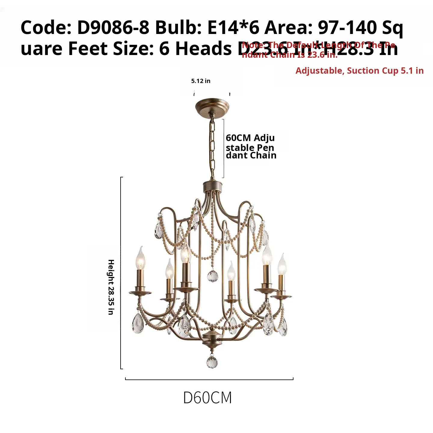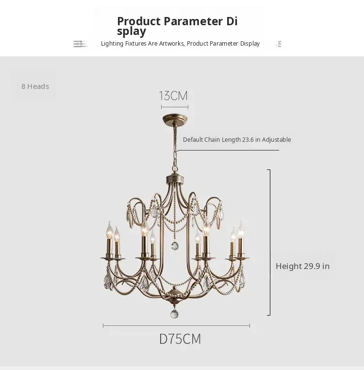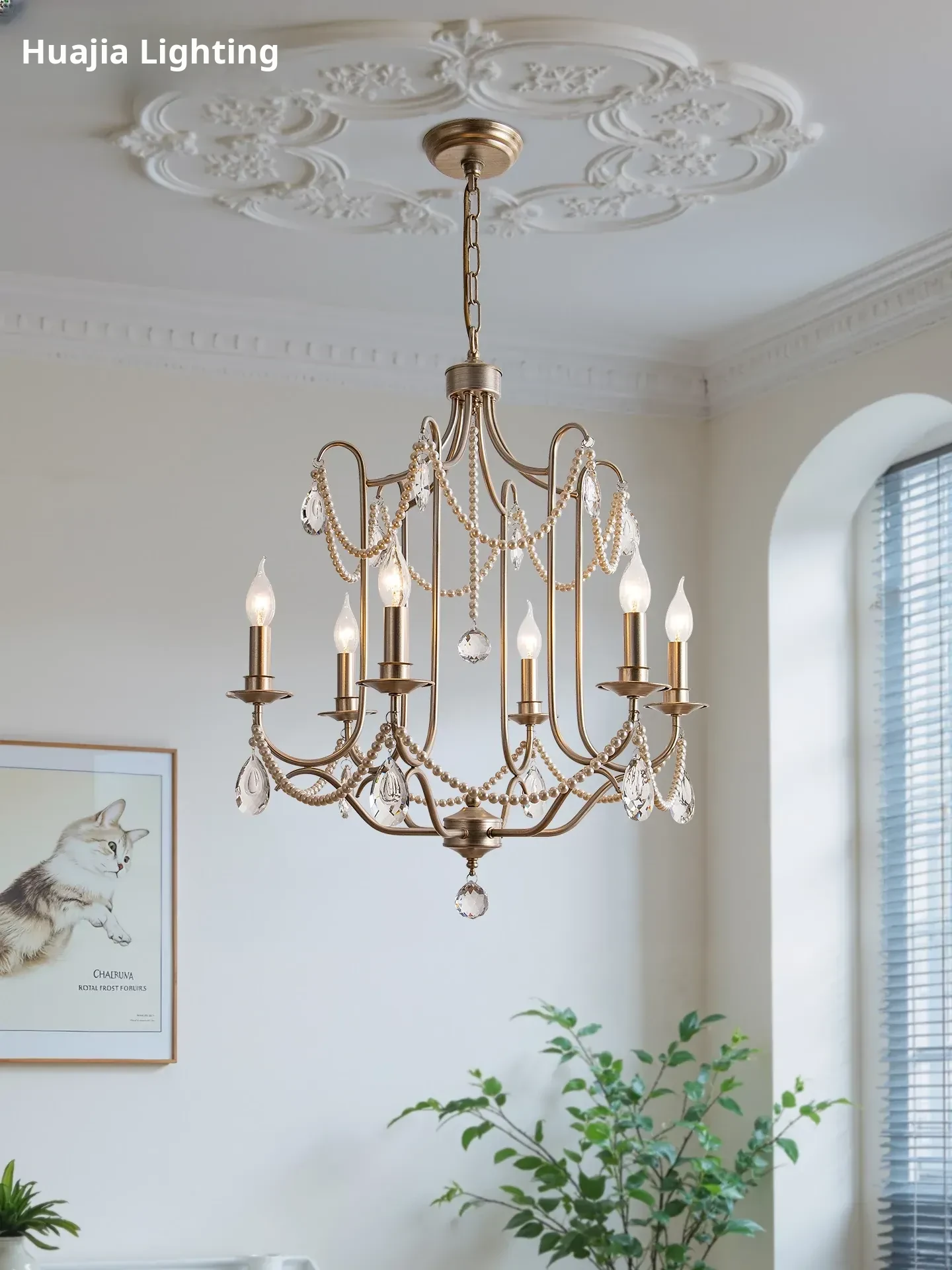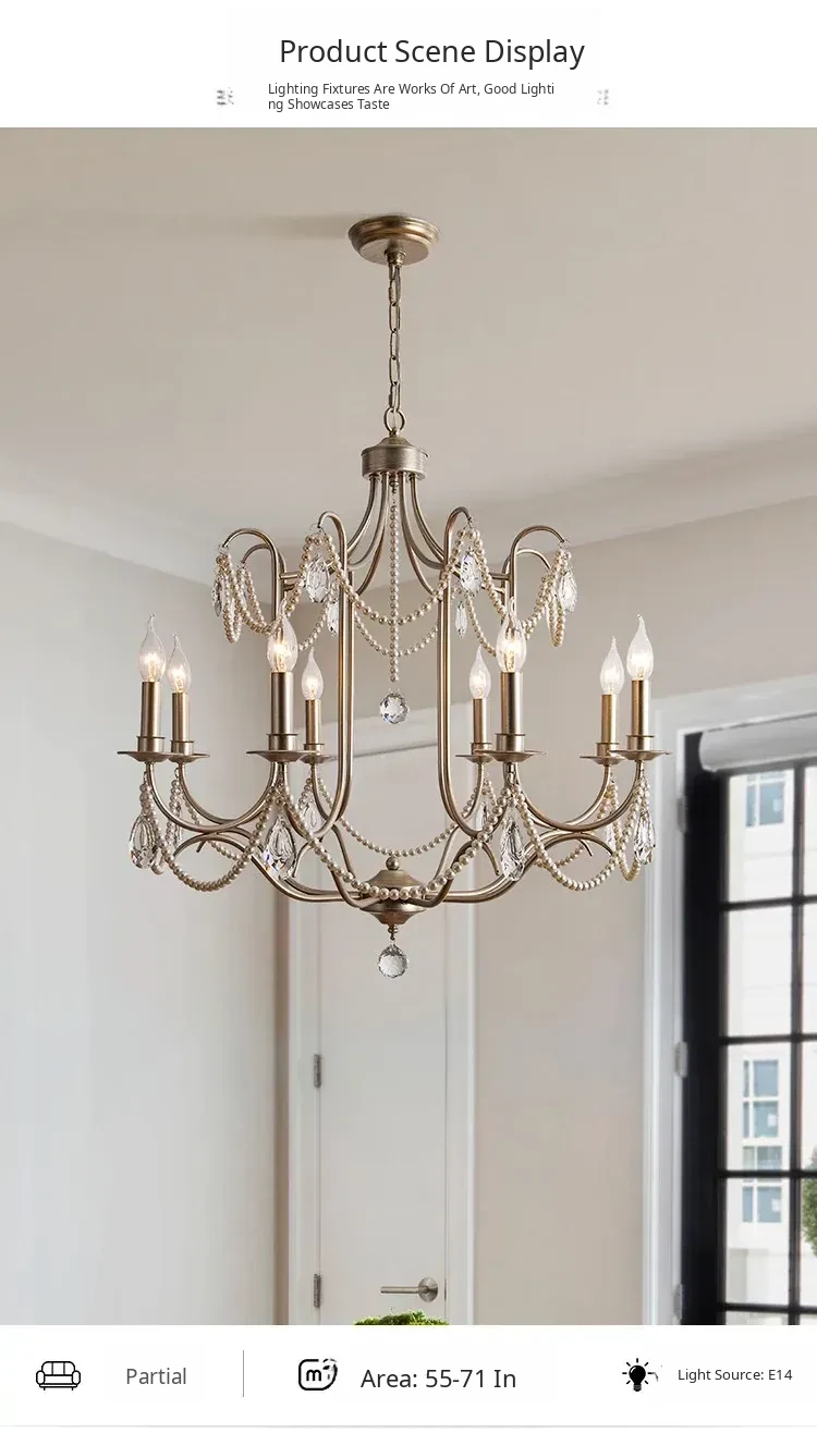 Elegant French Crystal Chandelier - Vintage American Style Silver Pendant Light for Luxurious Villas, Bedrooms, and Dining Rooms - Exquisite Pearl Crystal Illumination
