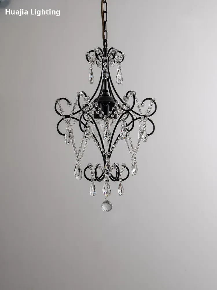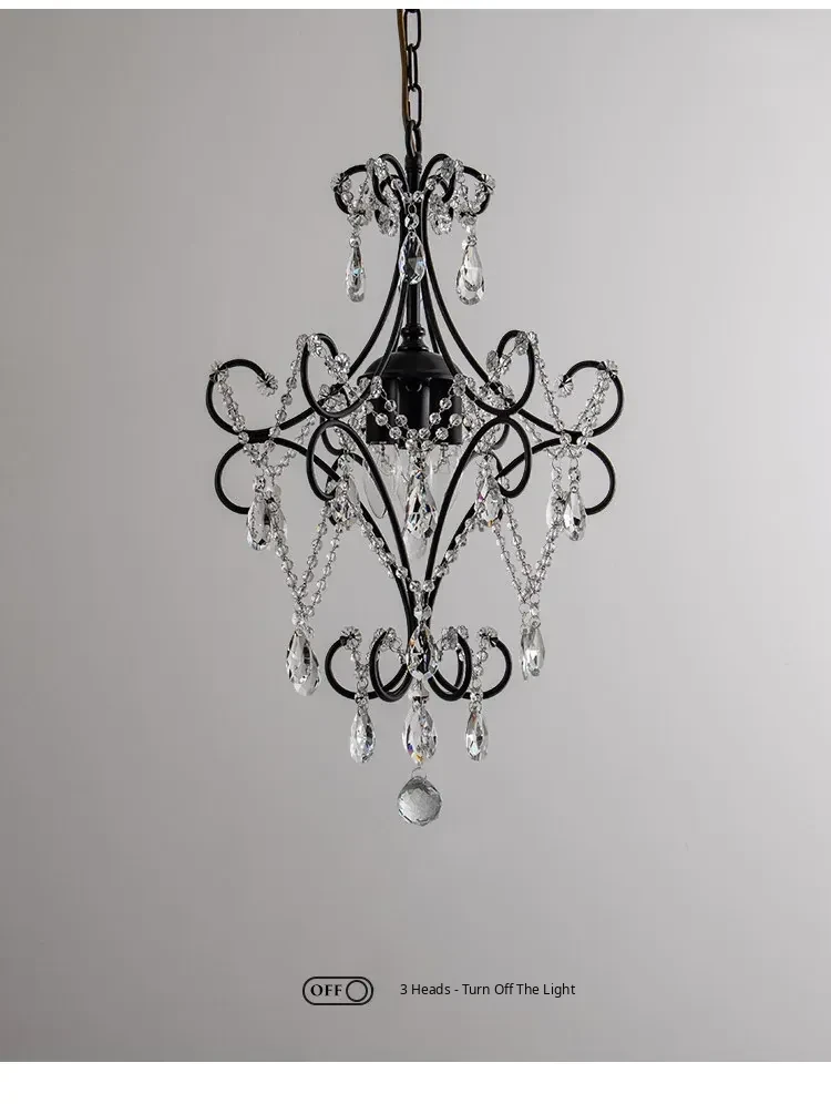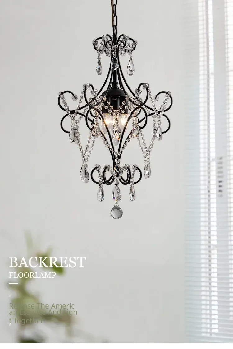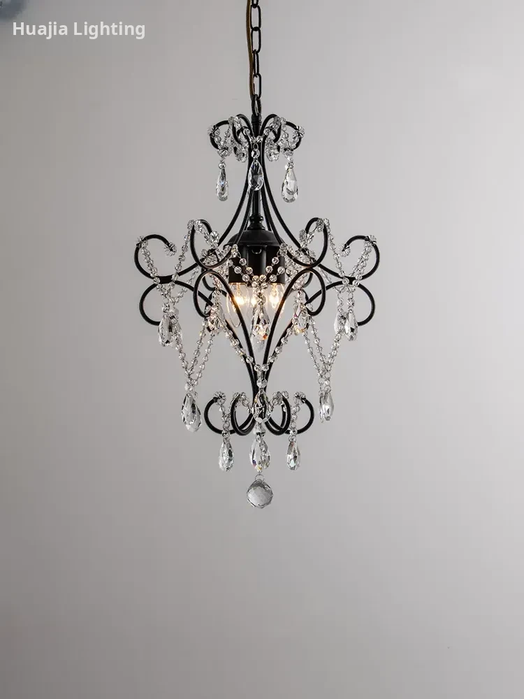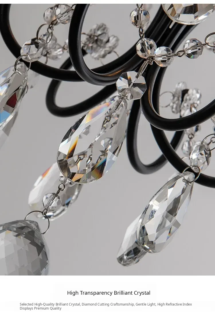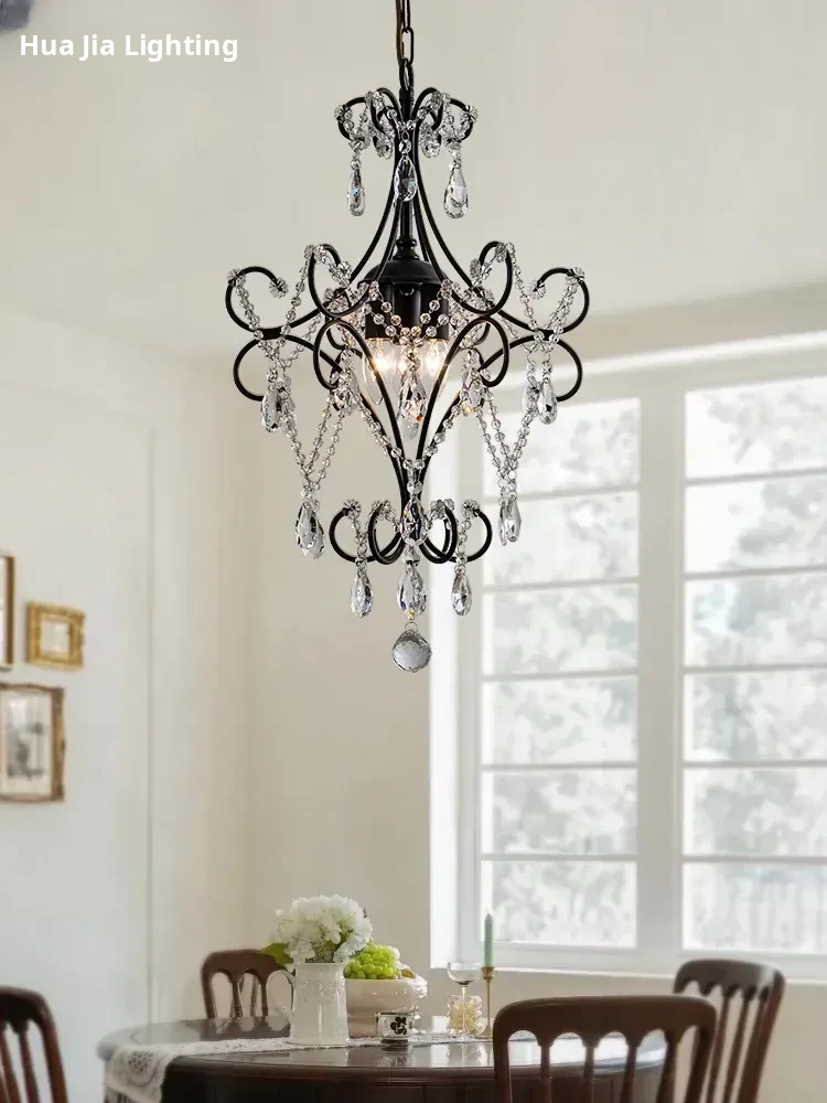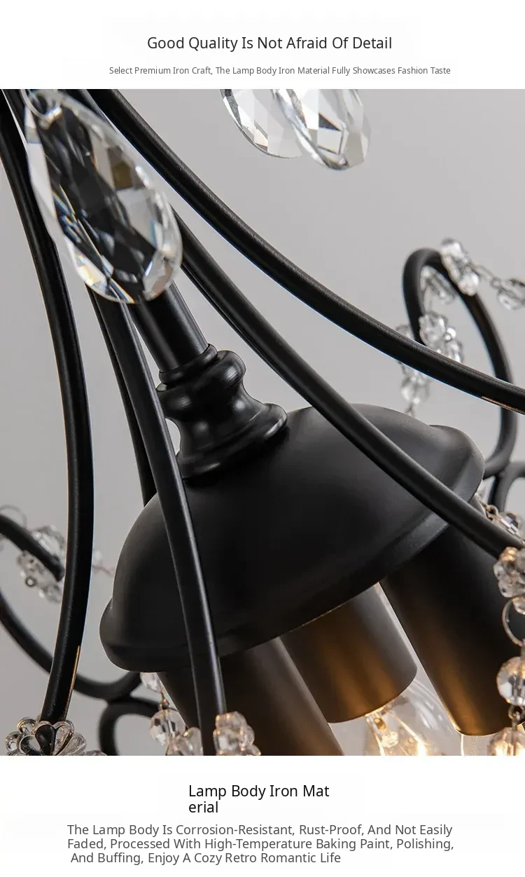 Elegant French-Inspired Chandelier for Dining and Bar Areas - Minimalist American Black Rustic Pendant Light for Bedrooms and Walk-in Closets - Stunning Crystal Design