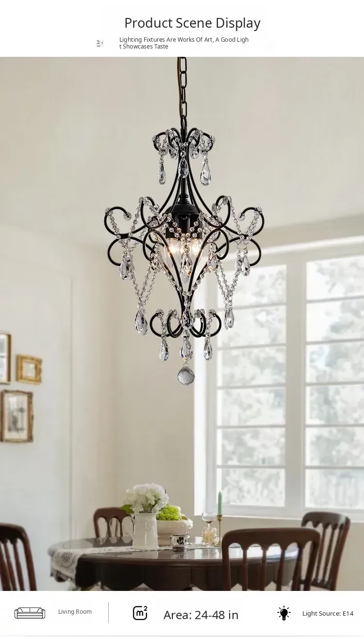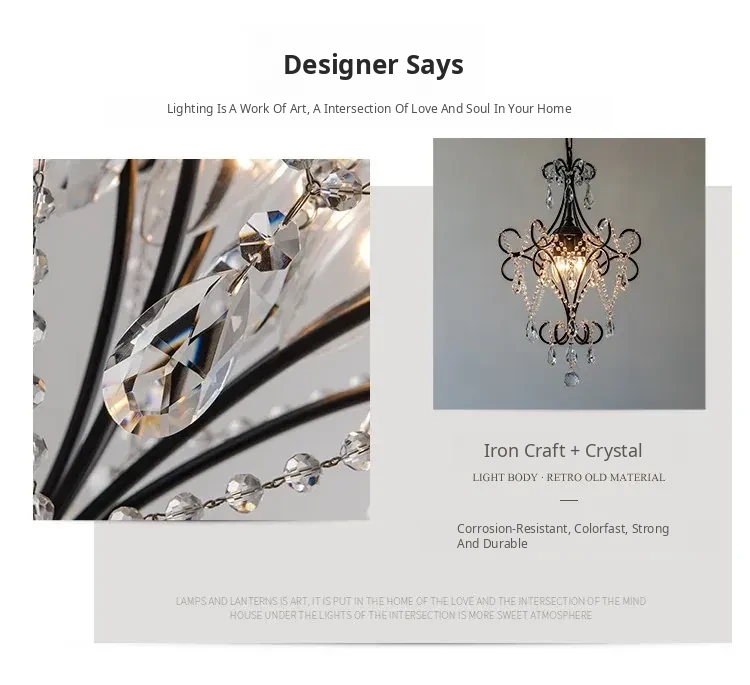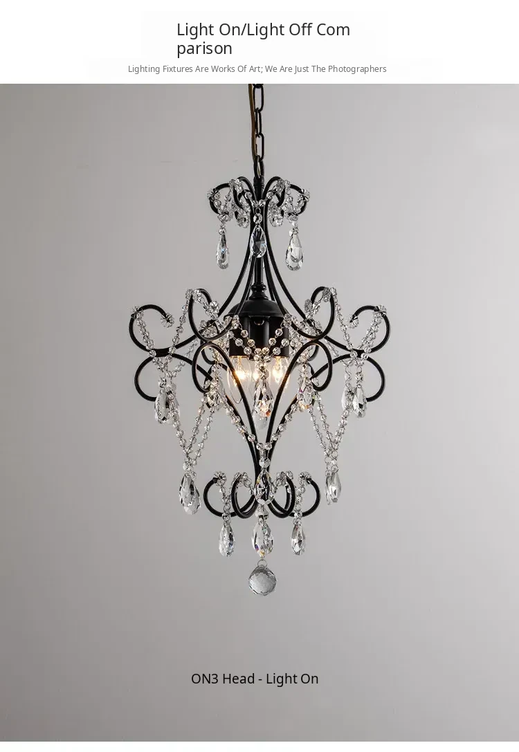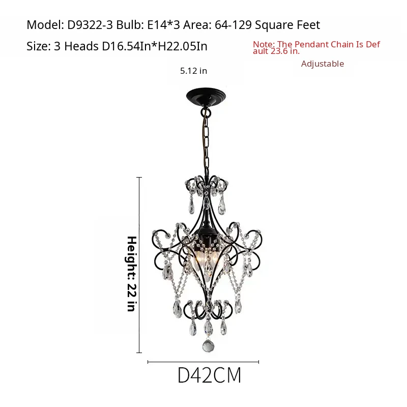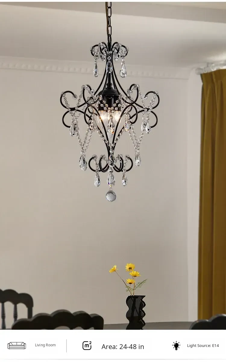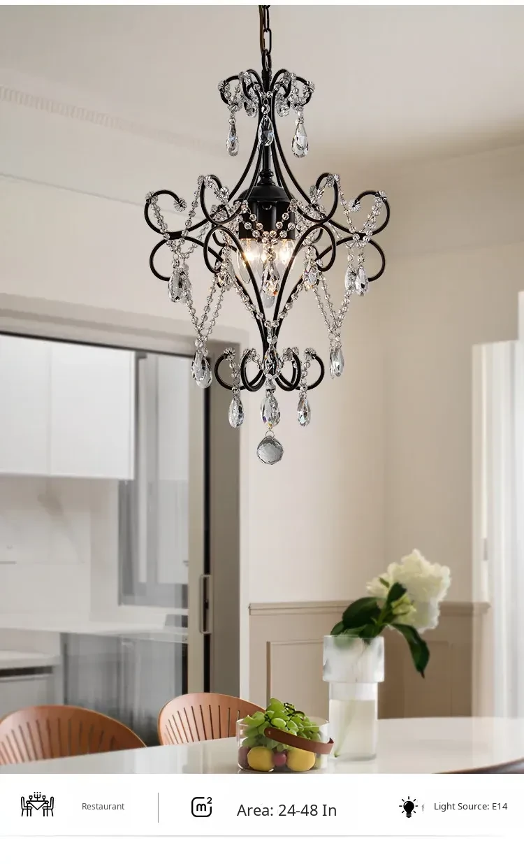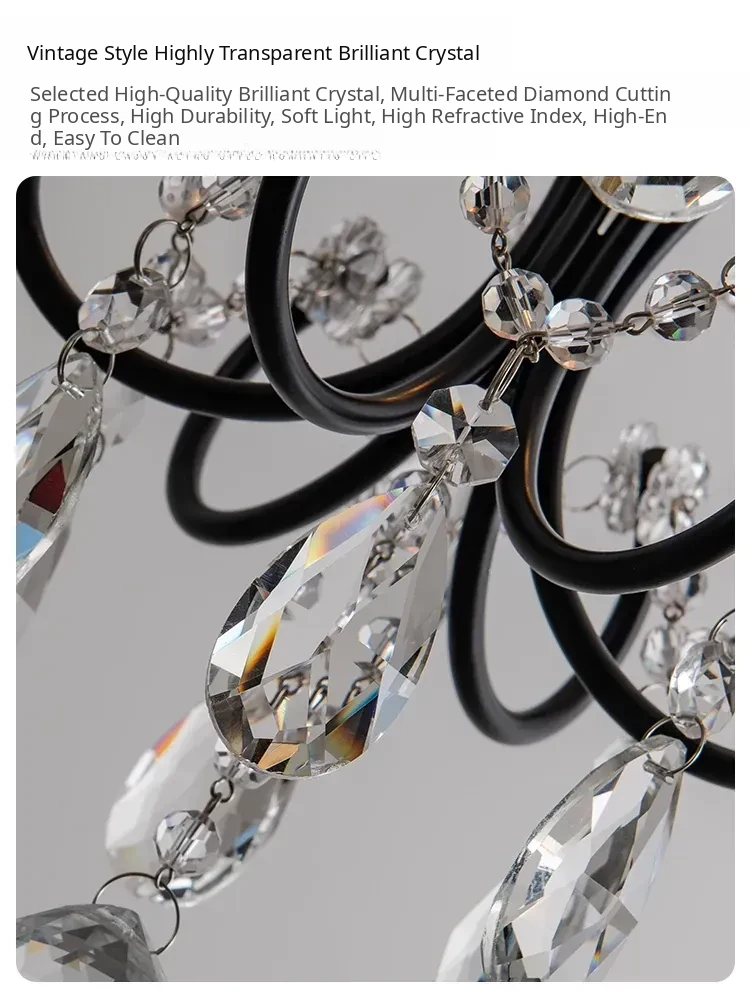 Elegant French-Inspired Chandelier for Dining and Bar Areas - Minimalist American Black Rustic Pendant Light for Bedrooms and Walk-in Closets - Stunning Crystal Design