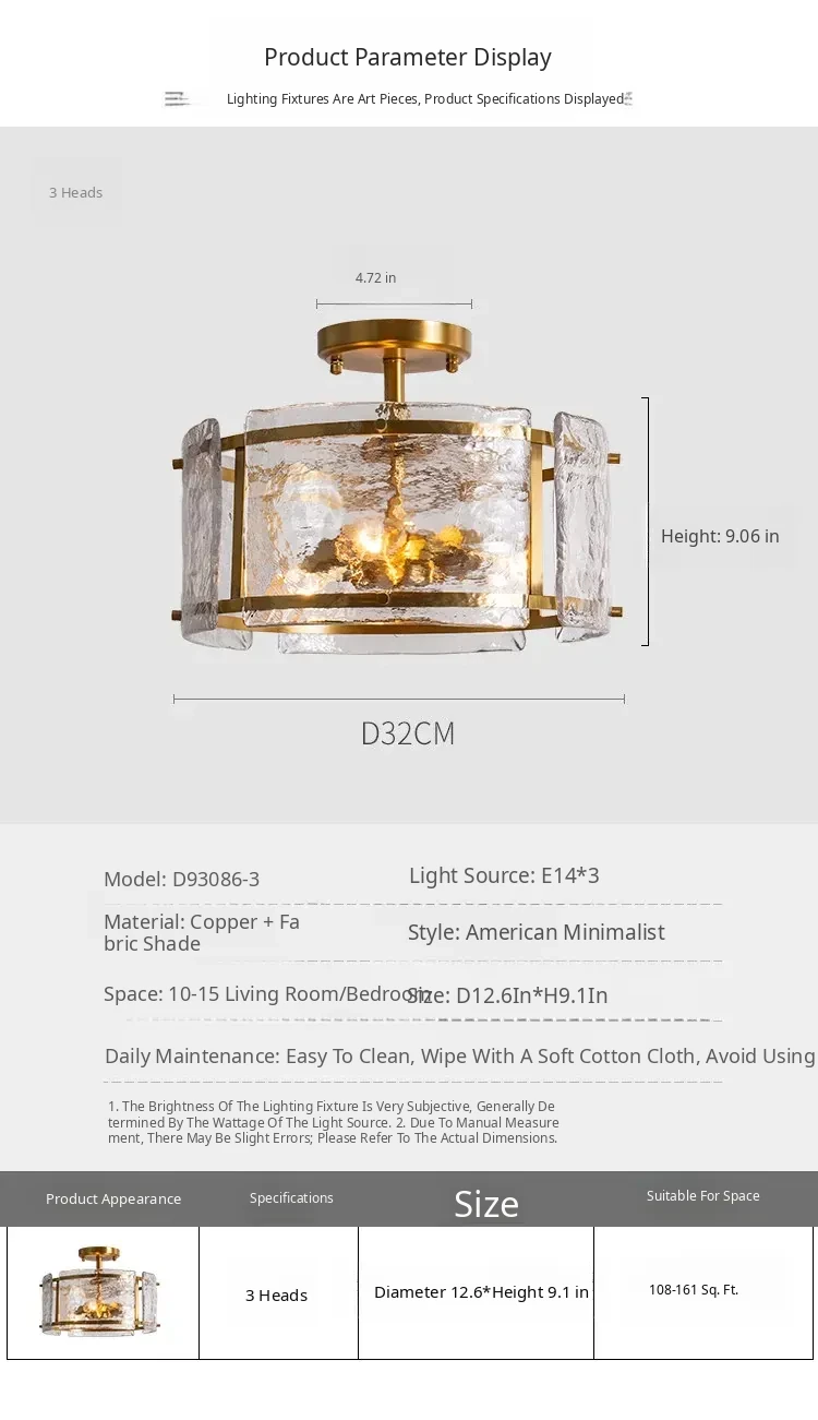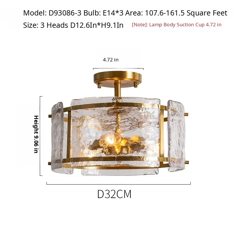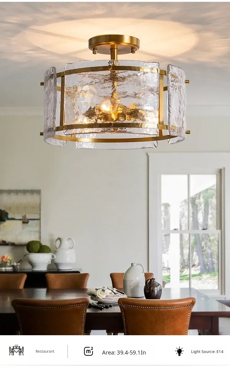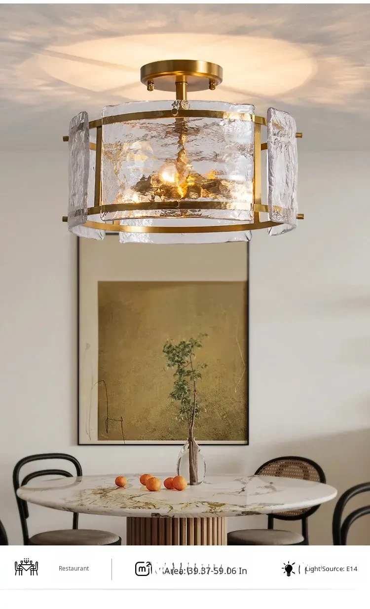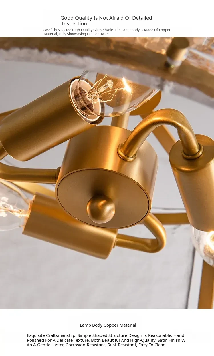 French Ceiling Light for Bedroom - Elegant Luxury Design, Pure Copper & Glass, Perfect Atmosphere for Living Room or Study, Stylish and High-Quality Fixture - Illuminate Your Space with Sophistication!