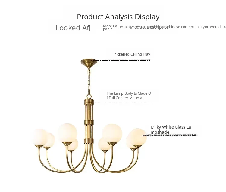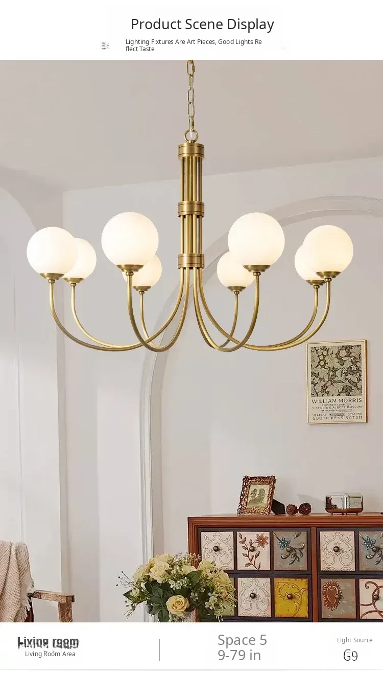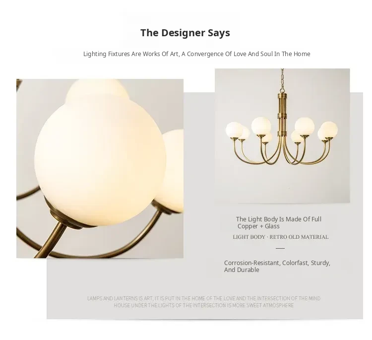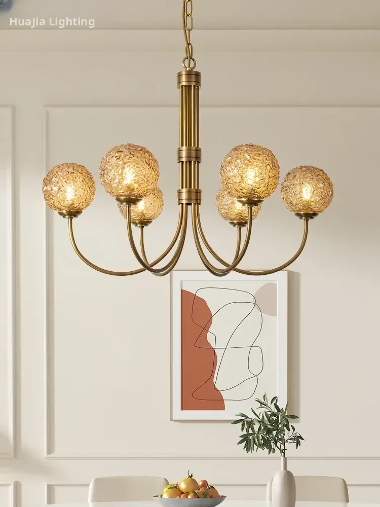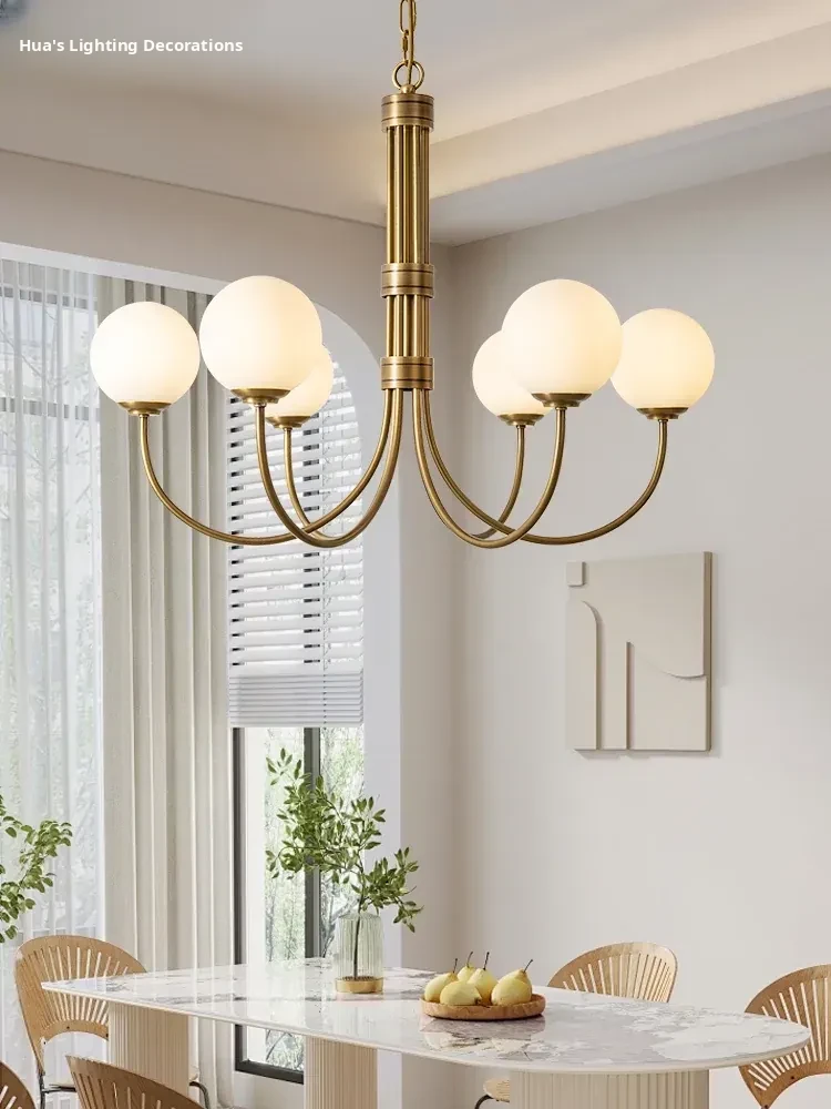French Chandelier - Vintage Style Dining Room Light Fixture, American Retro Bauhaus Design for Bedroom & Study, Creamy Aesthetic Lighting