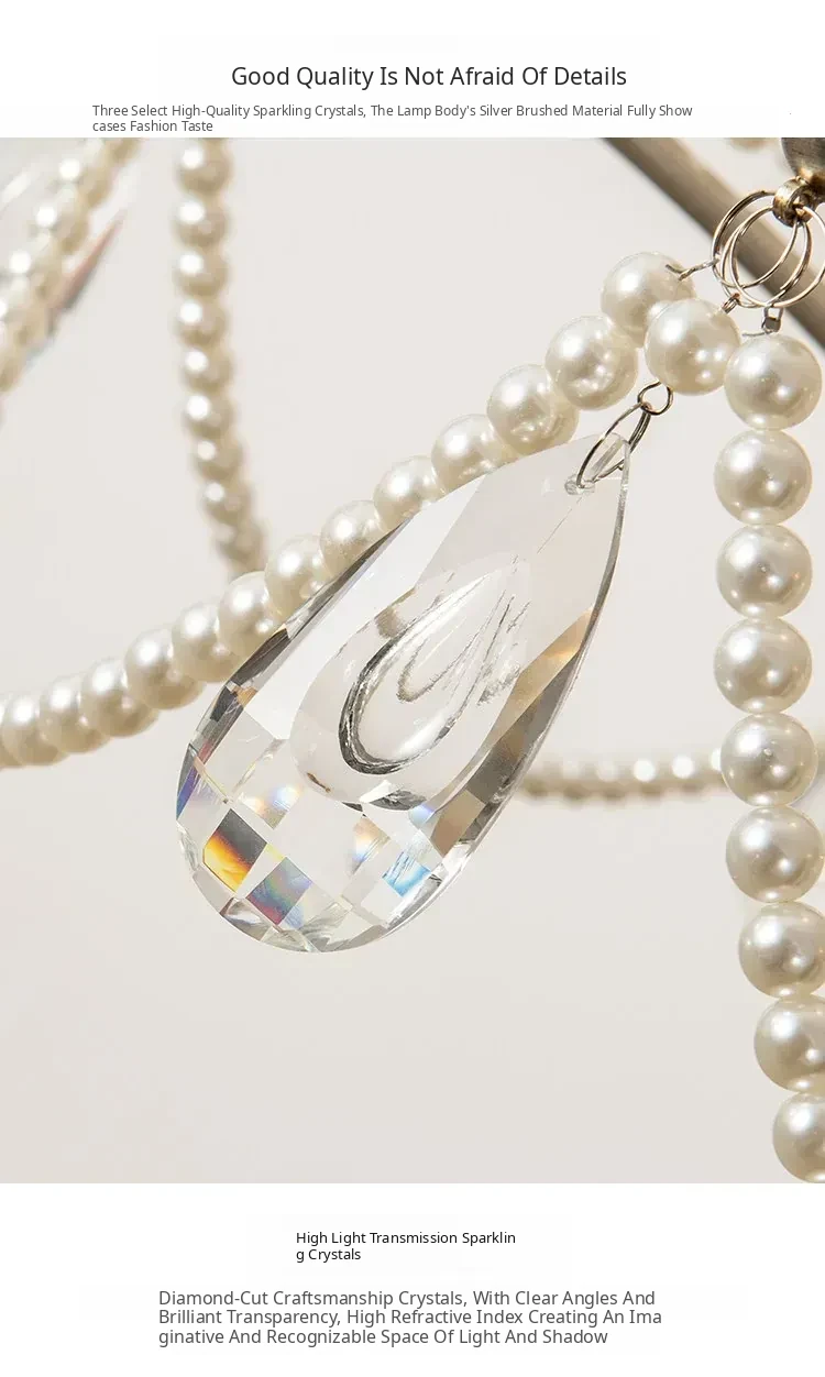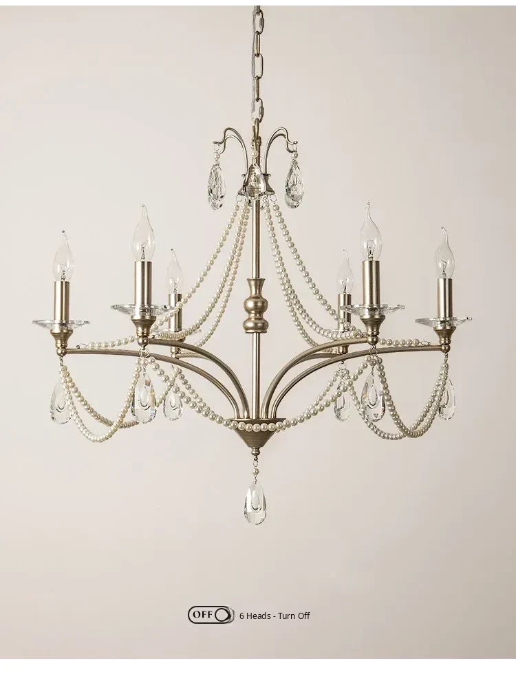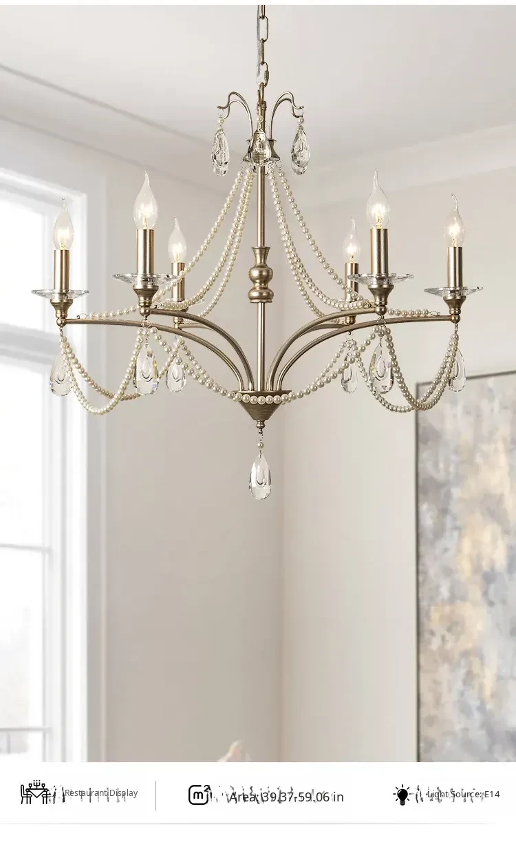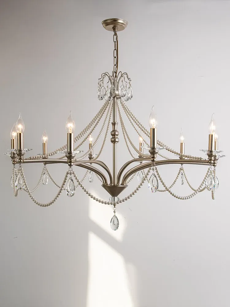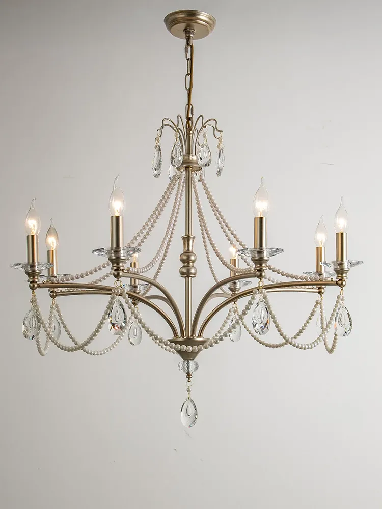 French Cream Vintage Pearl Crystal Chandelier - Elegant Lighting for Girls' Bedrooms, Master Bedrooms, Hallways, and Dining Rooms - Perfect Blend of Chic and Classic Style