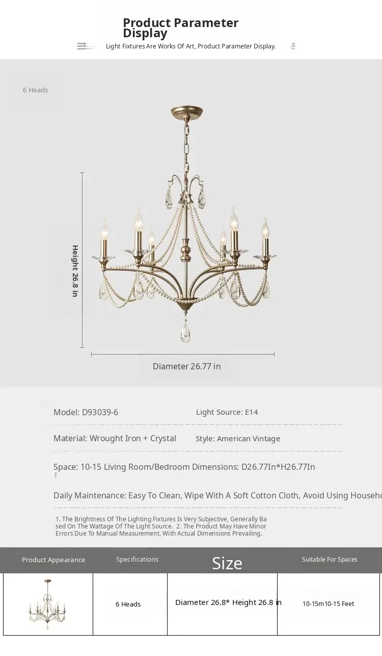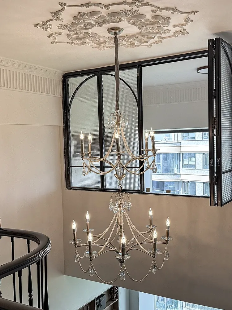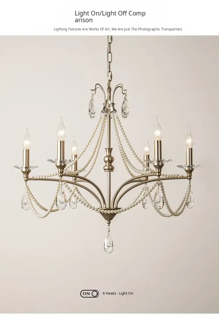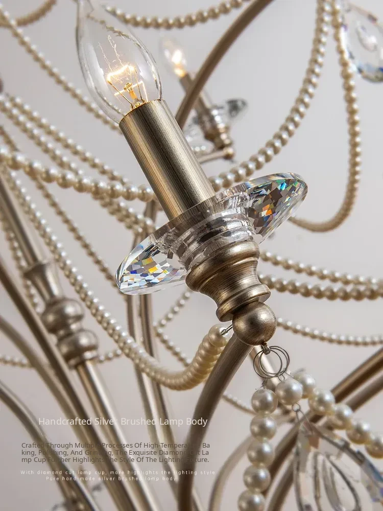 French Cream Vintage Pearl Crystal Chandelier - Elegant Lighting for Girls' Bedrooms, Master Bedrooms, Hallways, and Dining Rooms - Perfect Blend of Chic and Classic Style