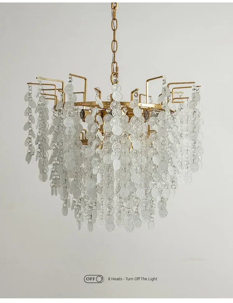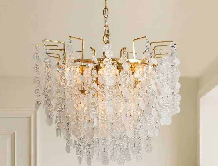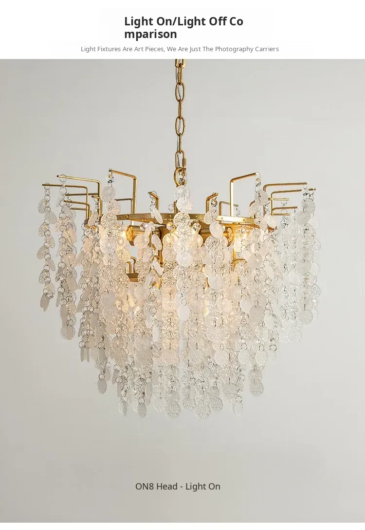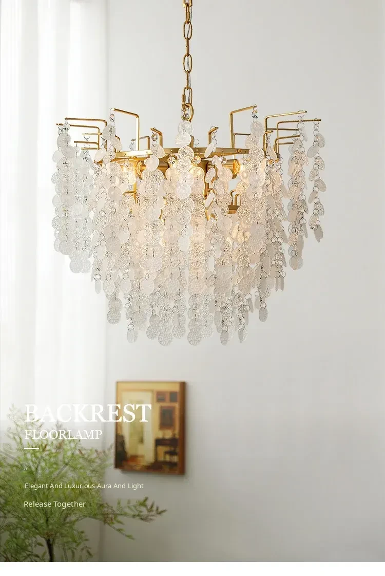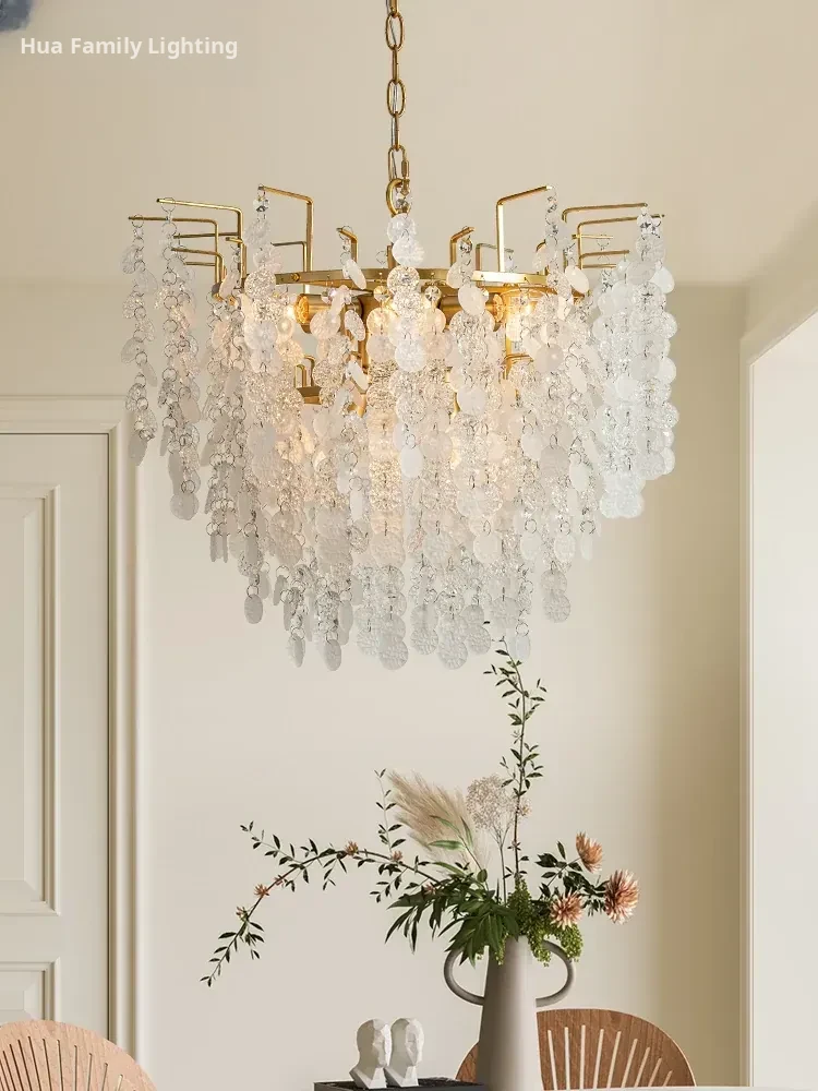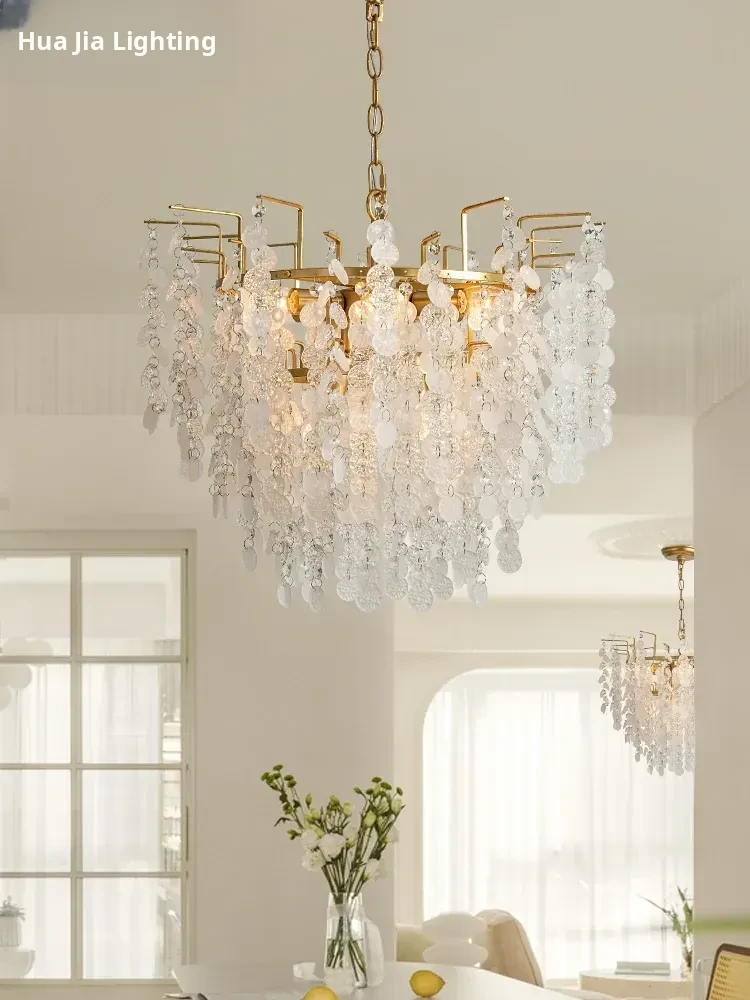 French Crystal Chandelier - Creamy Country Style Bell Pendant Light, Elegant Glass Fixture for Living Room and Dining Room, American Vintage Palace Lighting