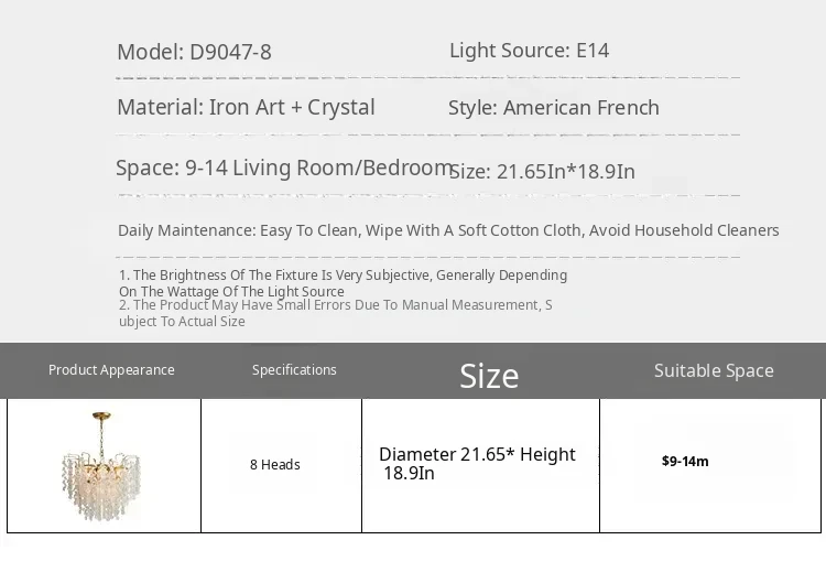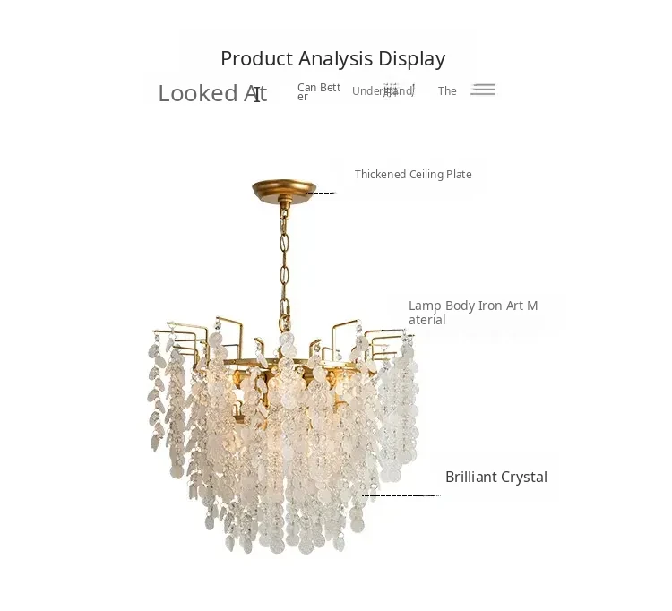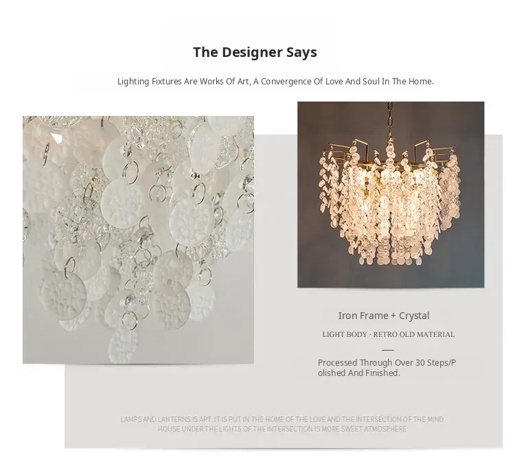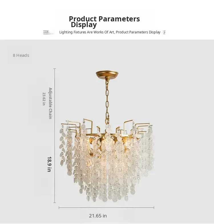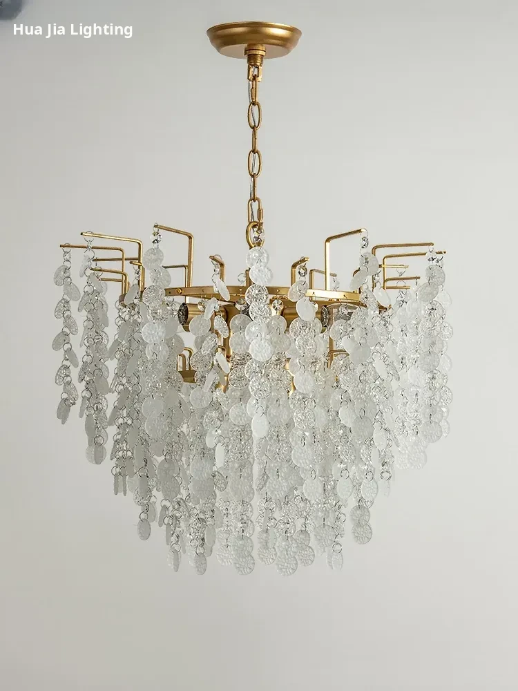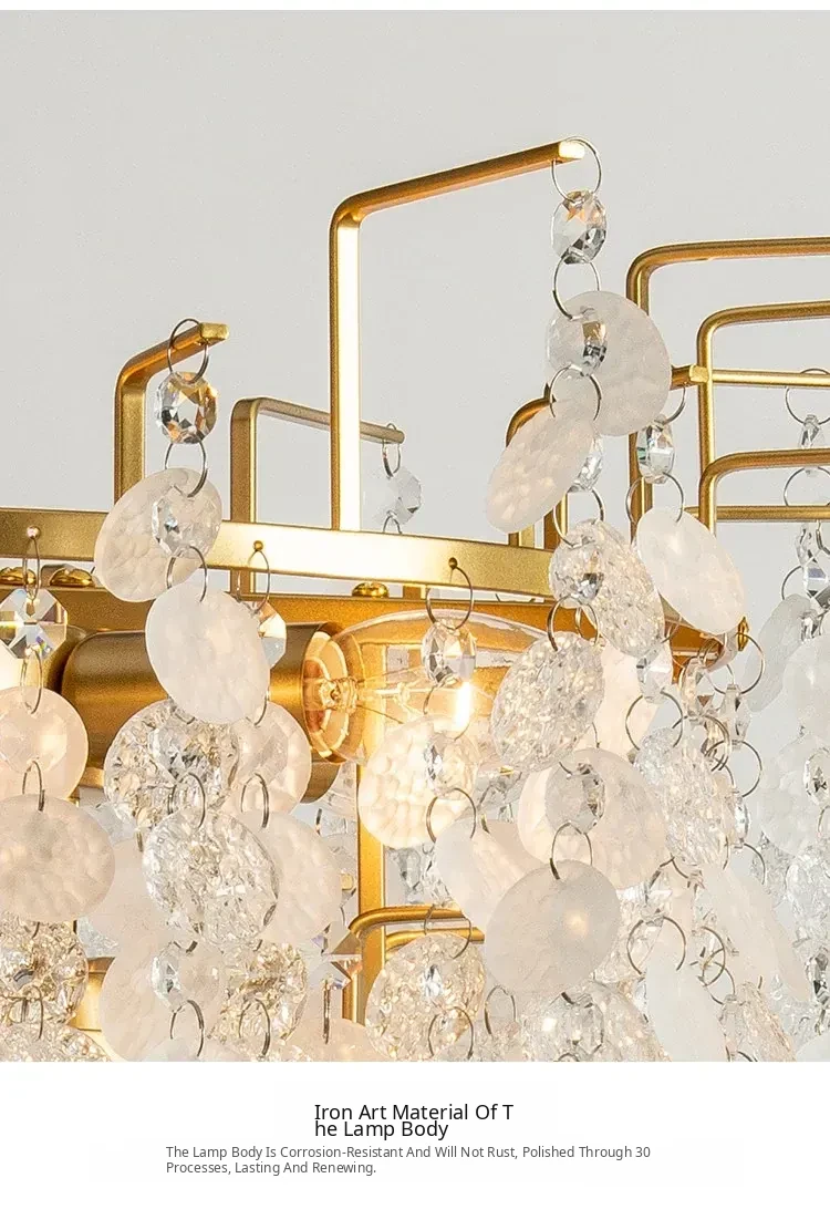 French Crystal Chandelier - Creamy Country Style Bell Pendant Light, Elegant Glass Fixture for Living Room and Dining Room, American Vintage Palace Lighting