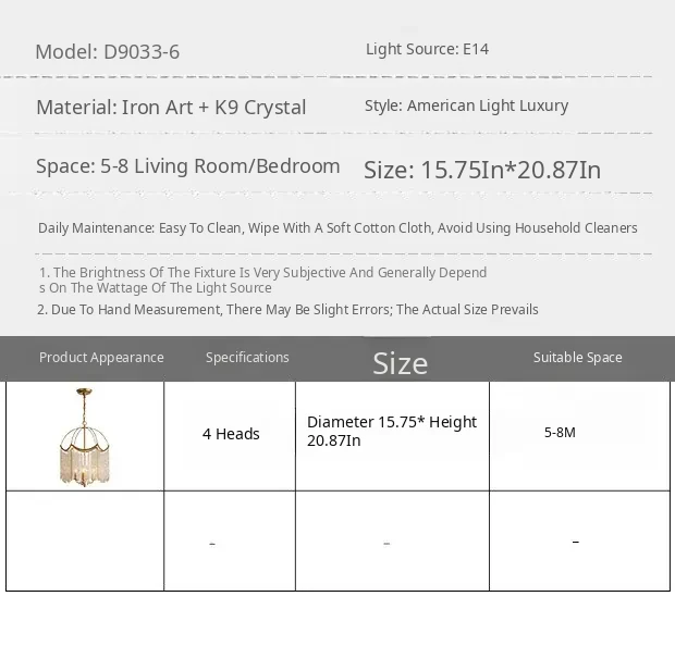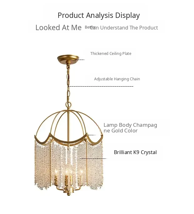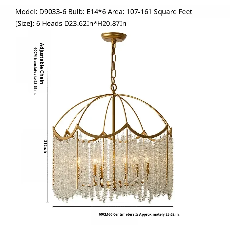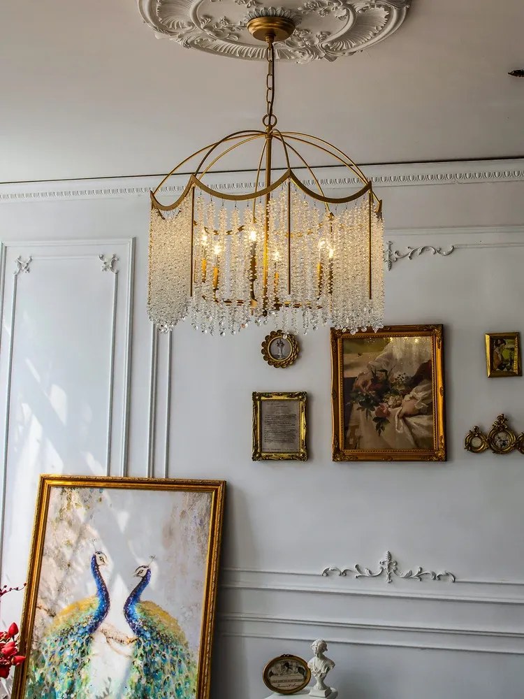 French Crystal Chandelier for Bedroom - Stylish American Retro Designer Tassel Art Crystal Lighting for Dining Room - Elevate Your Space with Elegance and Luxury