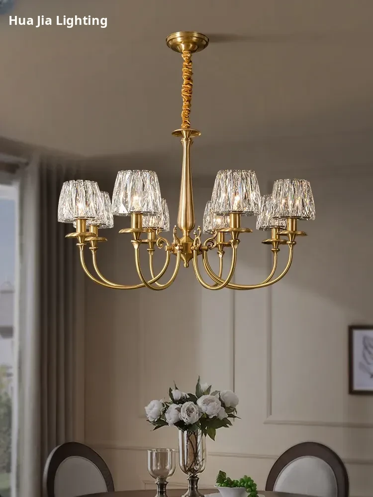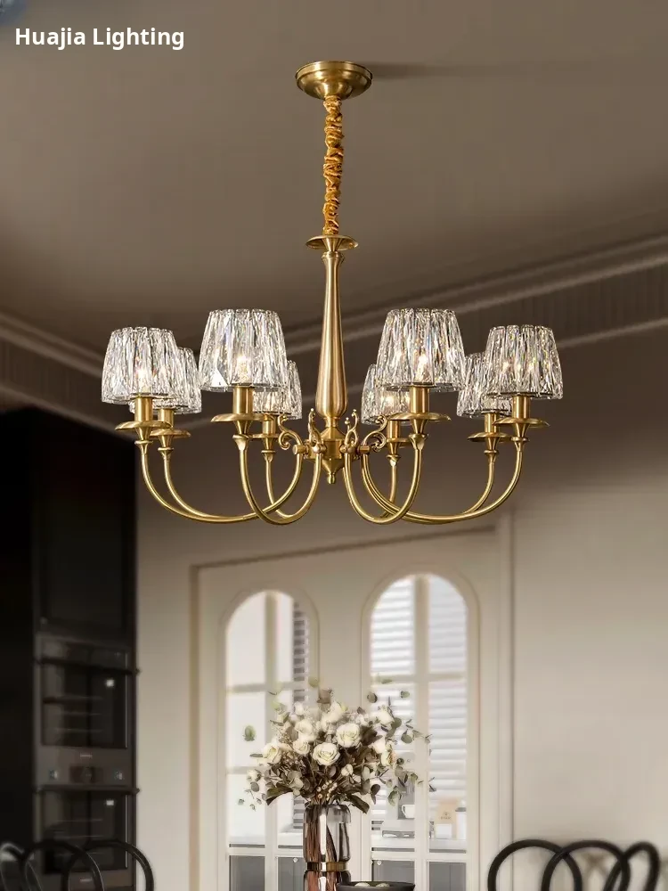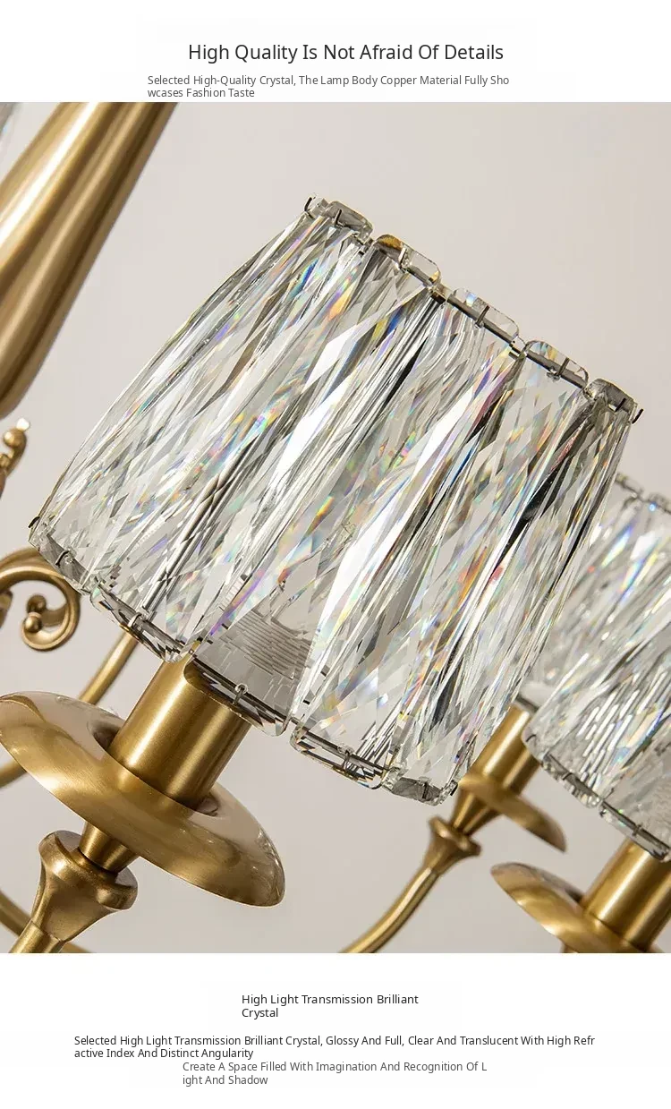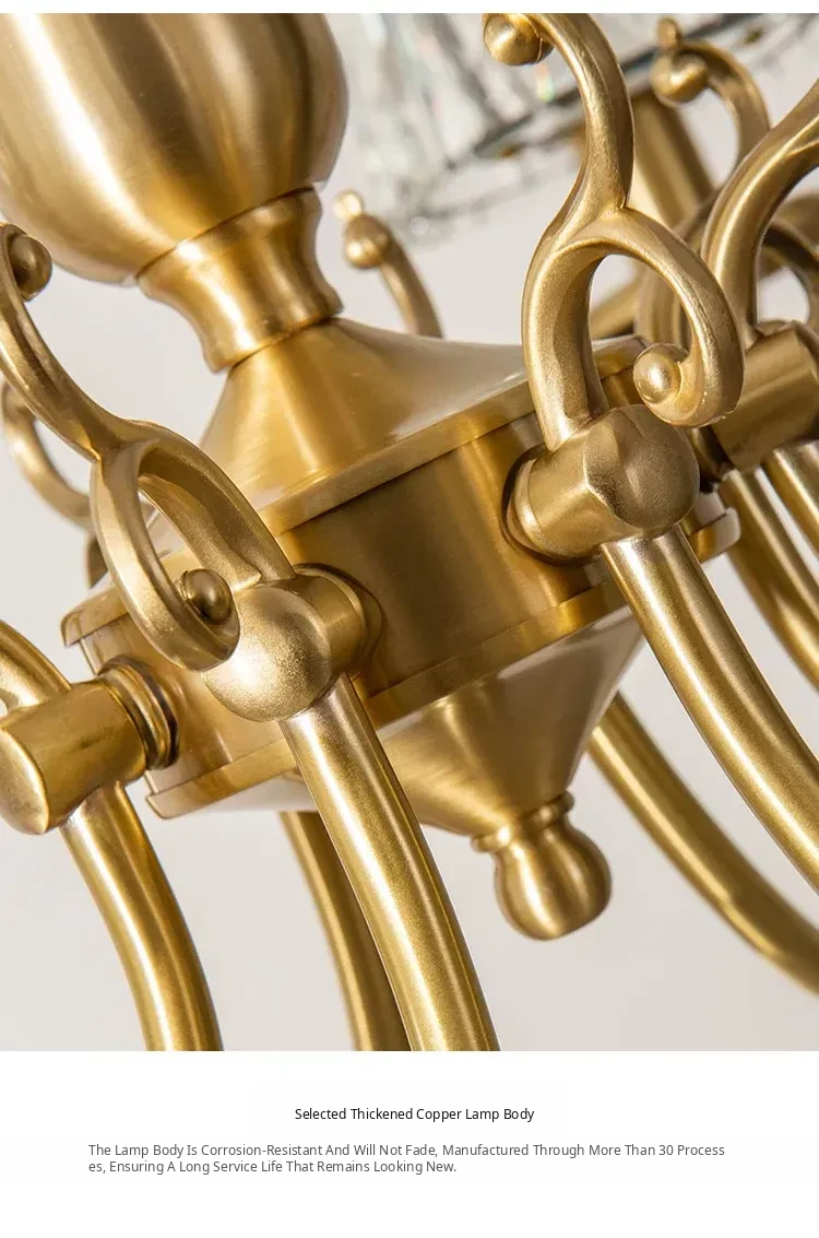 French Crystal Chandelier for Living Room and Dining Room - Vintage American Style, Pure Copper, Luxurious Design by Top Designers, Starry Bedroom Lighting