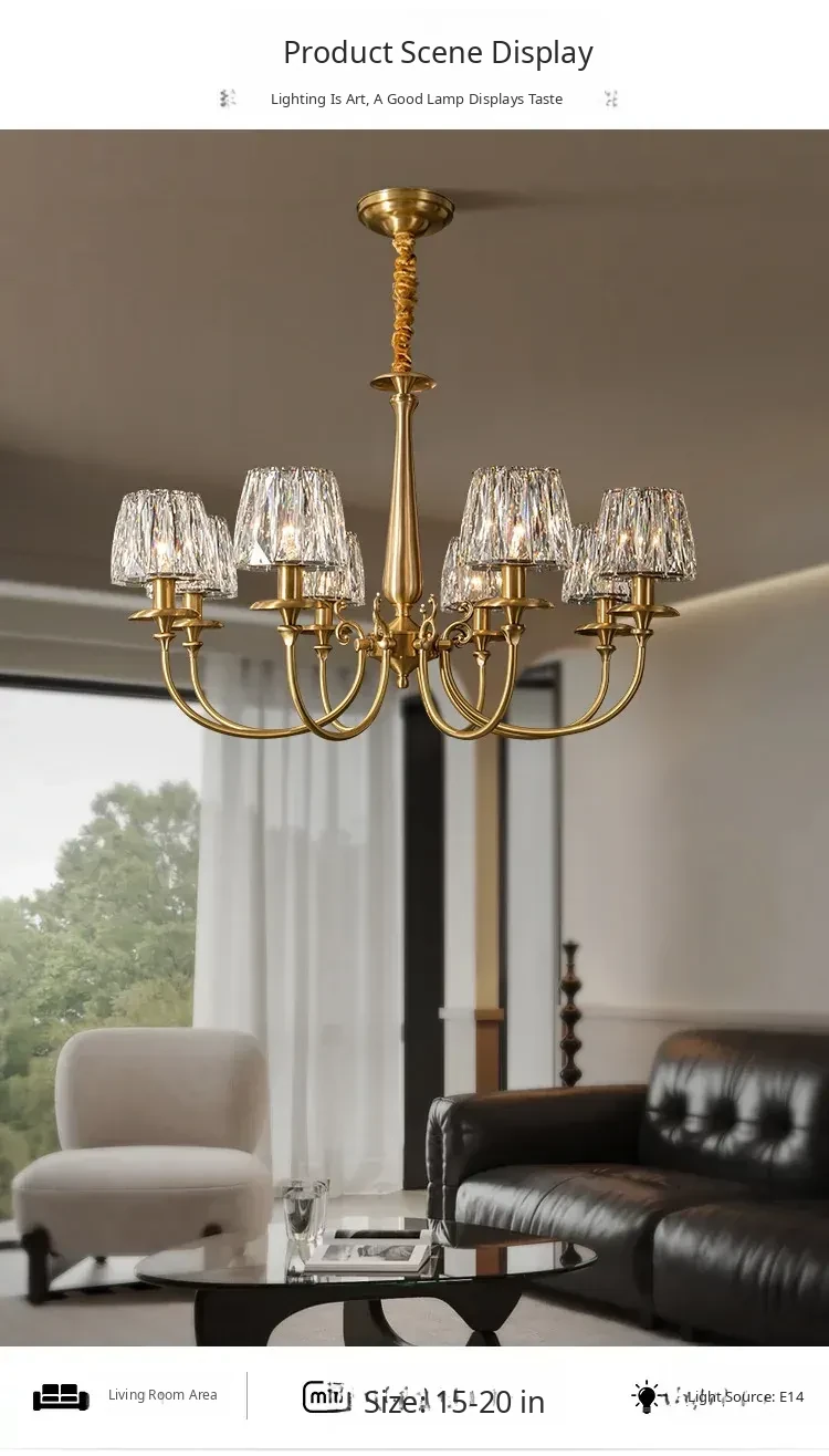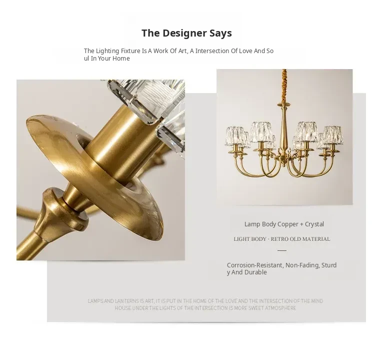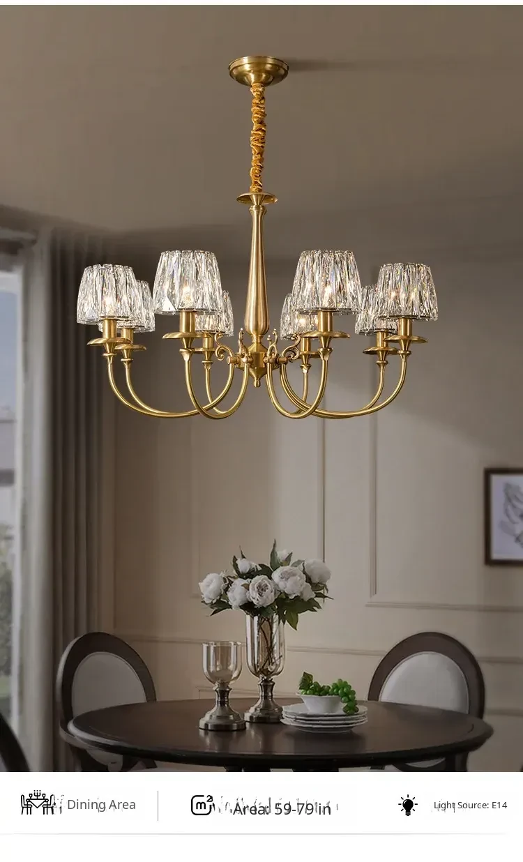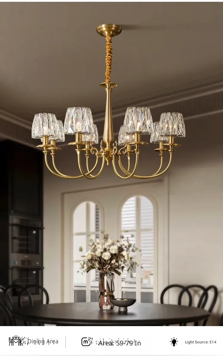 French Crystal Chandelier for Living Room and Dining Room - Vintage American Style, Pure Copper, Luxurious Design by Top Designers, Starry Bedroom Lighting