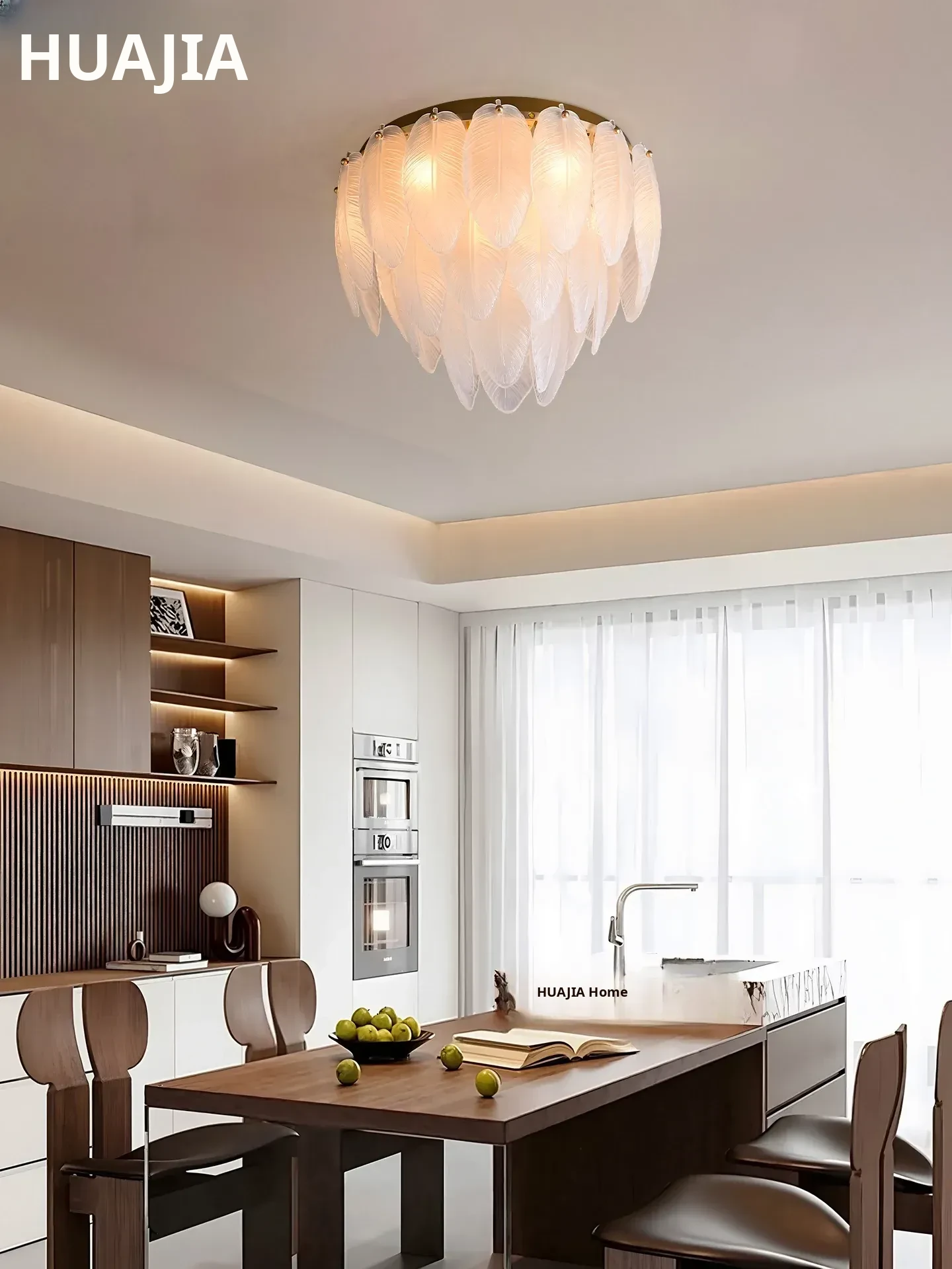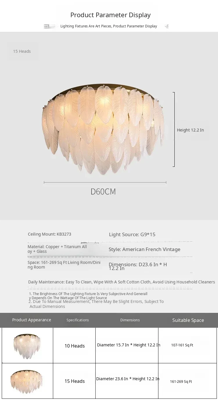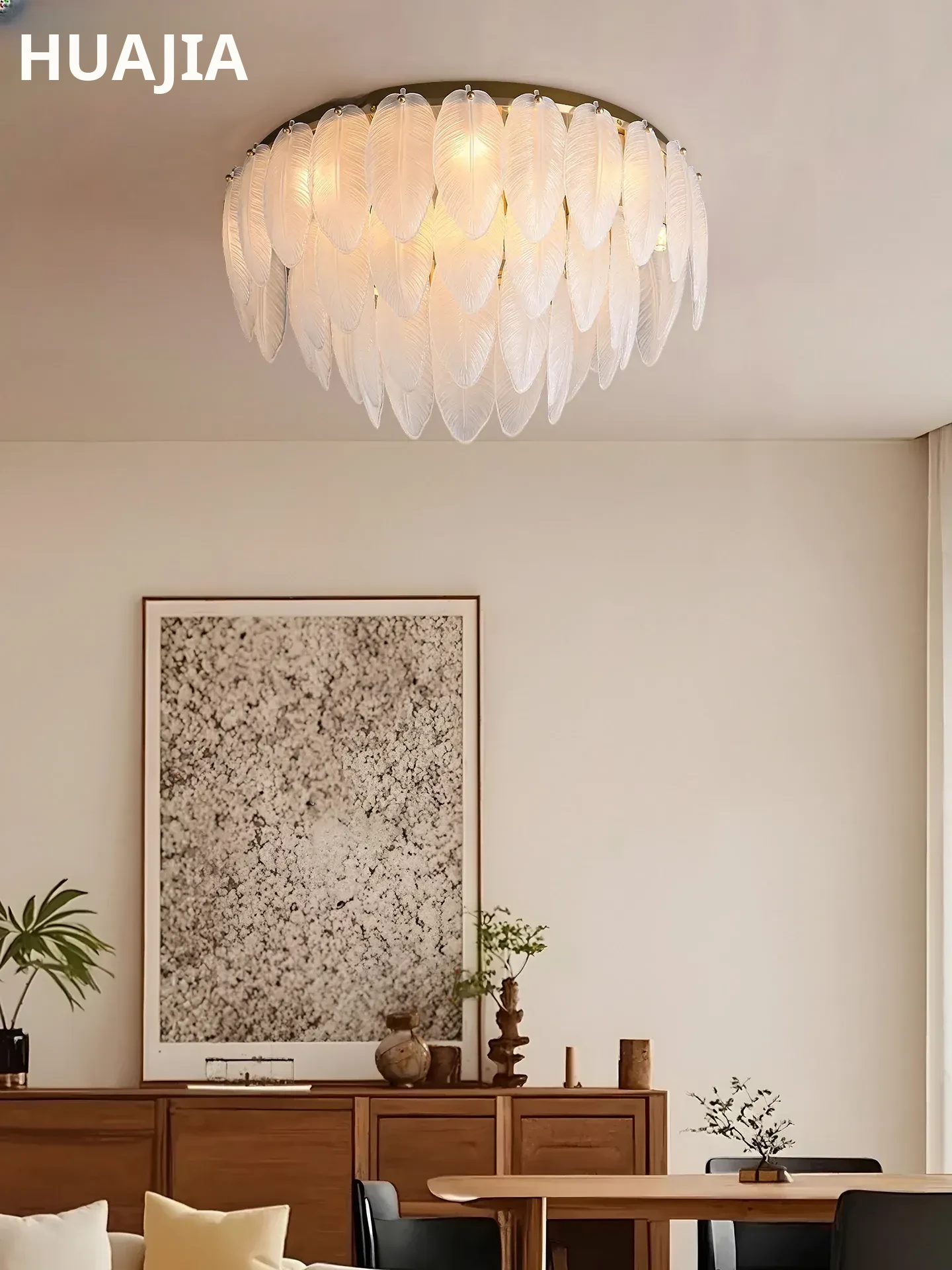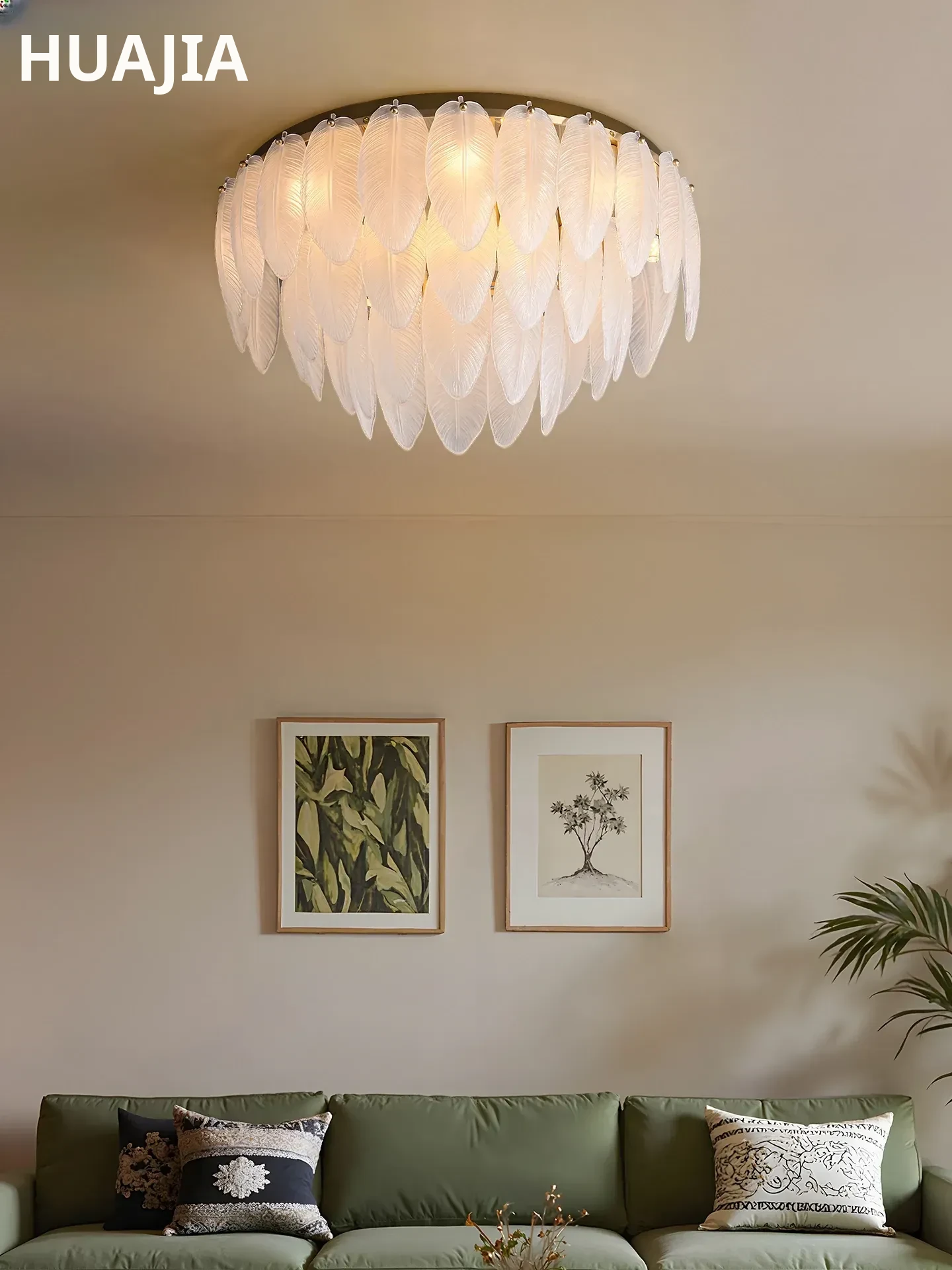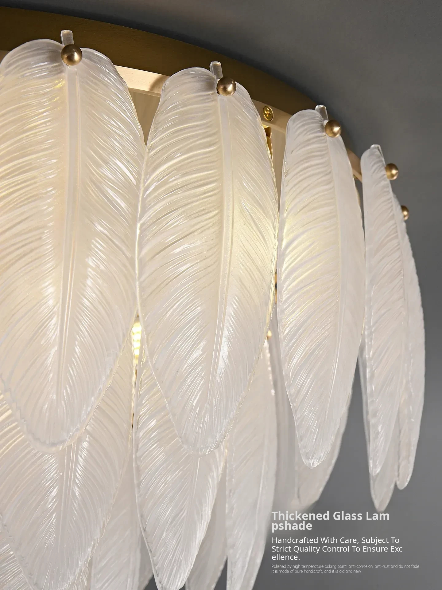 French Luxury Feather Ceiling Light - All-Copper Ambient Lighting for Bedroom, Study, and Dining Room - Elegant Glass Ceiling Fixture