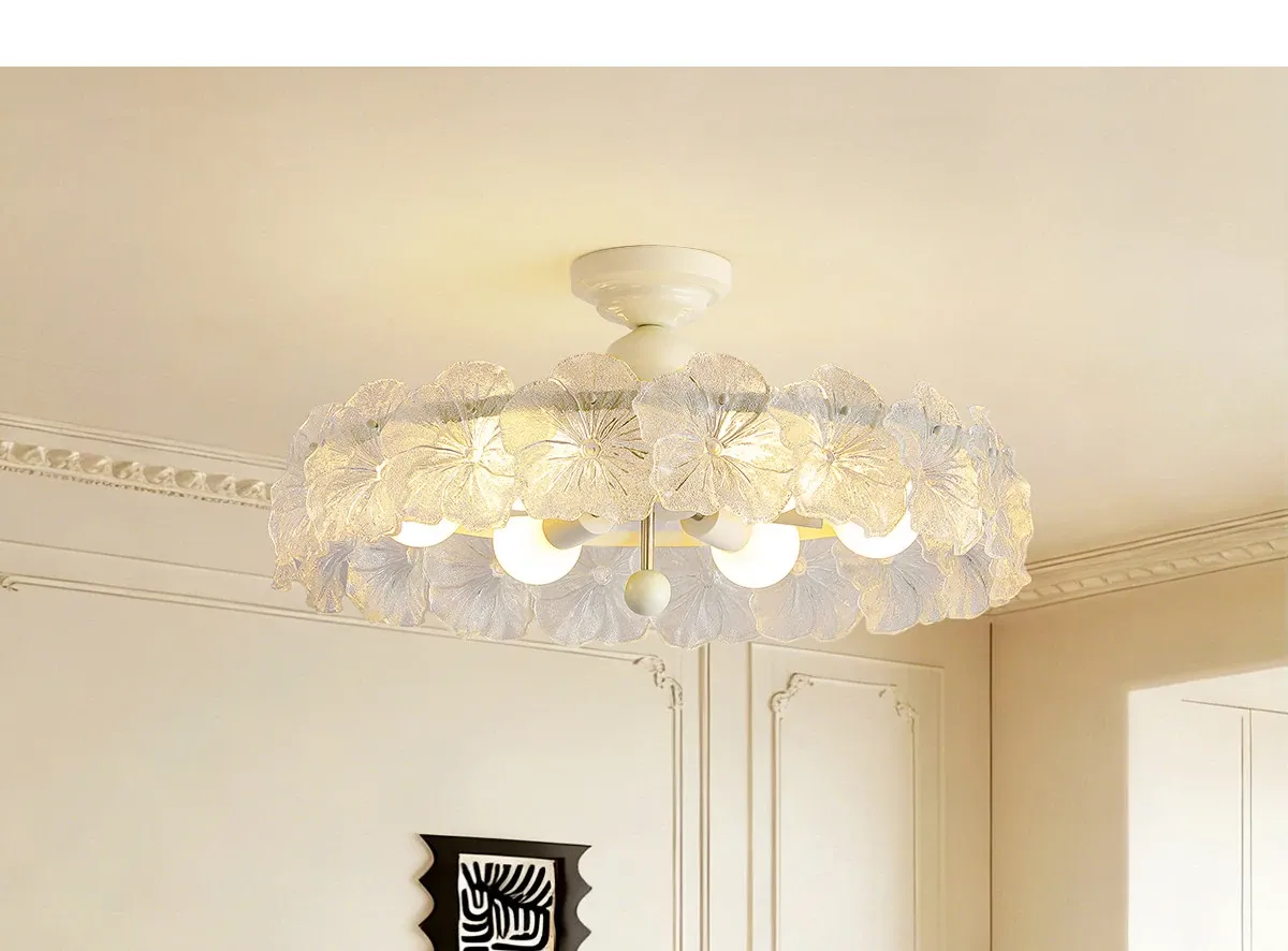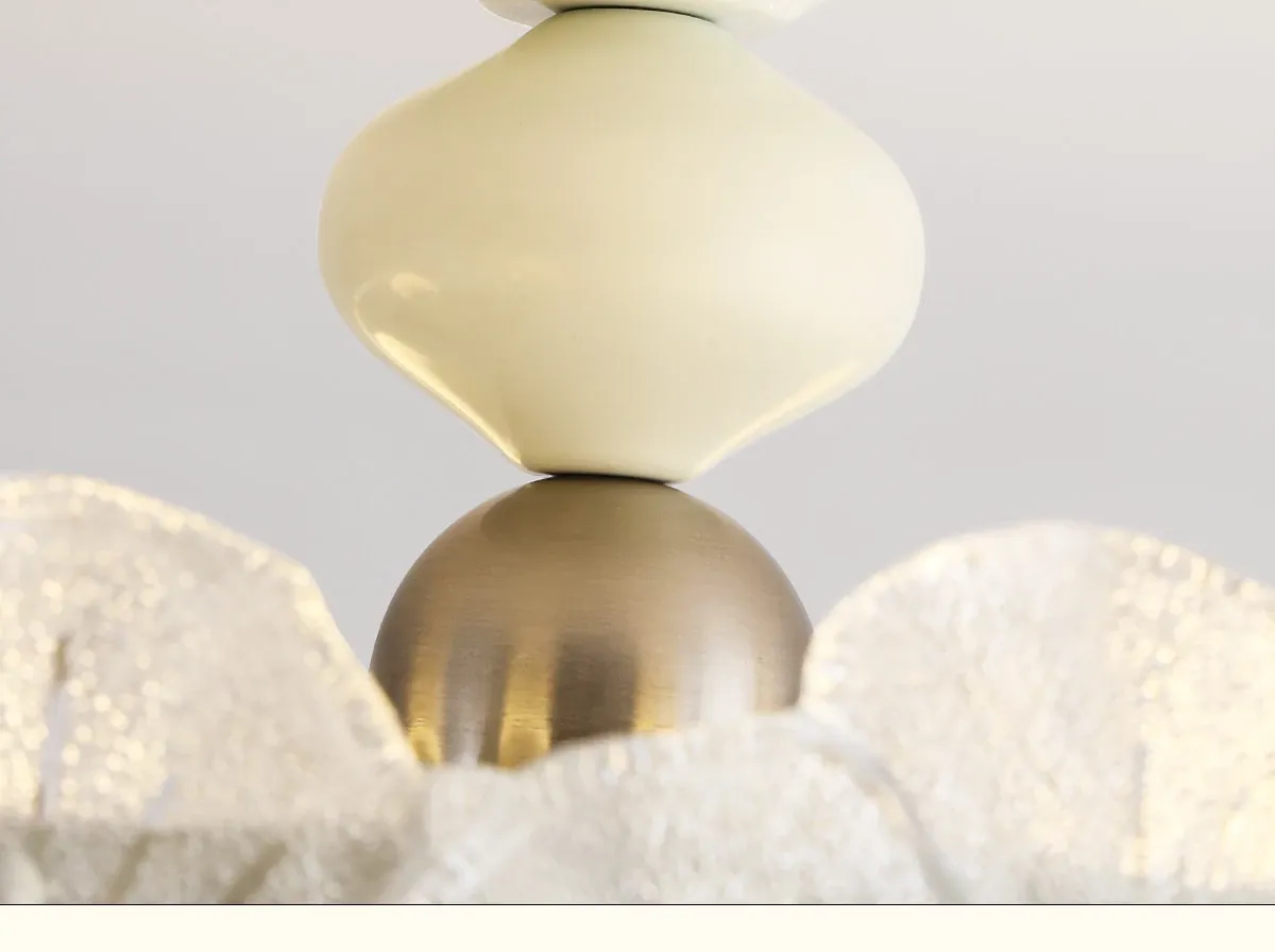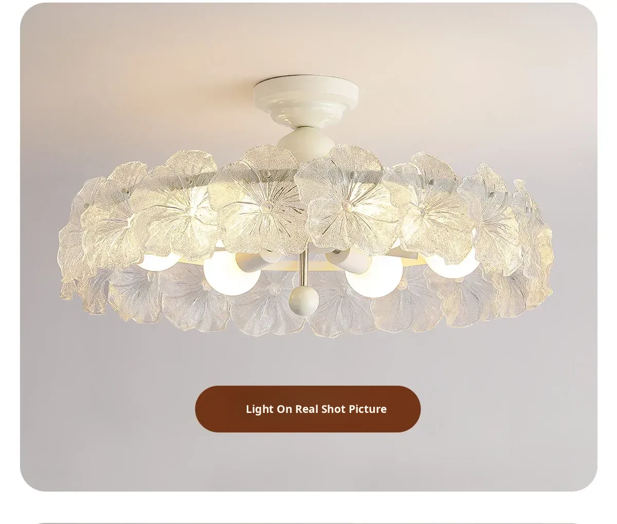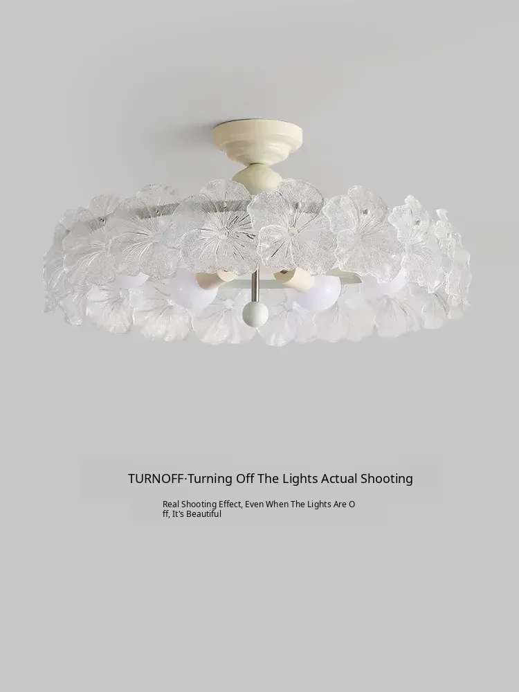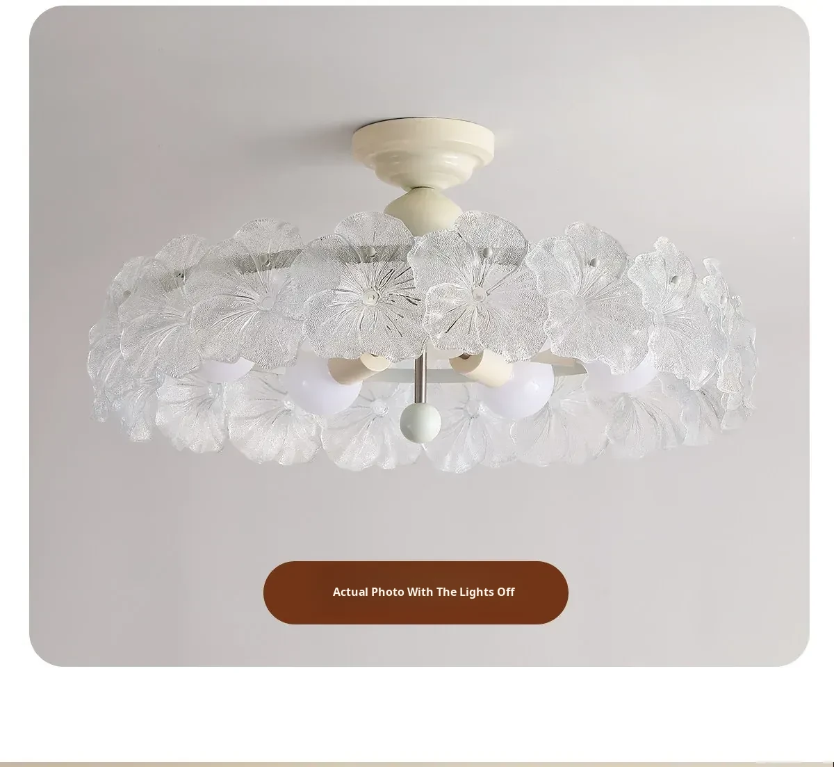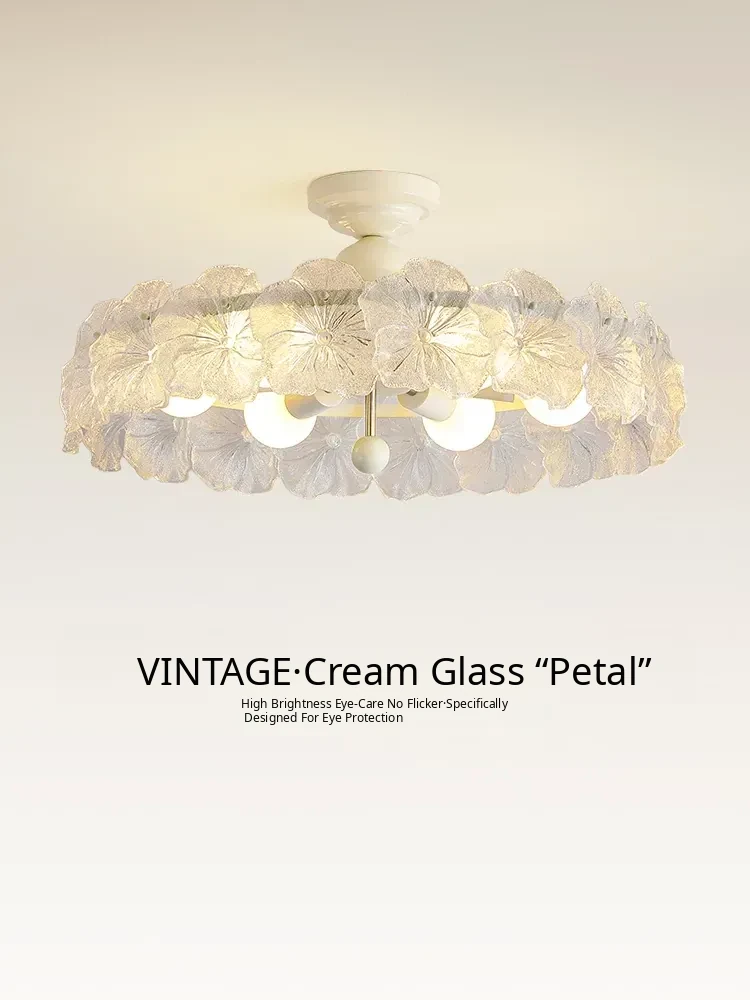 French Minimalist Luxury Ceiling Light - Creamy Petal Glass Design for Stylish Bedrooms, Dining Rooms, and Studies