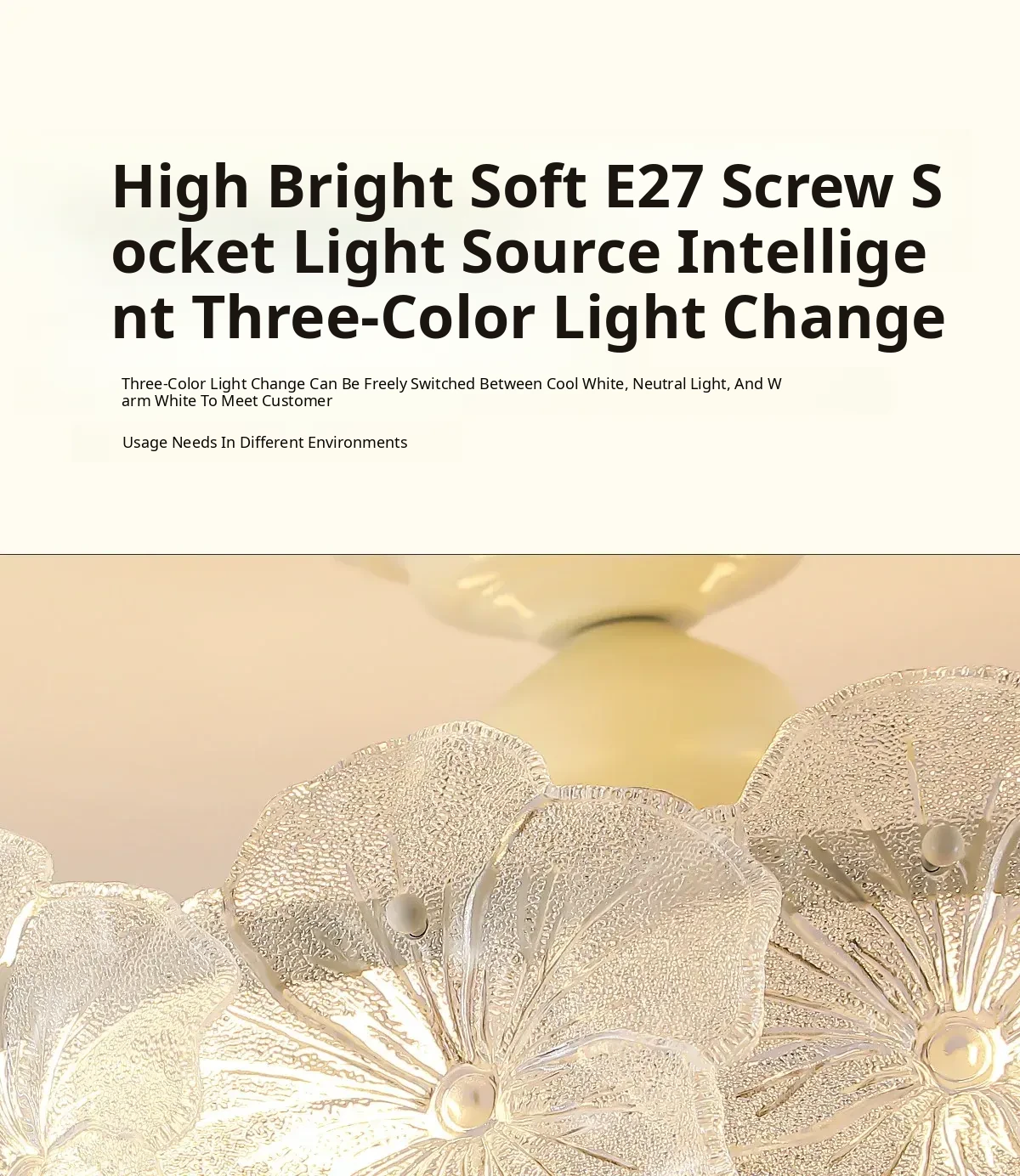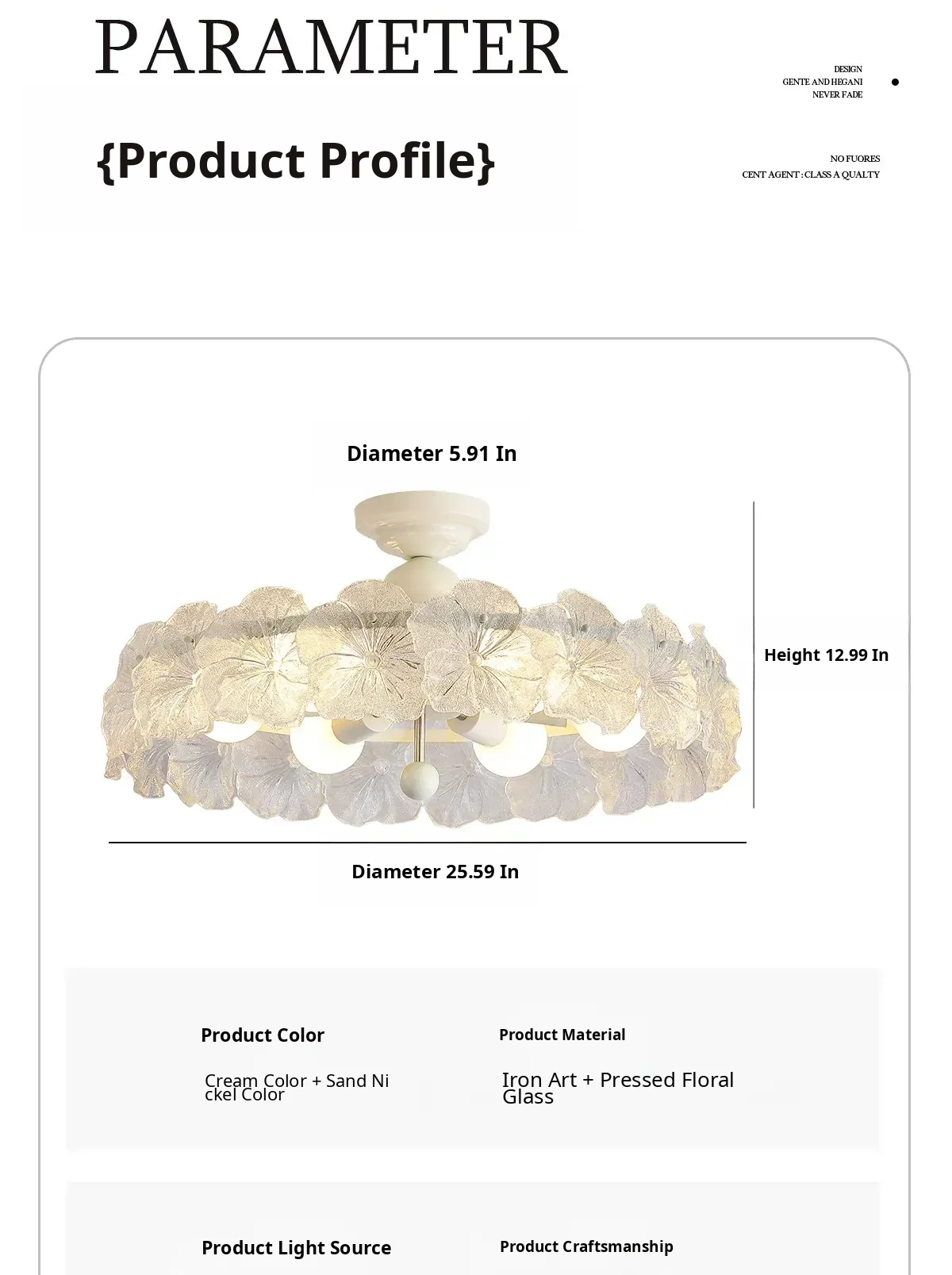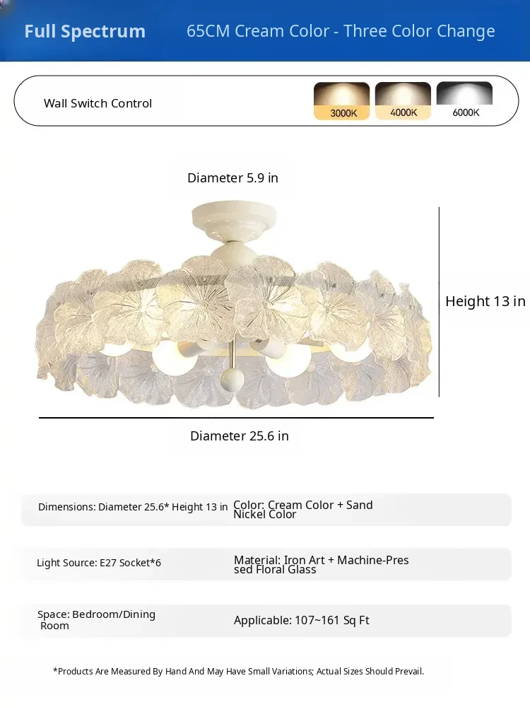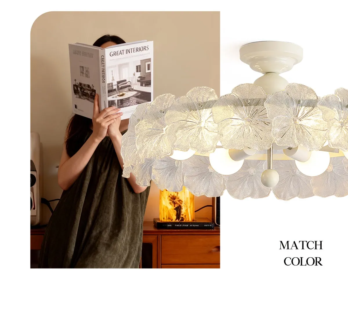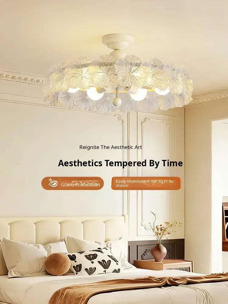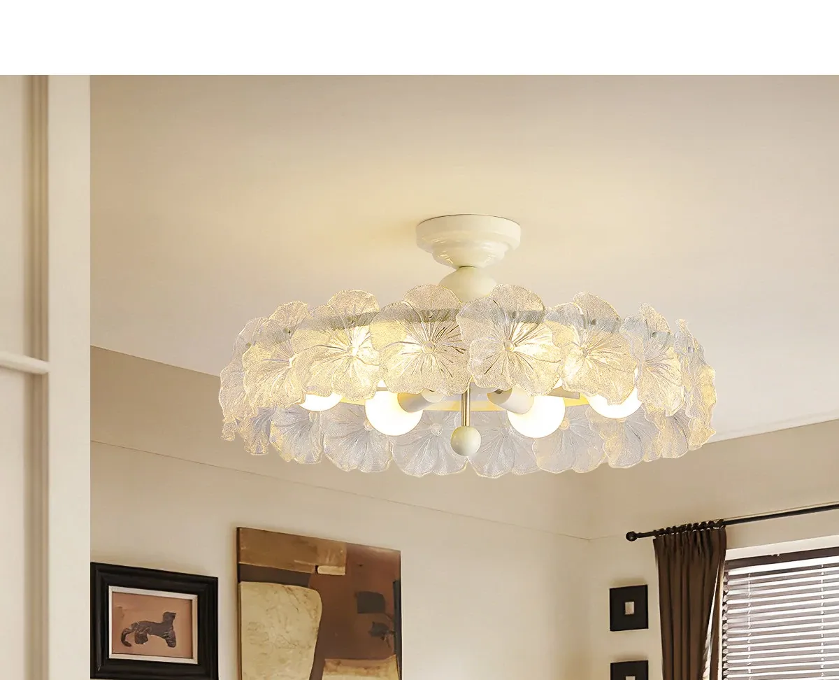 French Minimalist Luxury Ceiling Light - Creamy Petal Glass Design for Stylish Bedrooms, Dining Rooms, and Studies