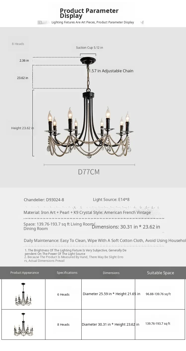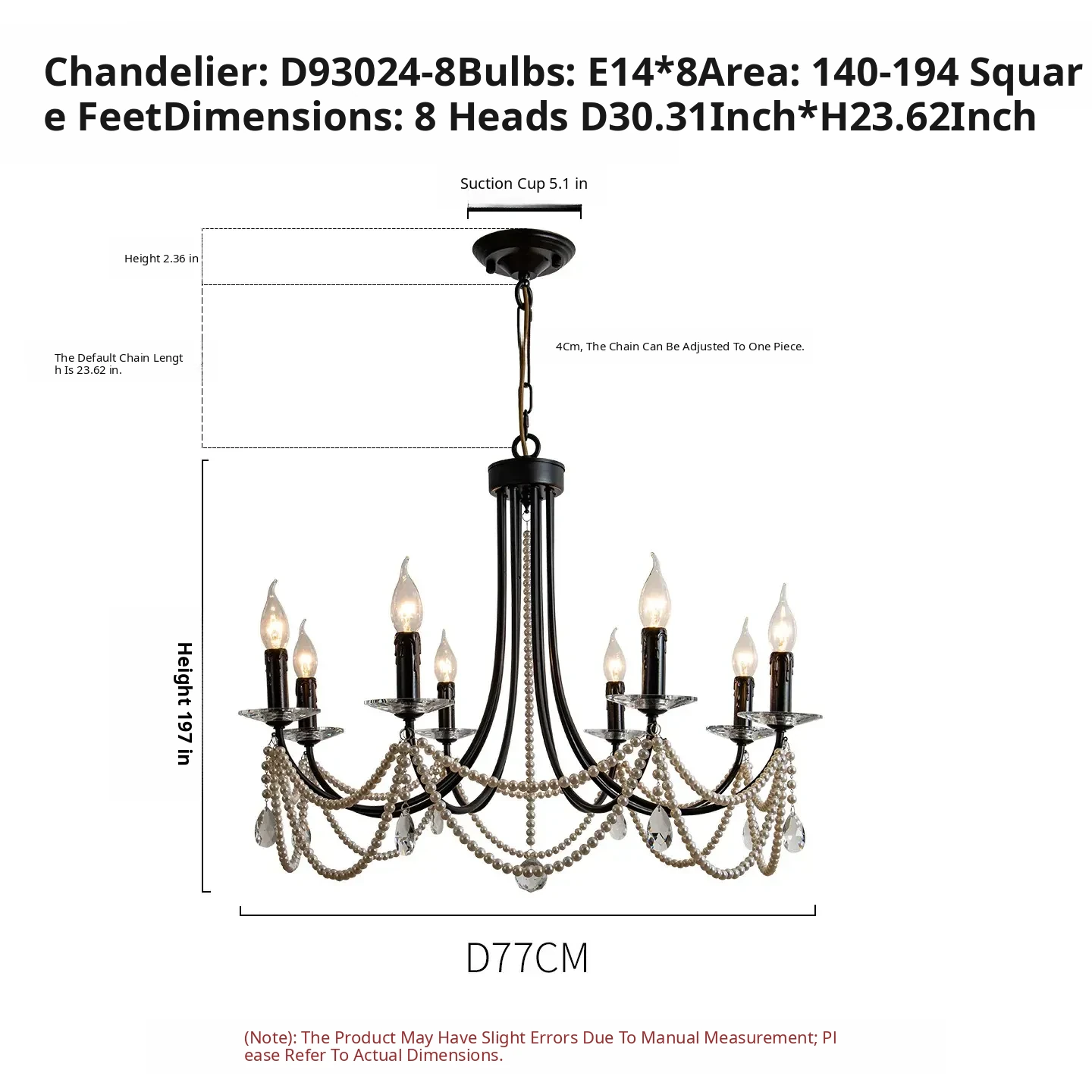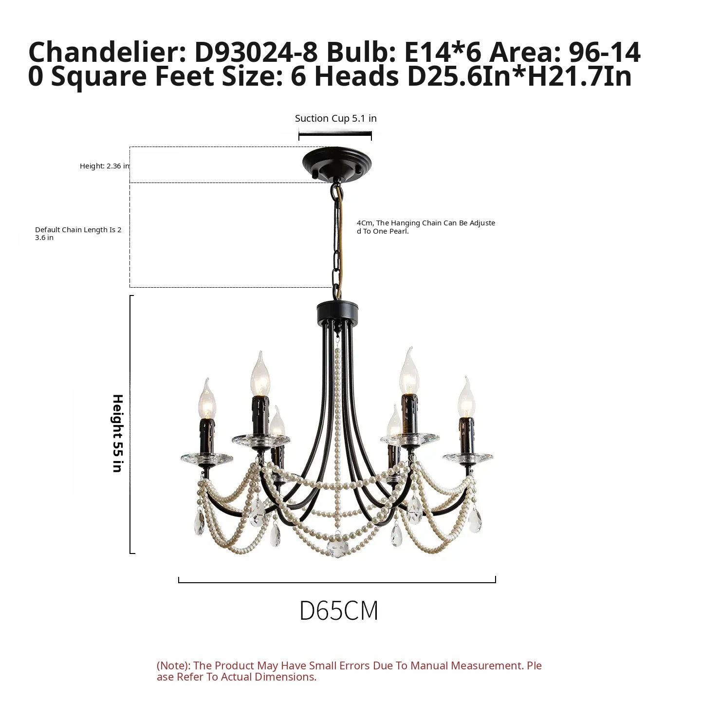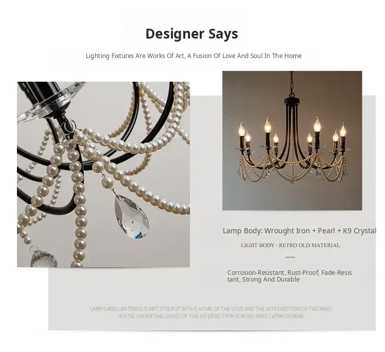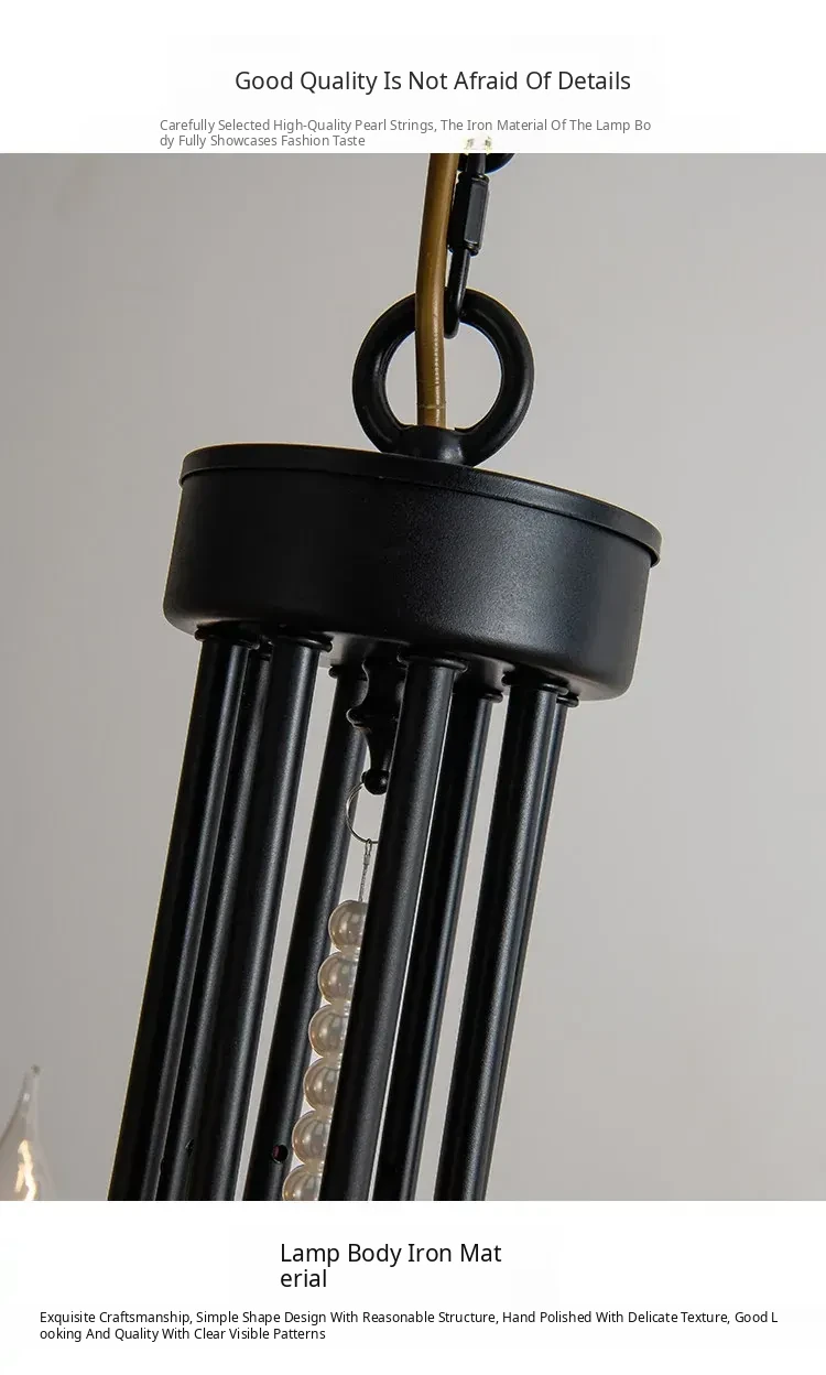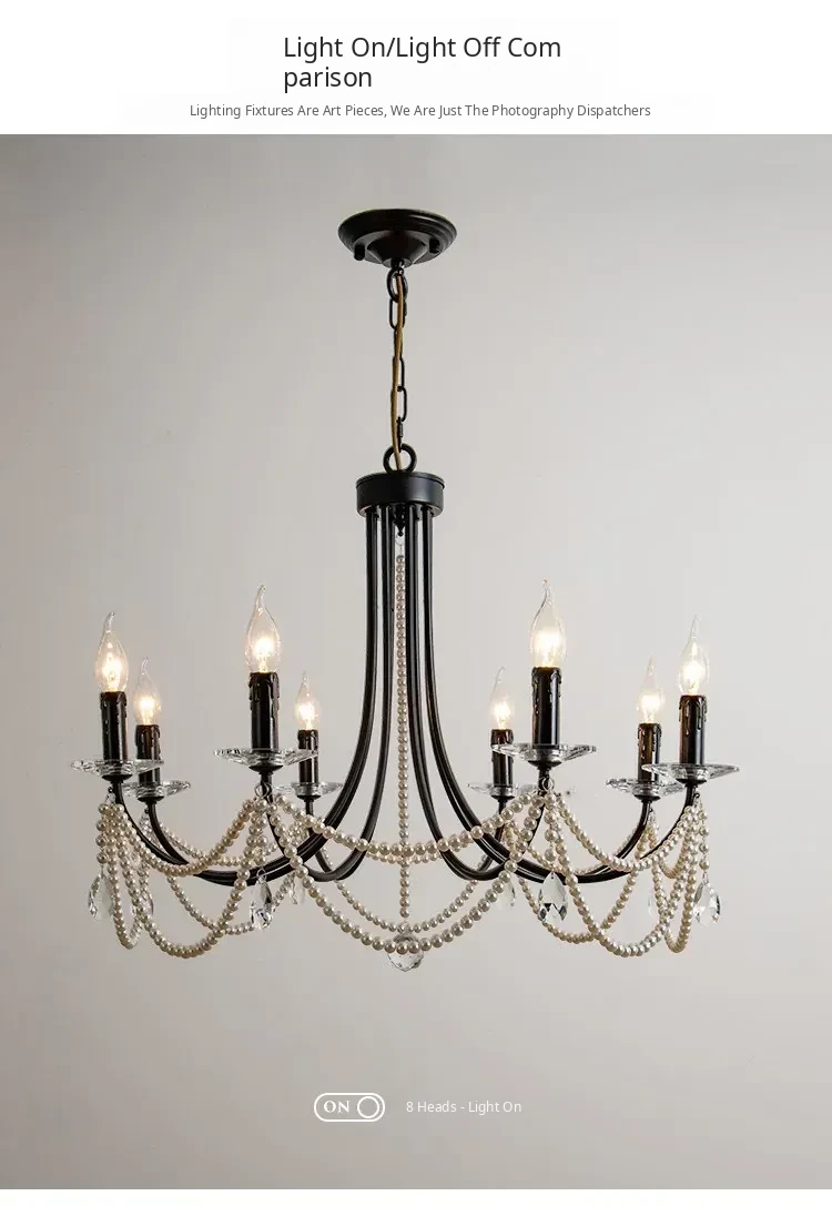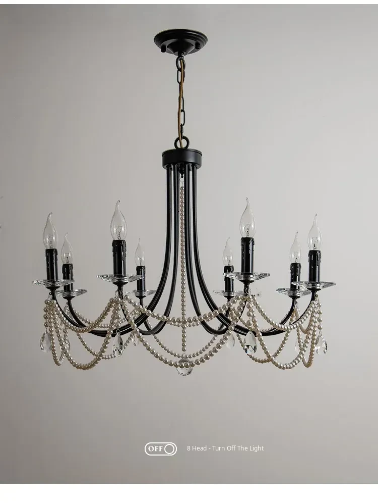 French Pearl Chandelier - Elegant Black Crystal Lighting for Living Room, Minimalist American Style Candle Lights for Bedroom and Dining Room - Perfect for Creating a Luxurious Atmosphere