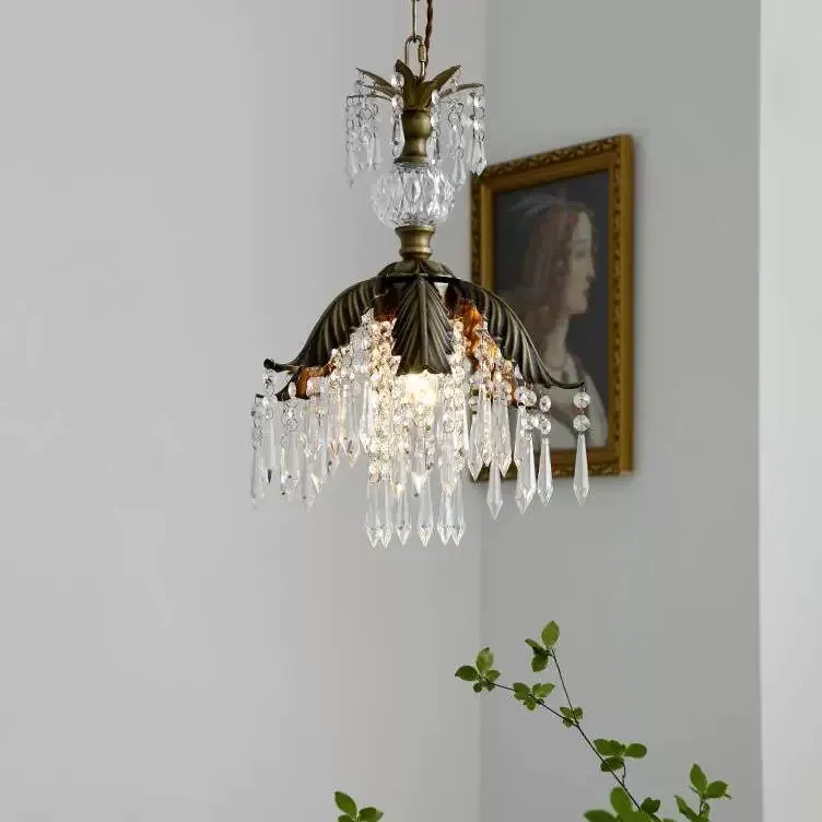 French Style Elegant Mini Chandelier - Modern Minimalist Bedroom Bedside Crystal Light, Chic American-Style Pendant for Dining Room and Bar