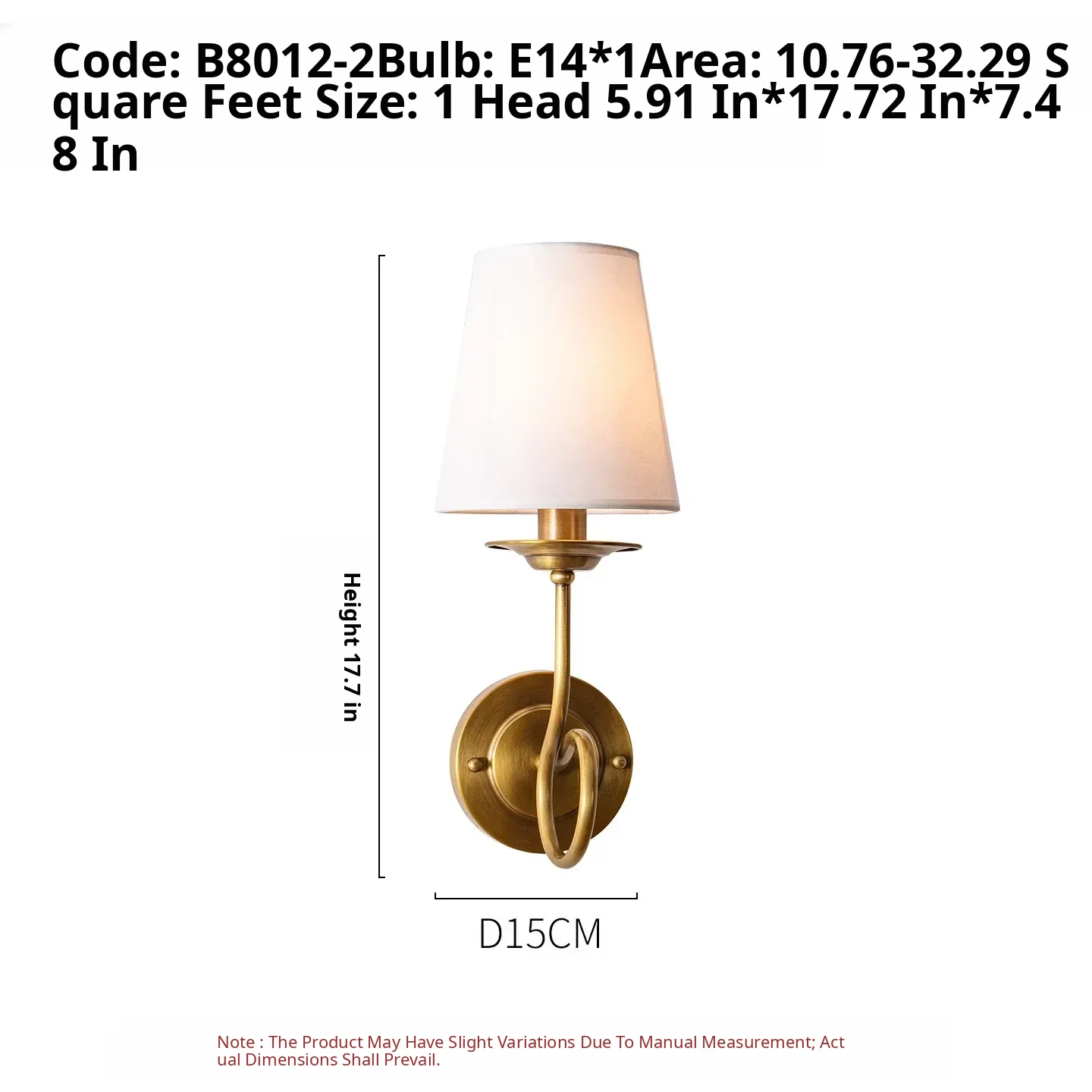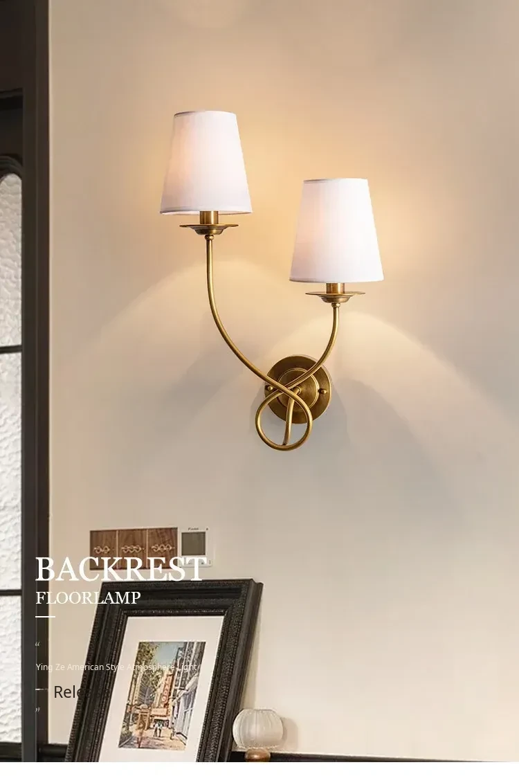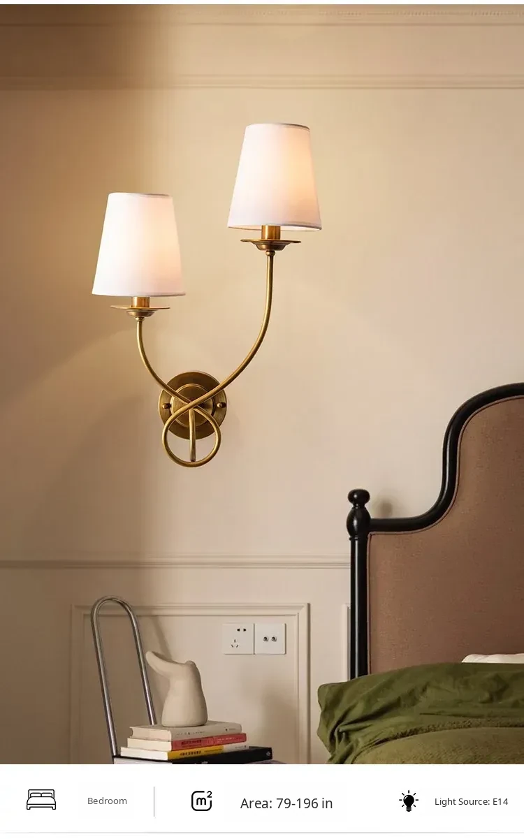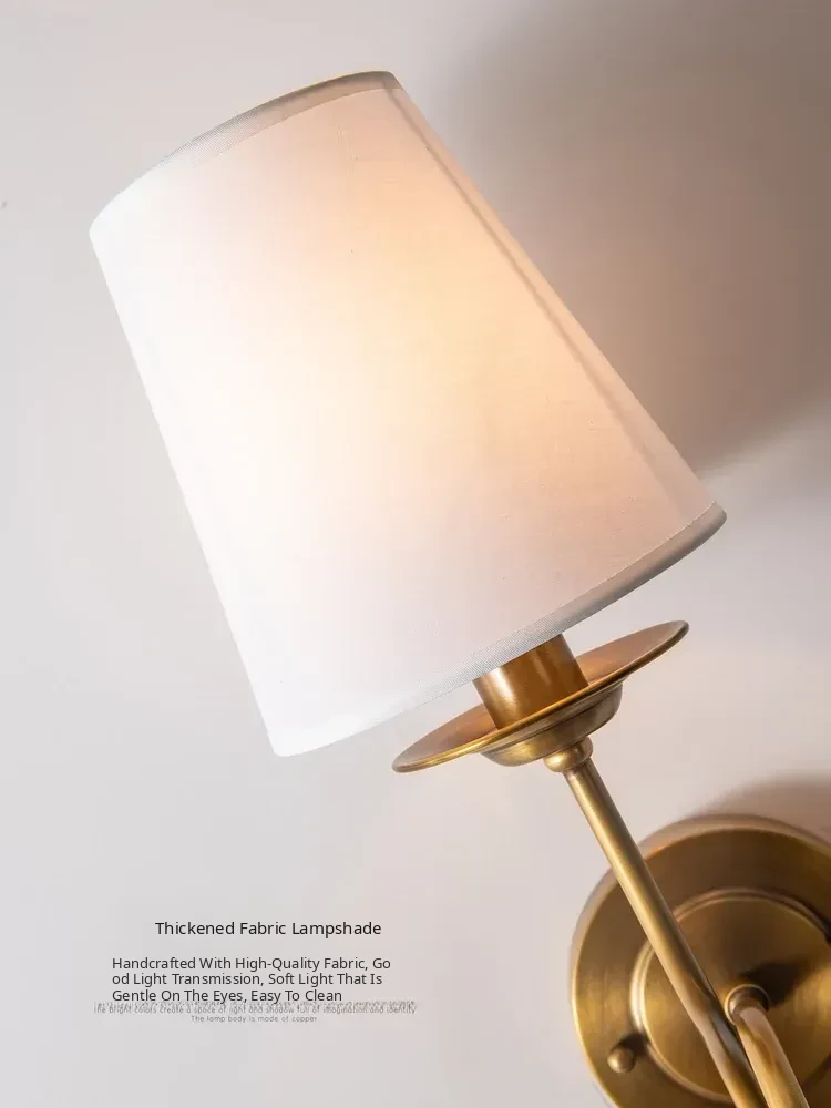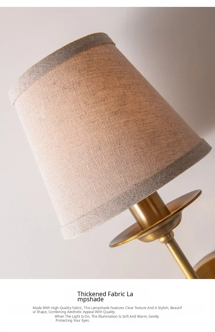 French Style Living Room Wall Sconces - All-Copper Vintage American Bedroom Bedside Lamps, Cozy and Romantic Fabric Lighting for Balcony