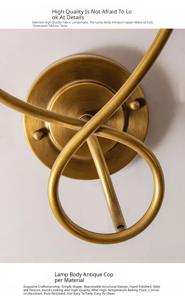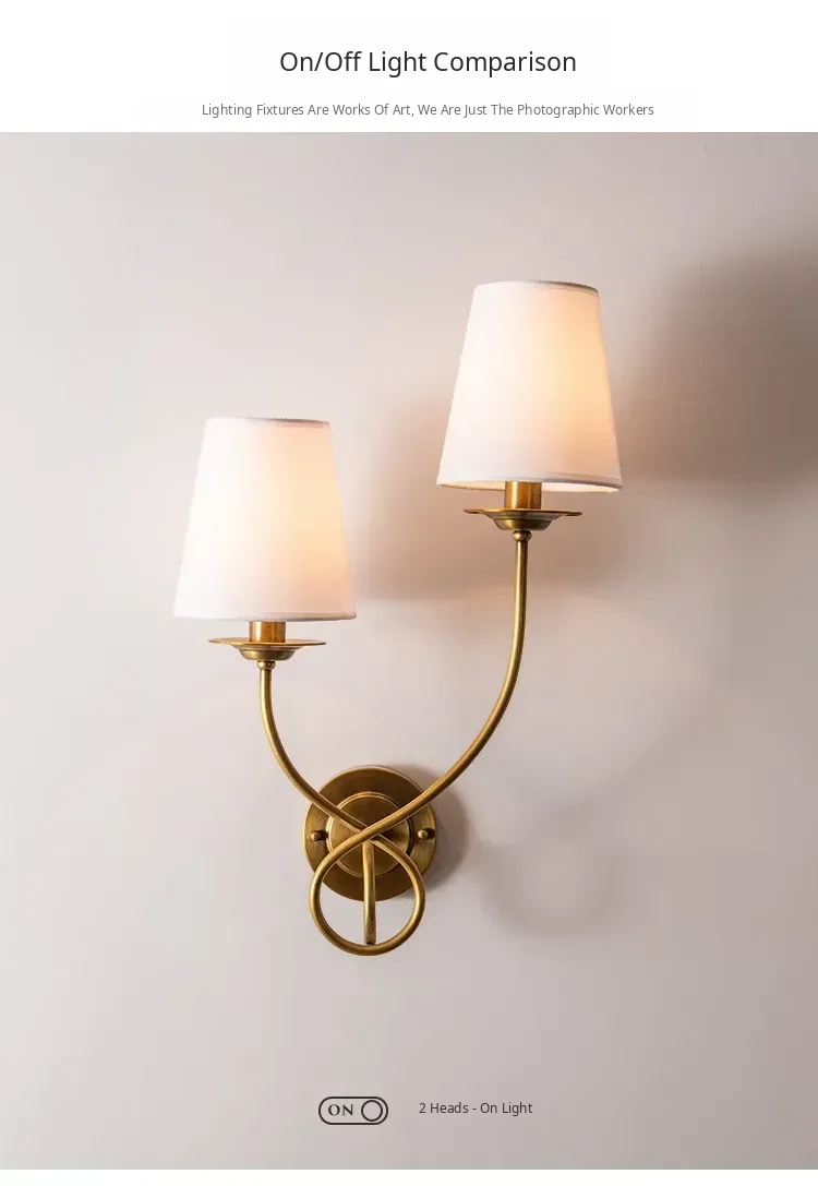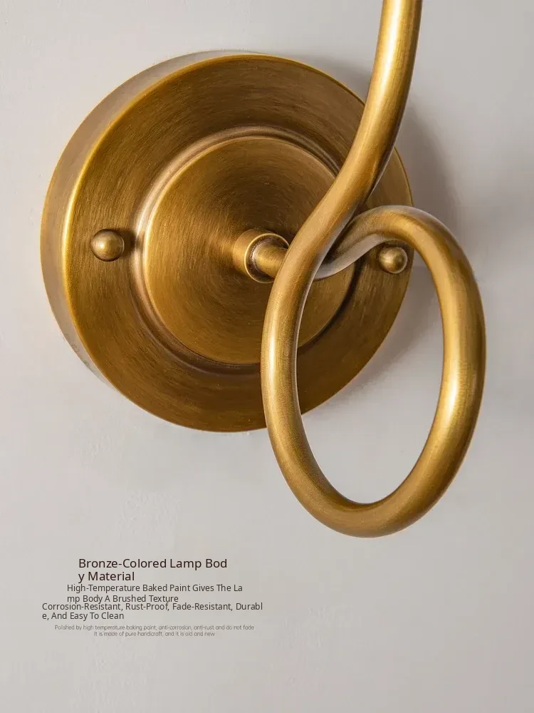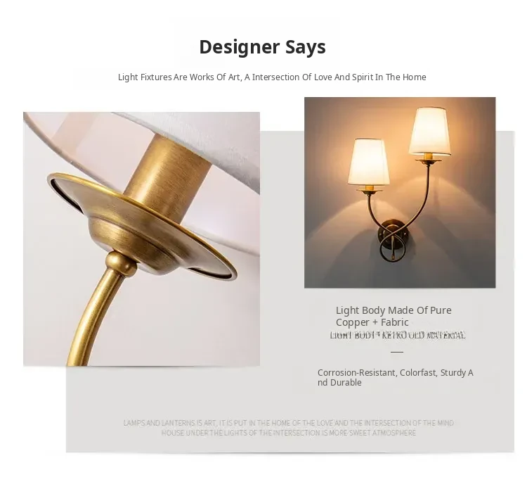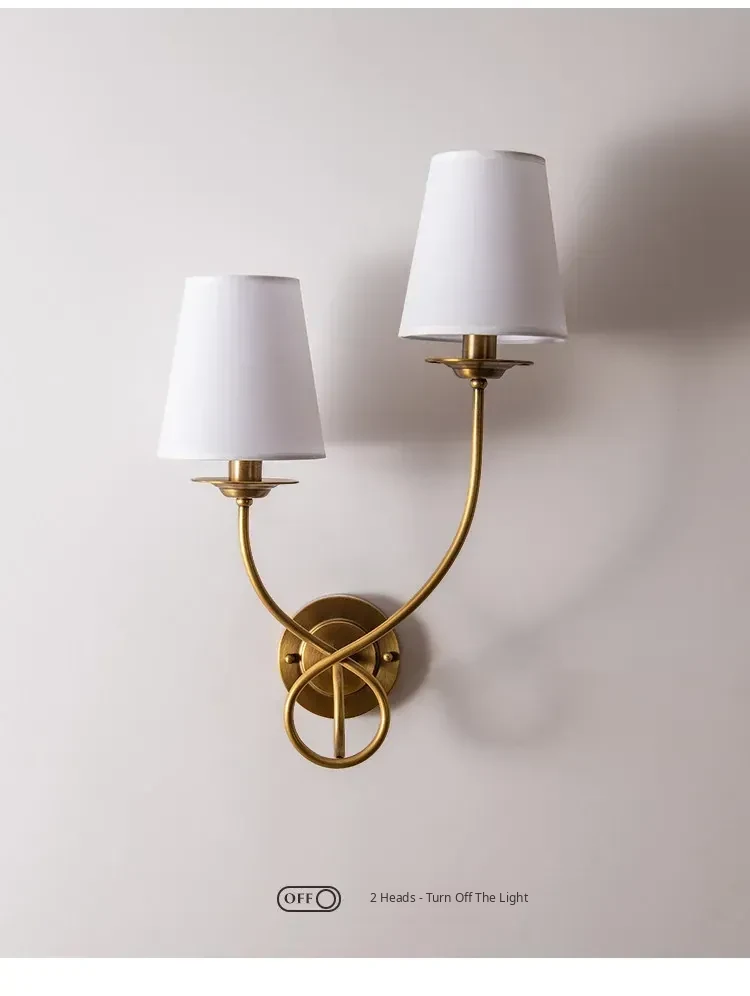 French Style Living Room Wall Sconces - All-Copper Vintage American Bedroom Bedside Lamps, Cozy and Romantic Fabric Lighting for Balcony