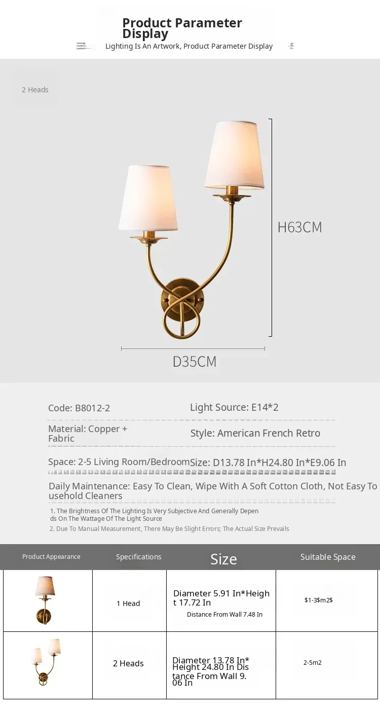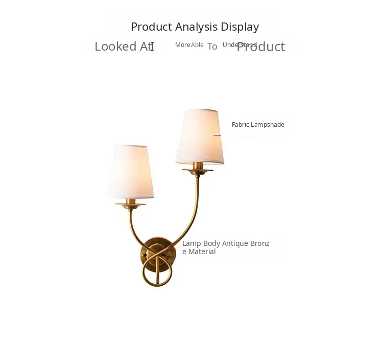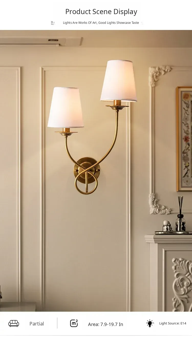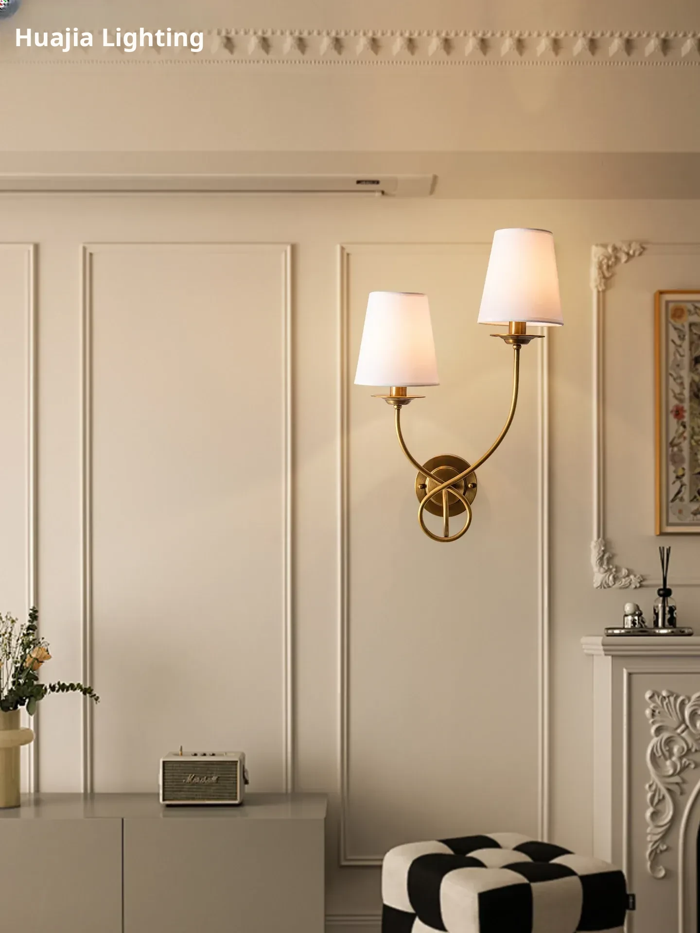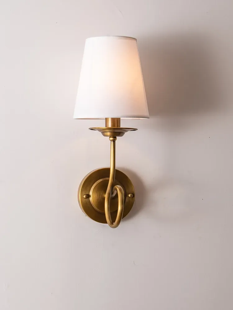 French Style Living Room Wall Sconces - All-Copper Vintage American Bedroom Bedside Lamps, Cozy and Romantic Fabric Lighting for Balcony