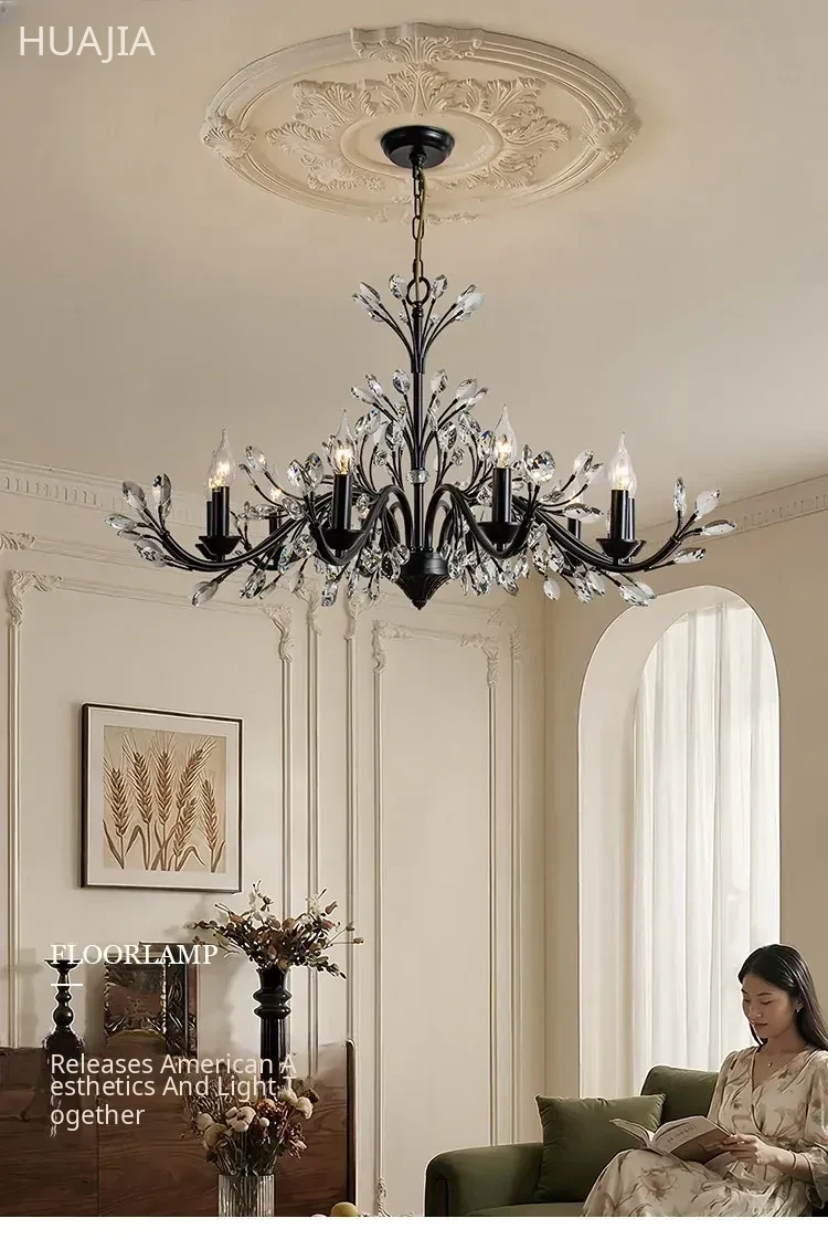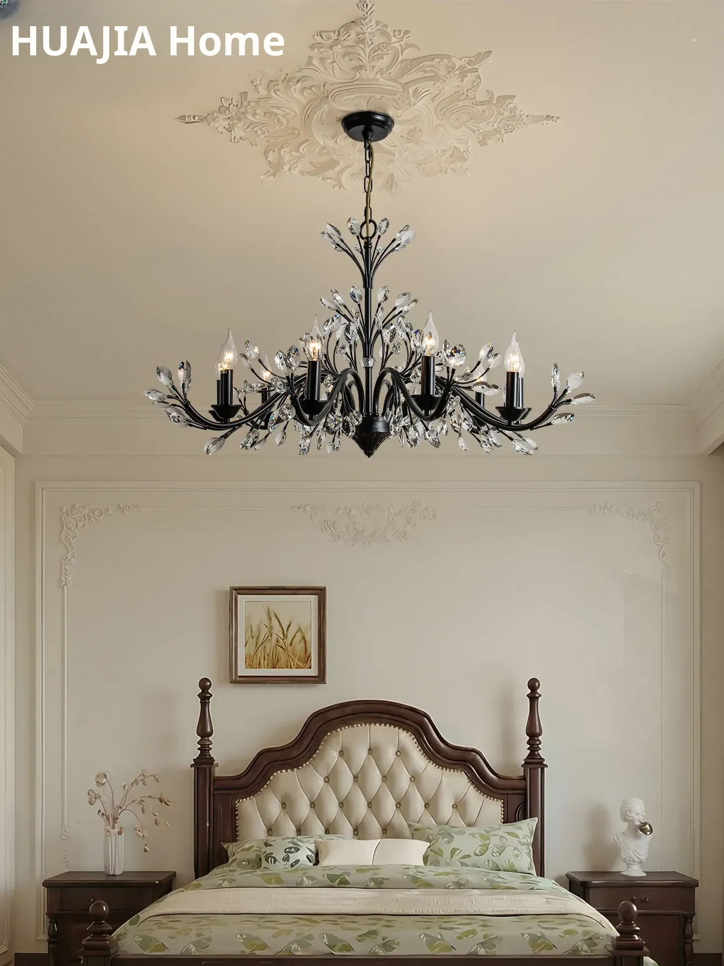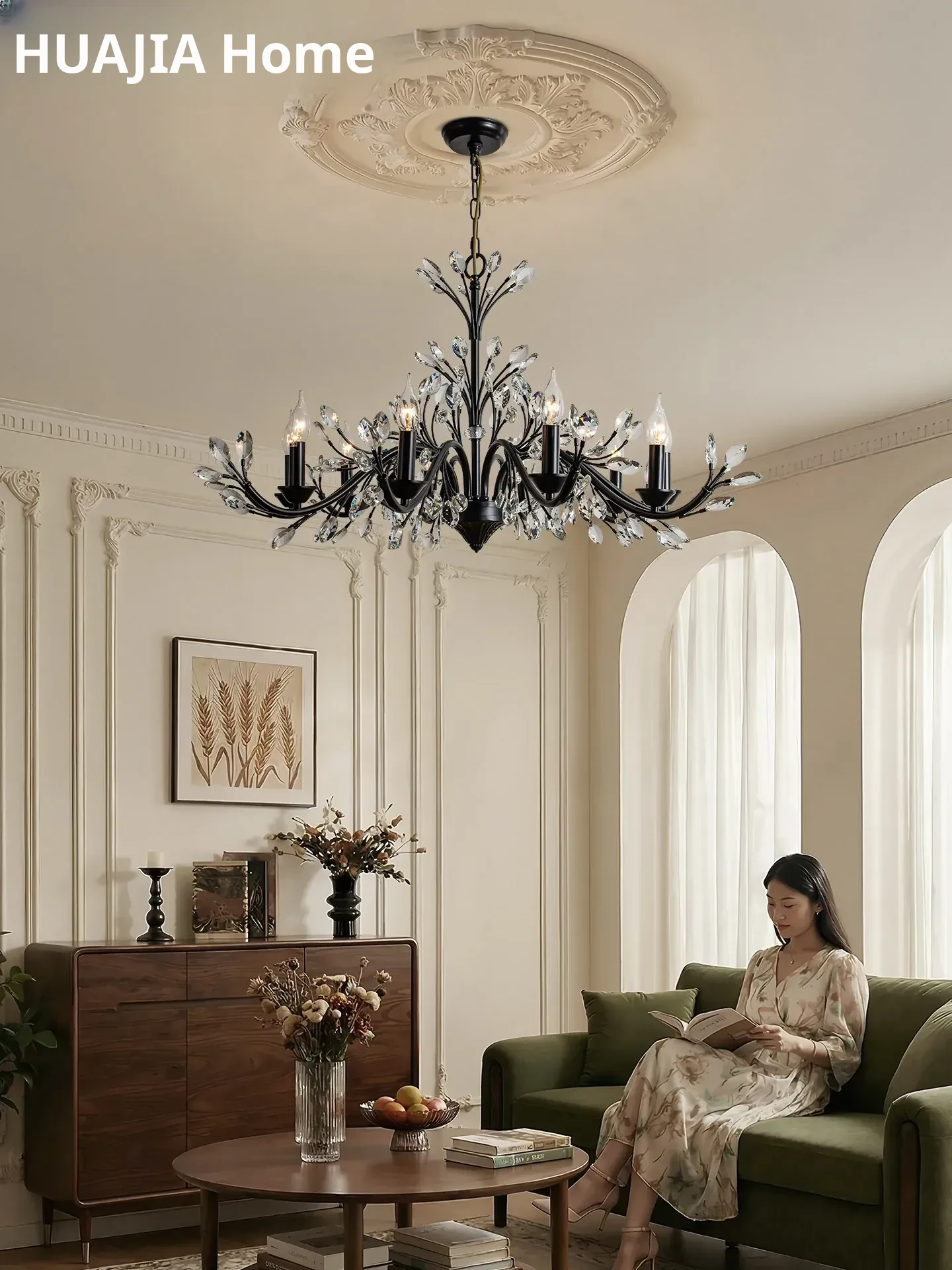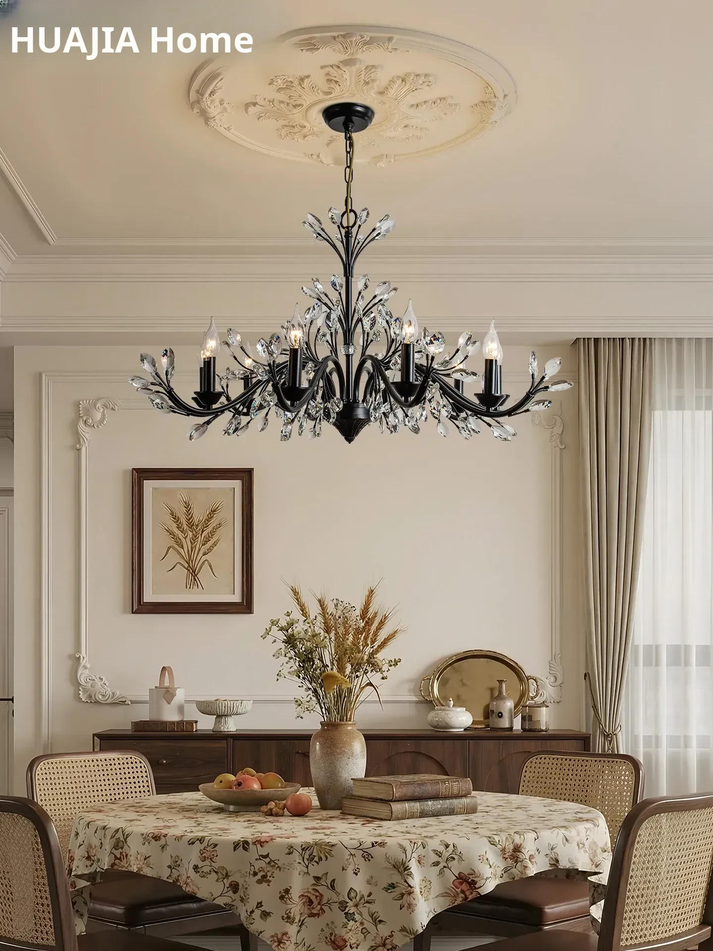 French Style Luxurious Crystal Chandelier - Elegant Black Minimalist Lighting for Living Room, Bedroom, and Dining Room Ambiance