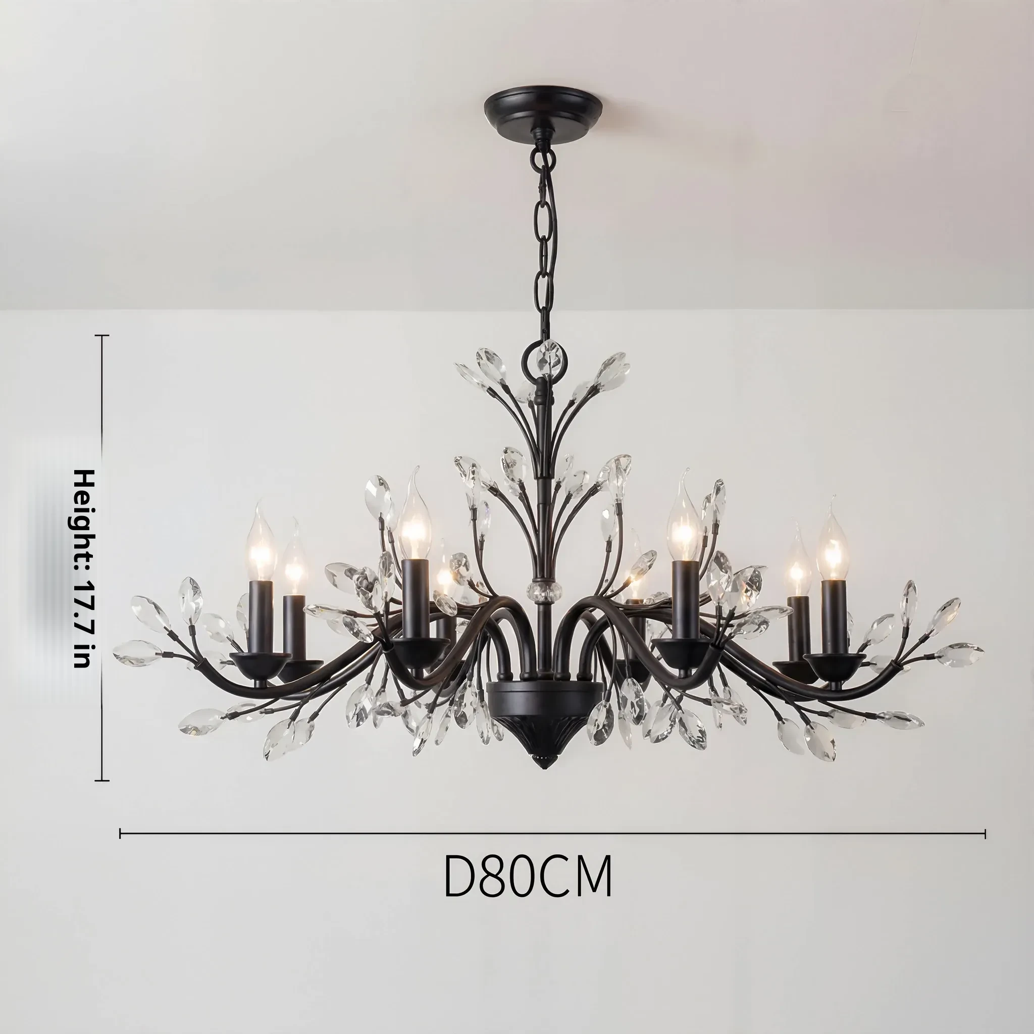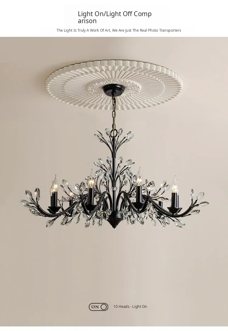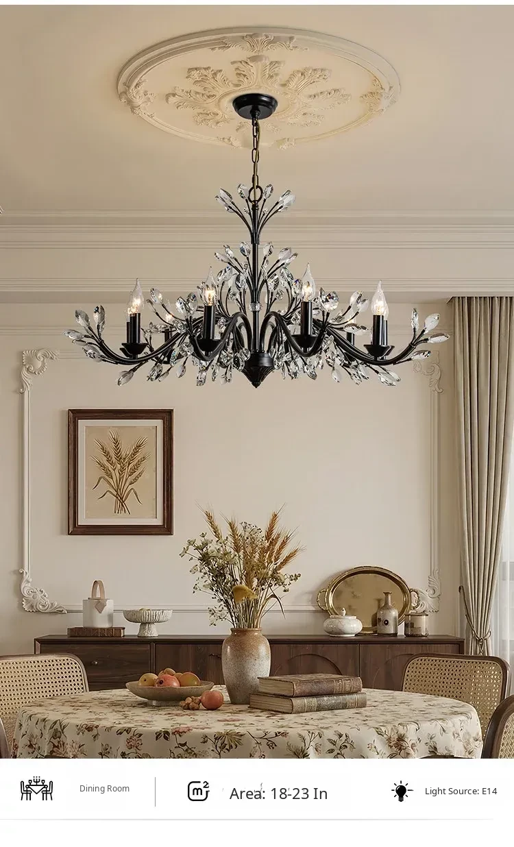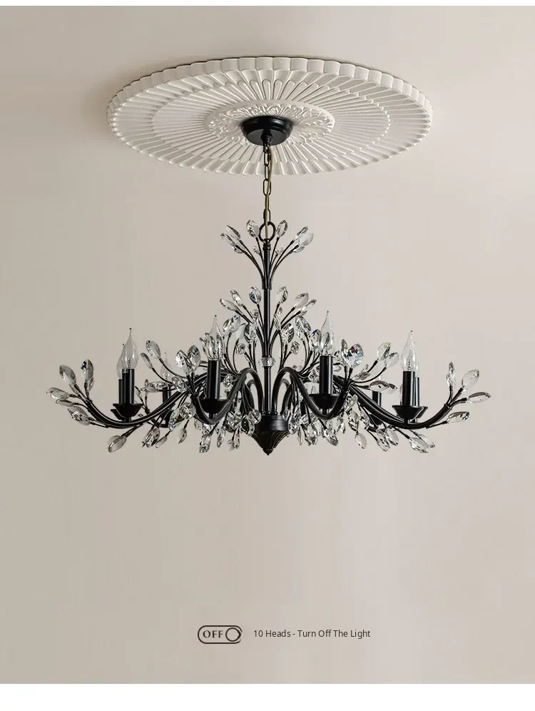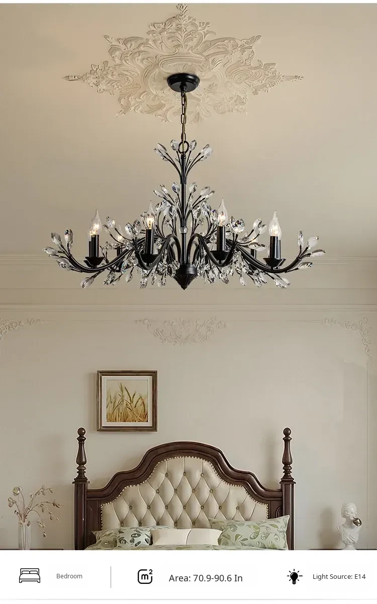French Style Luxurious Crystal Chandelier - Elegant Black Minimalist Lighting for Living Room, Bedroom, and Dining Room Ambiance